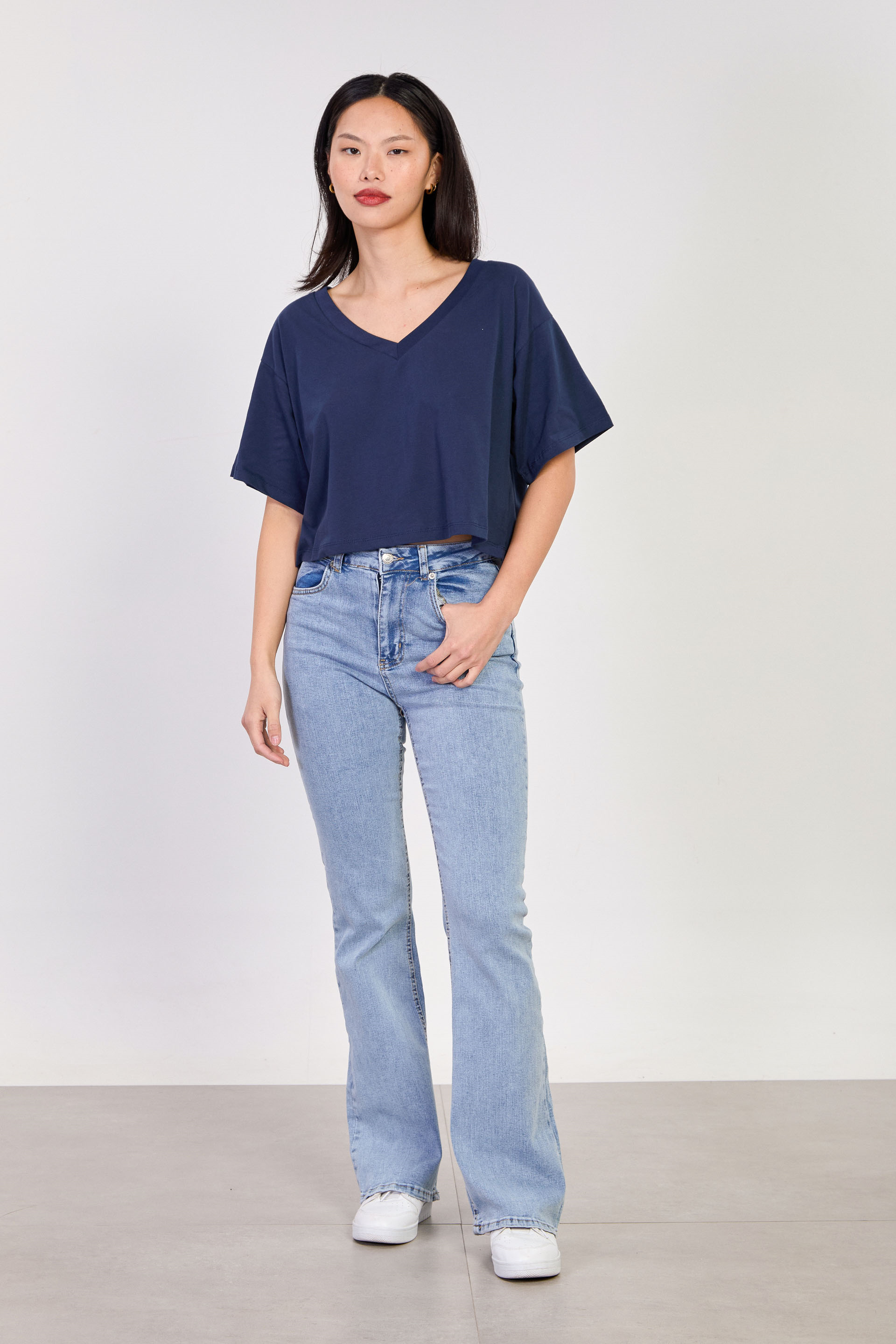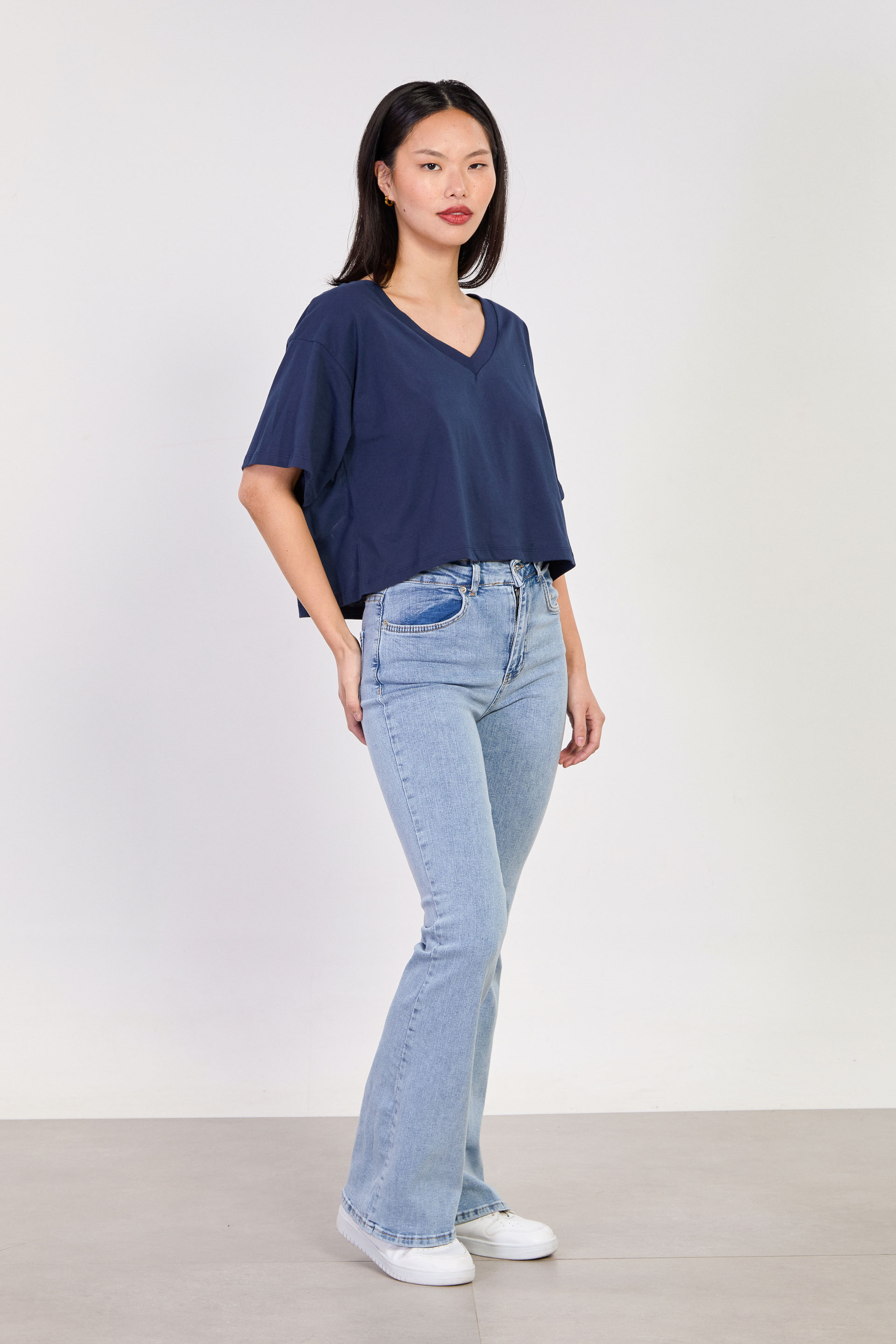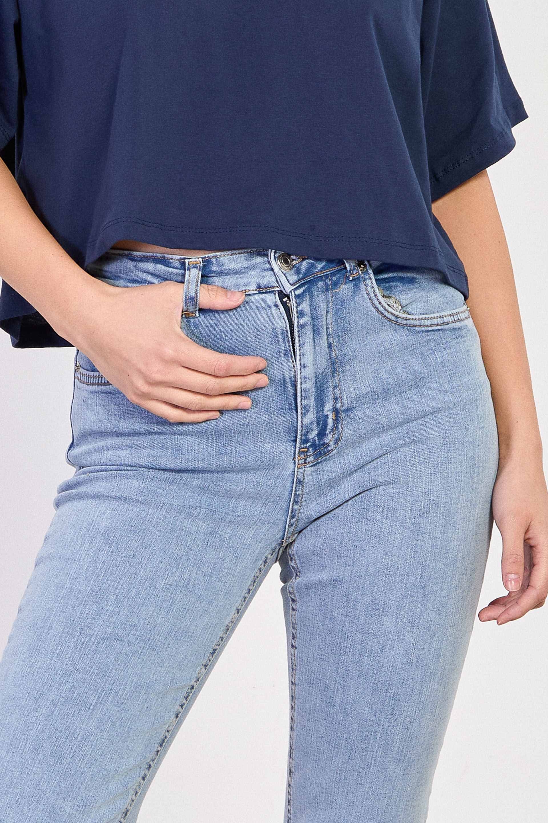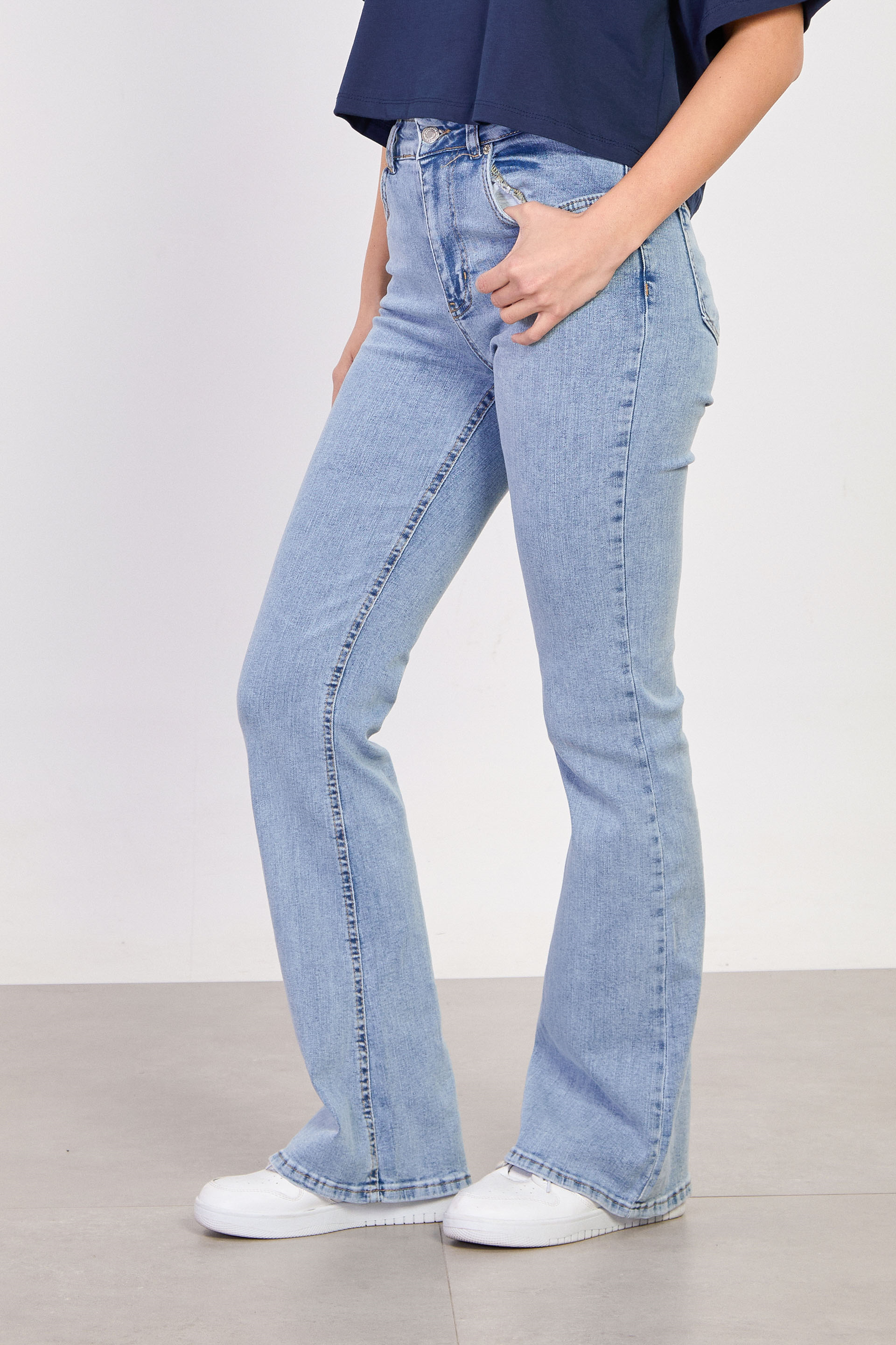 Kadın İspanyol Paça Jean Pantolon - Mavi Kar Y.