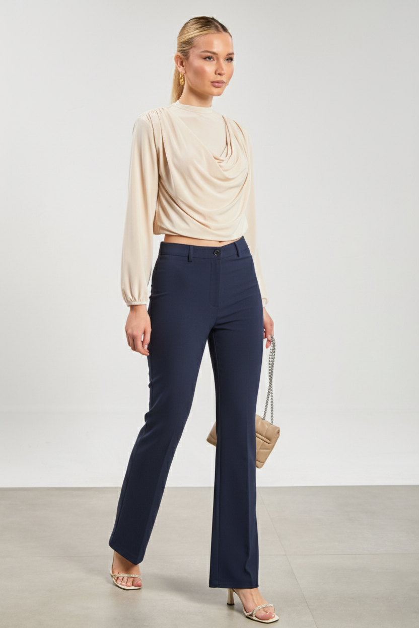 Kadın İspanyol Paça Kumaş Pantolon - Lacivert