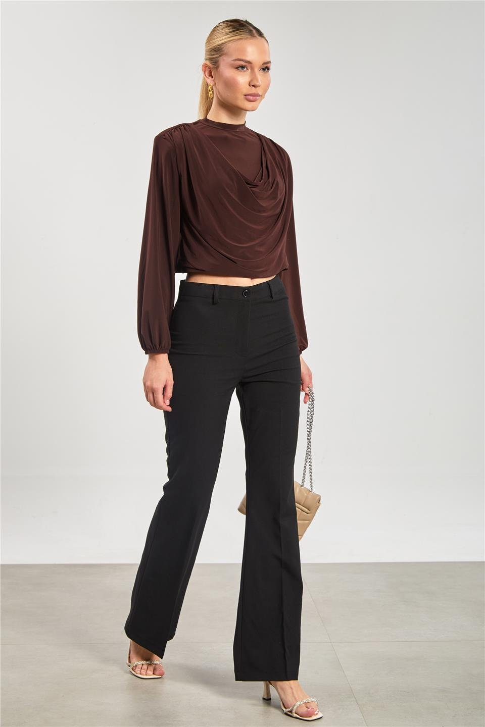Kadın İspanyol Paça Kumaş Pantolon - Siyah