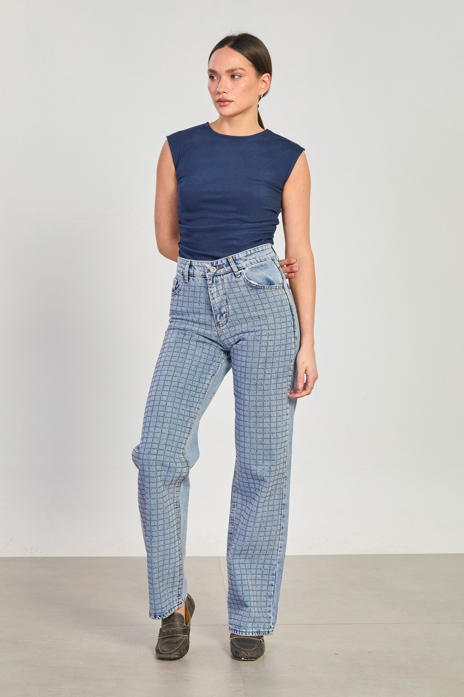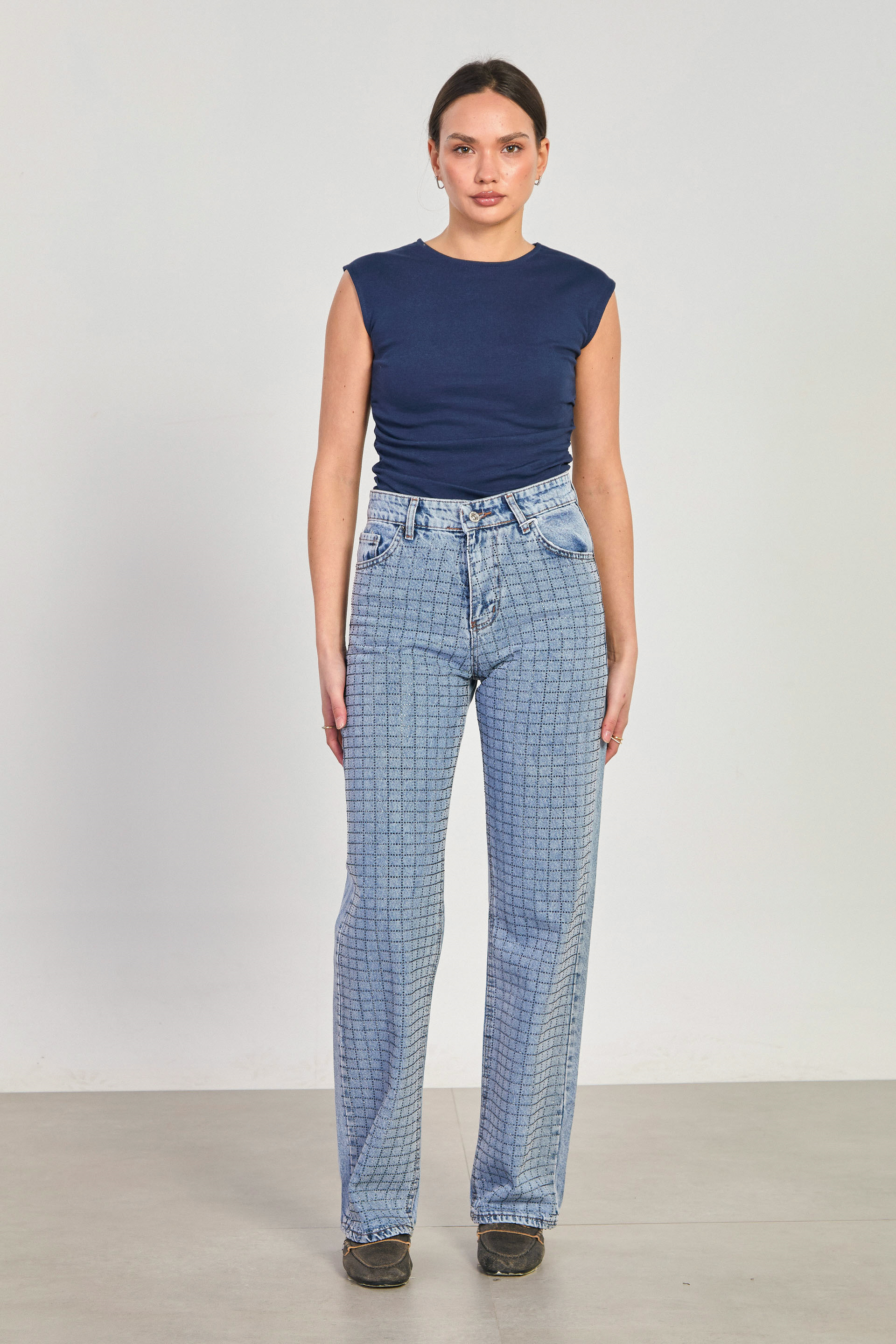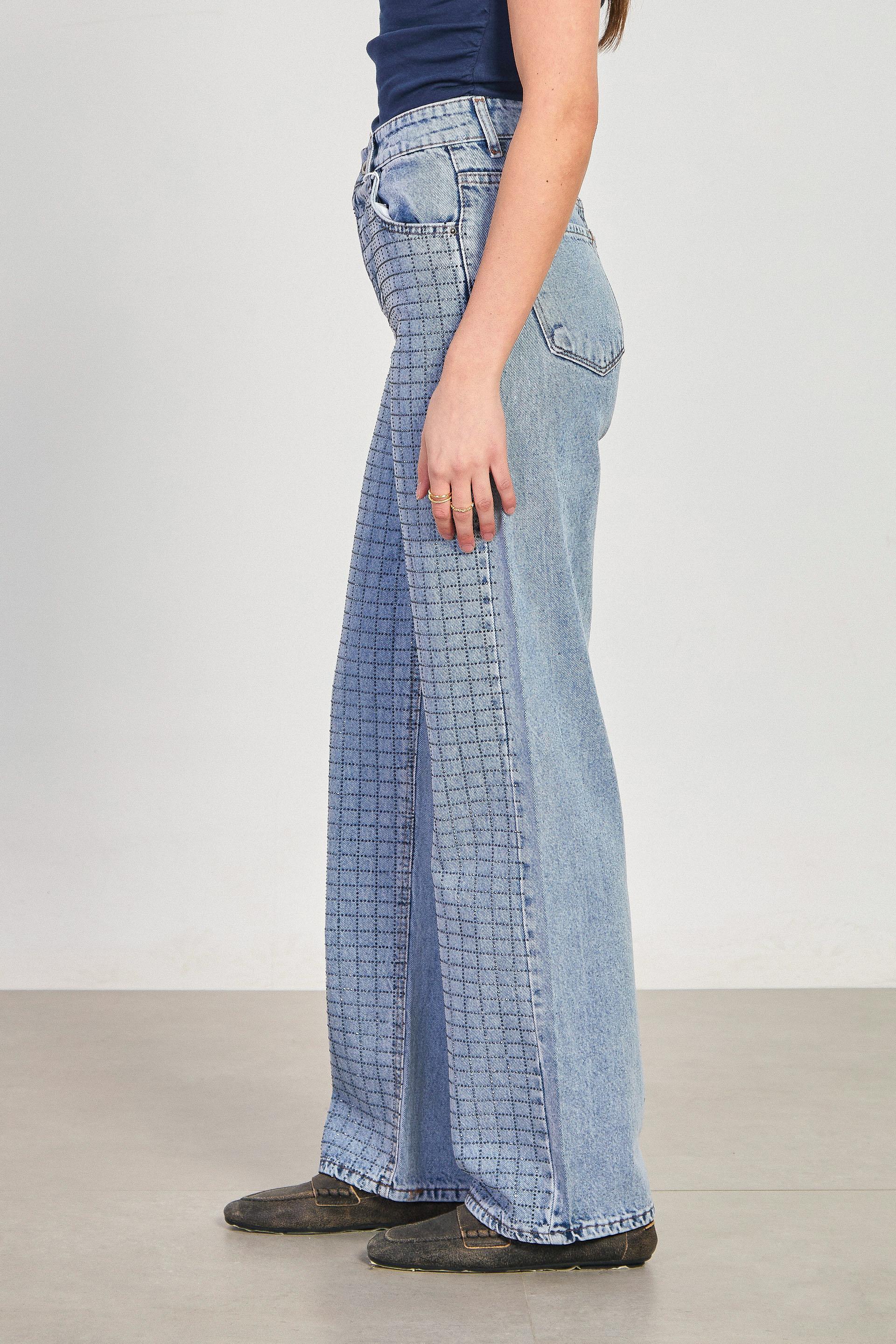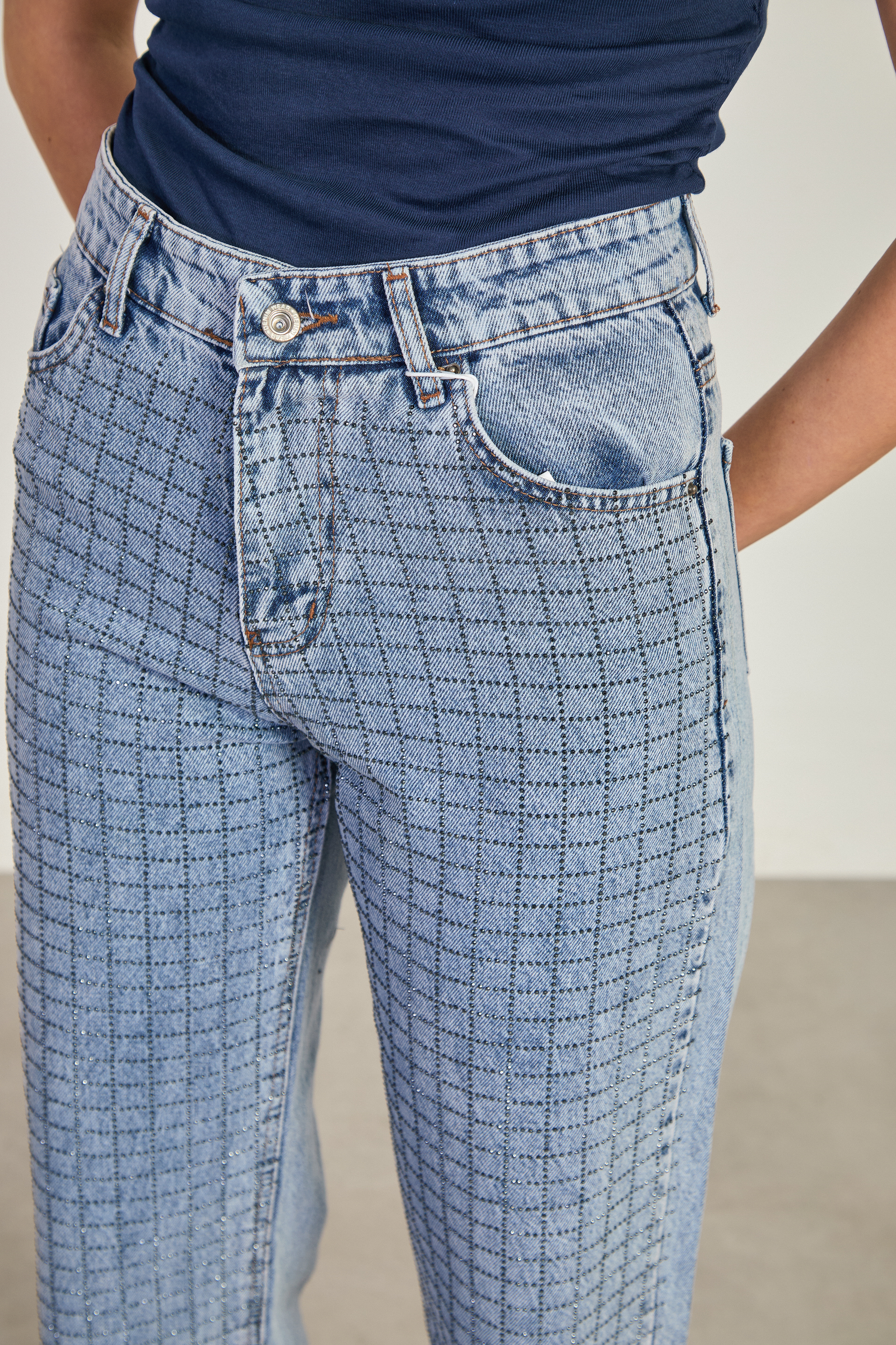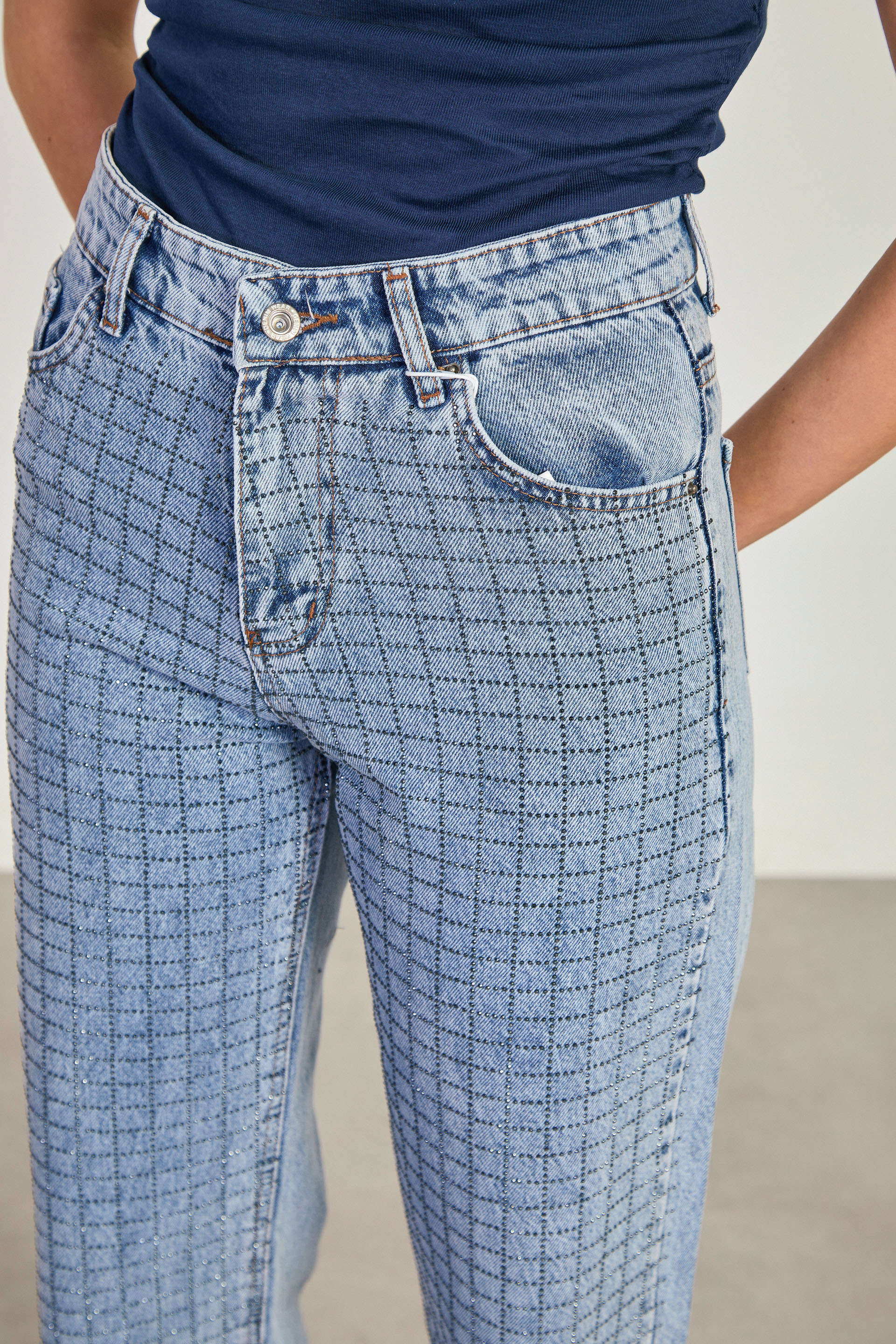 Kadın J63 Kare Taş Baskılı Palazzo Jean Pantolon - Açık Mavi
