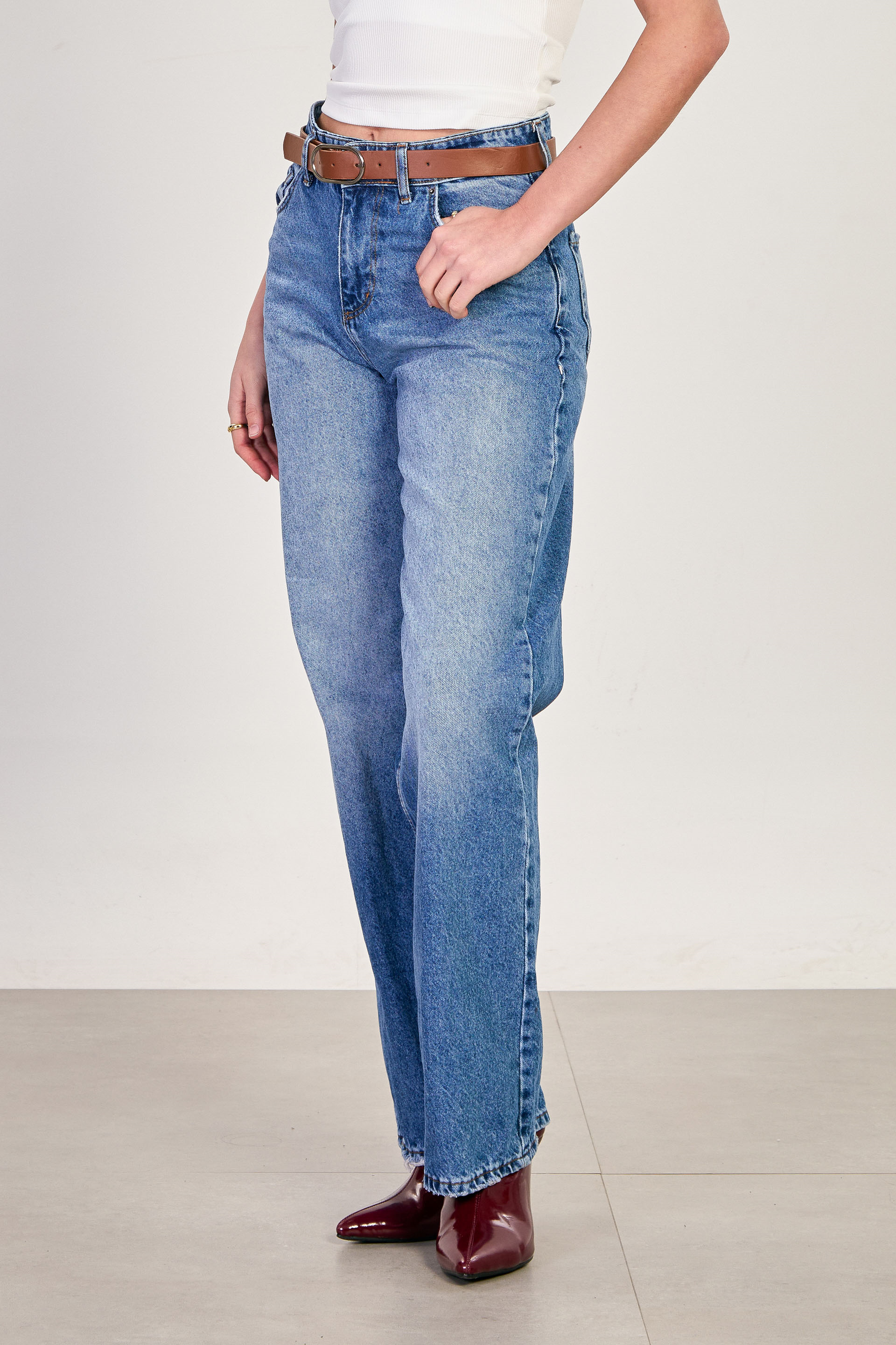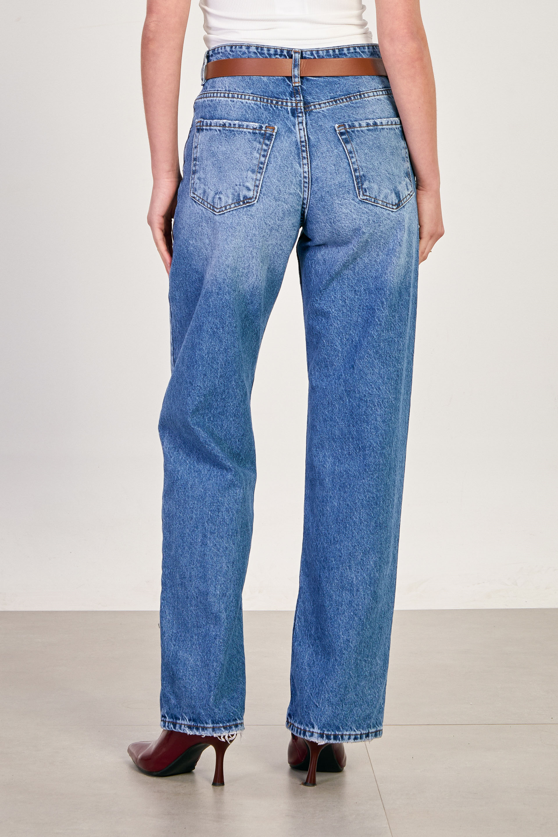 J63 Kemerli palazzo jean pantolon-1803 Açık Mavi