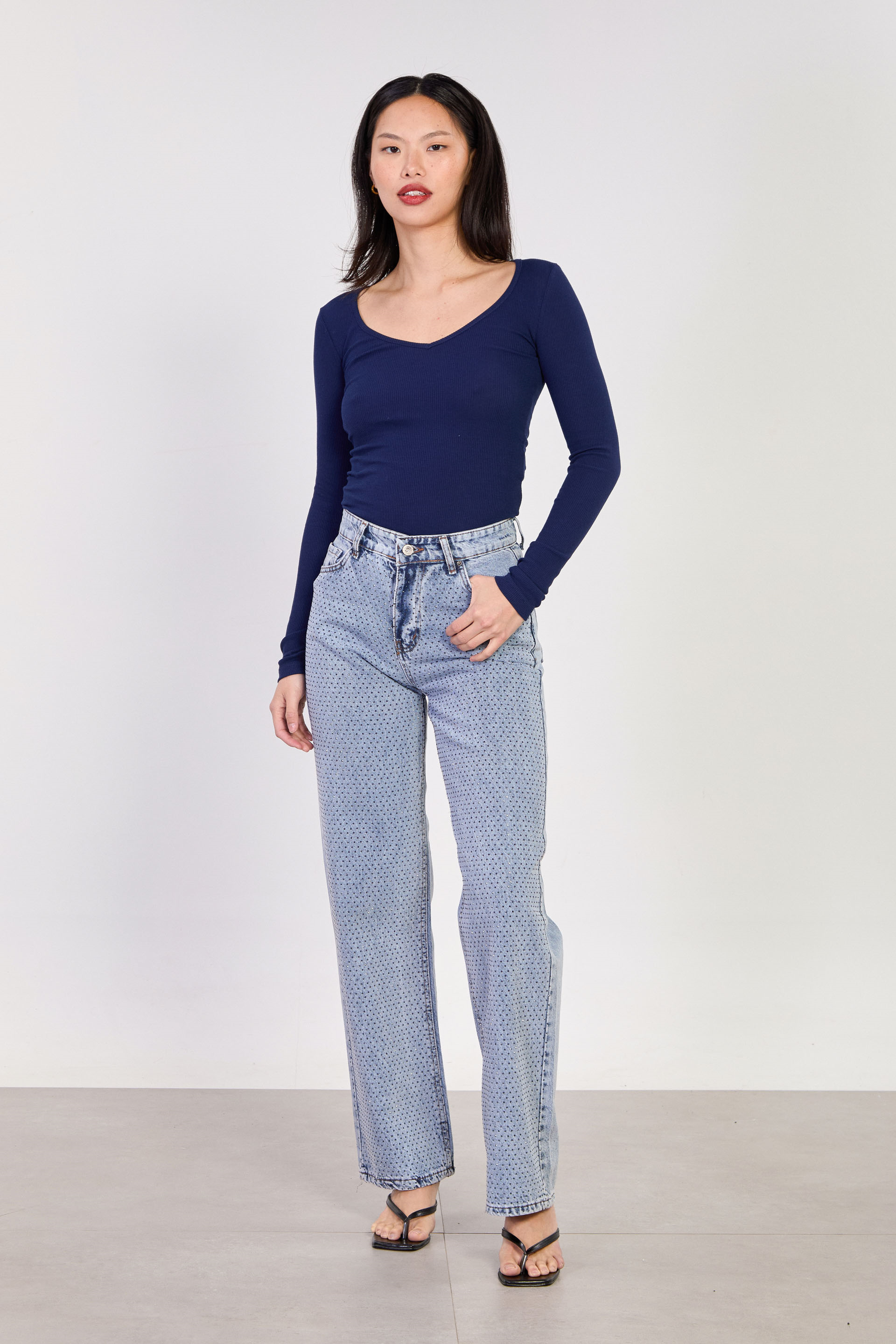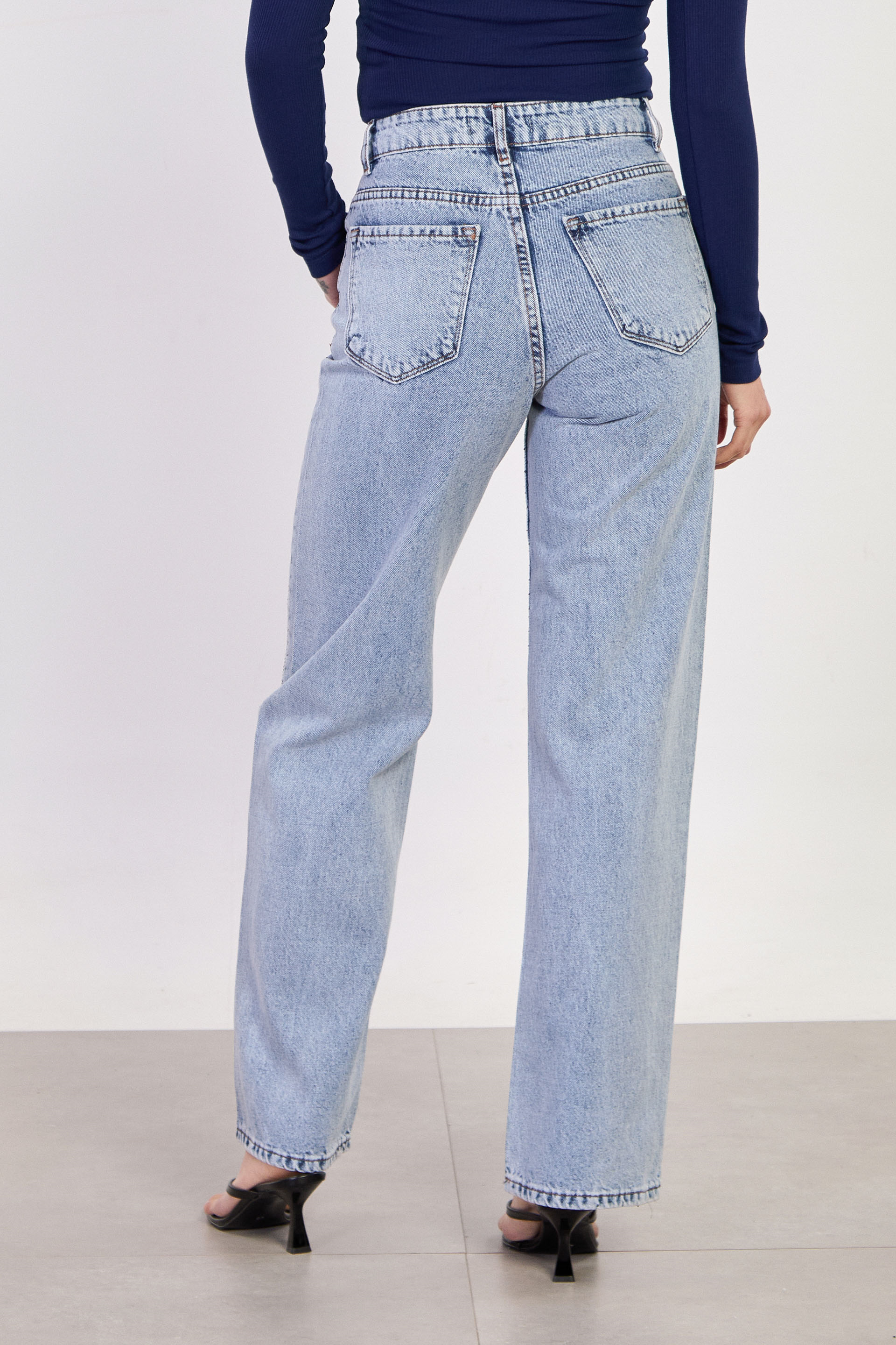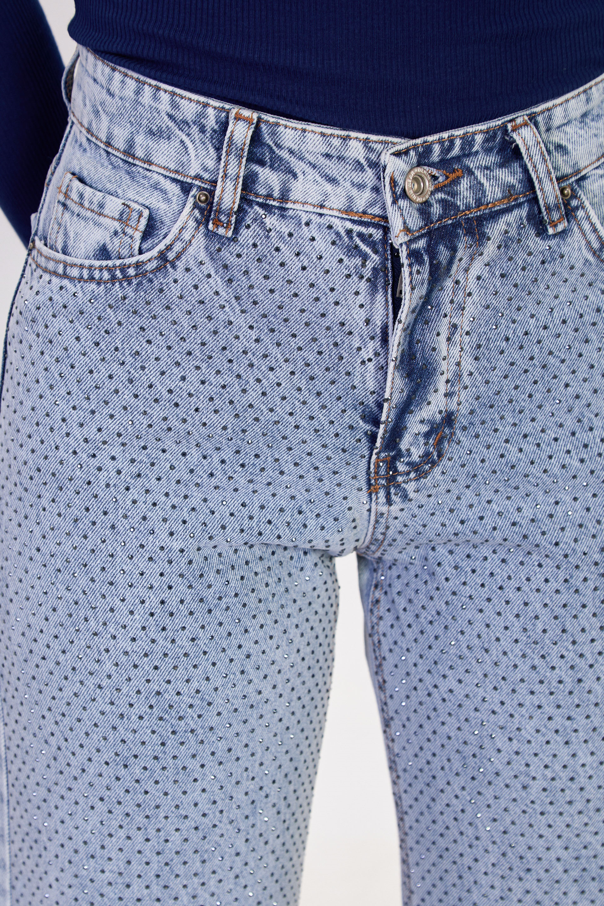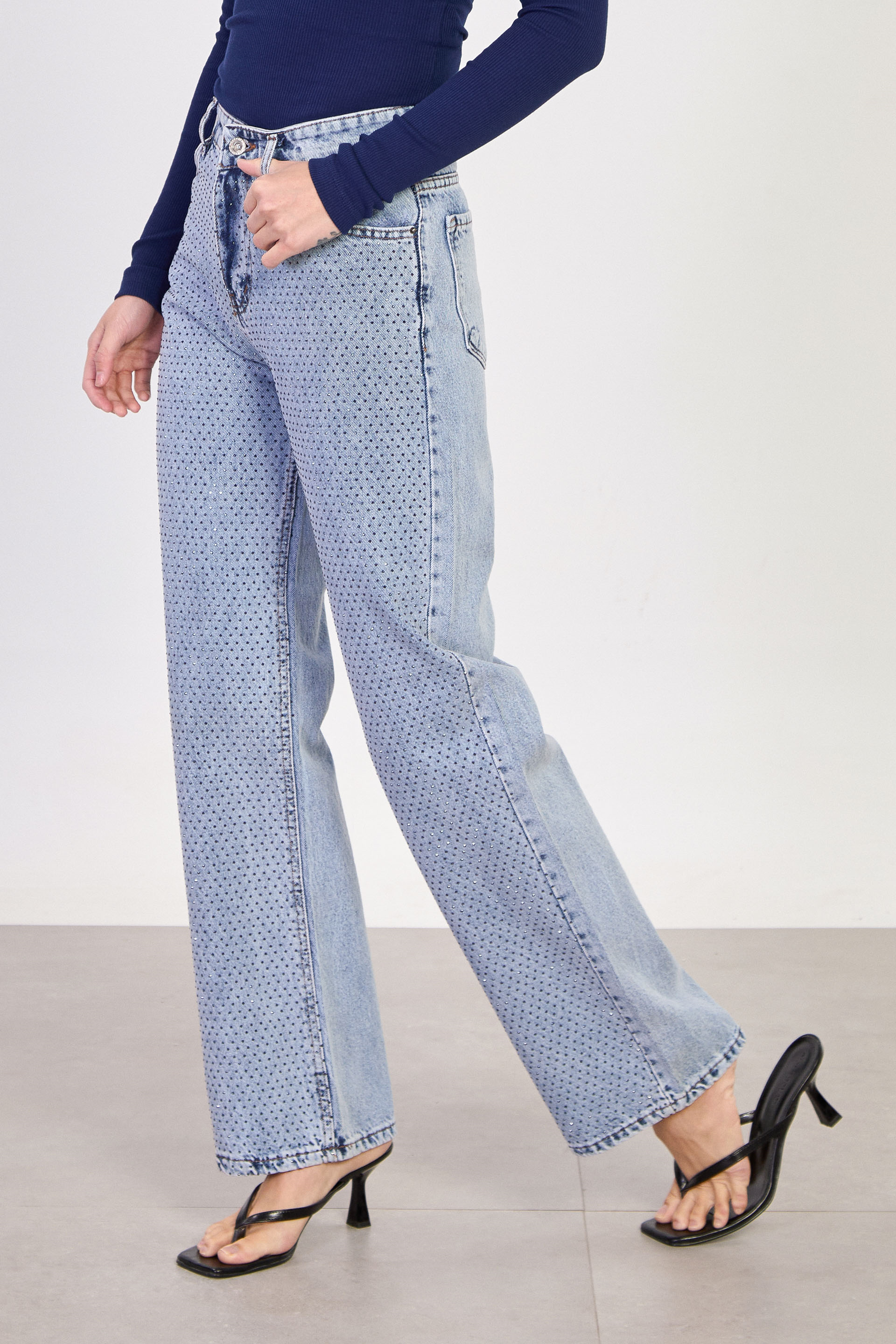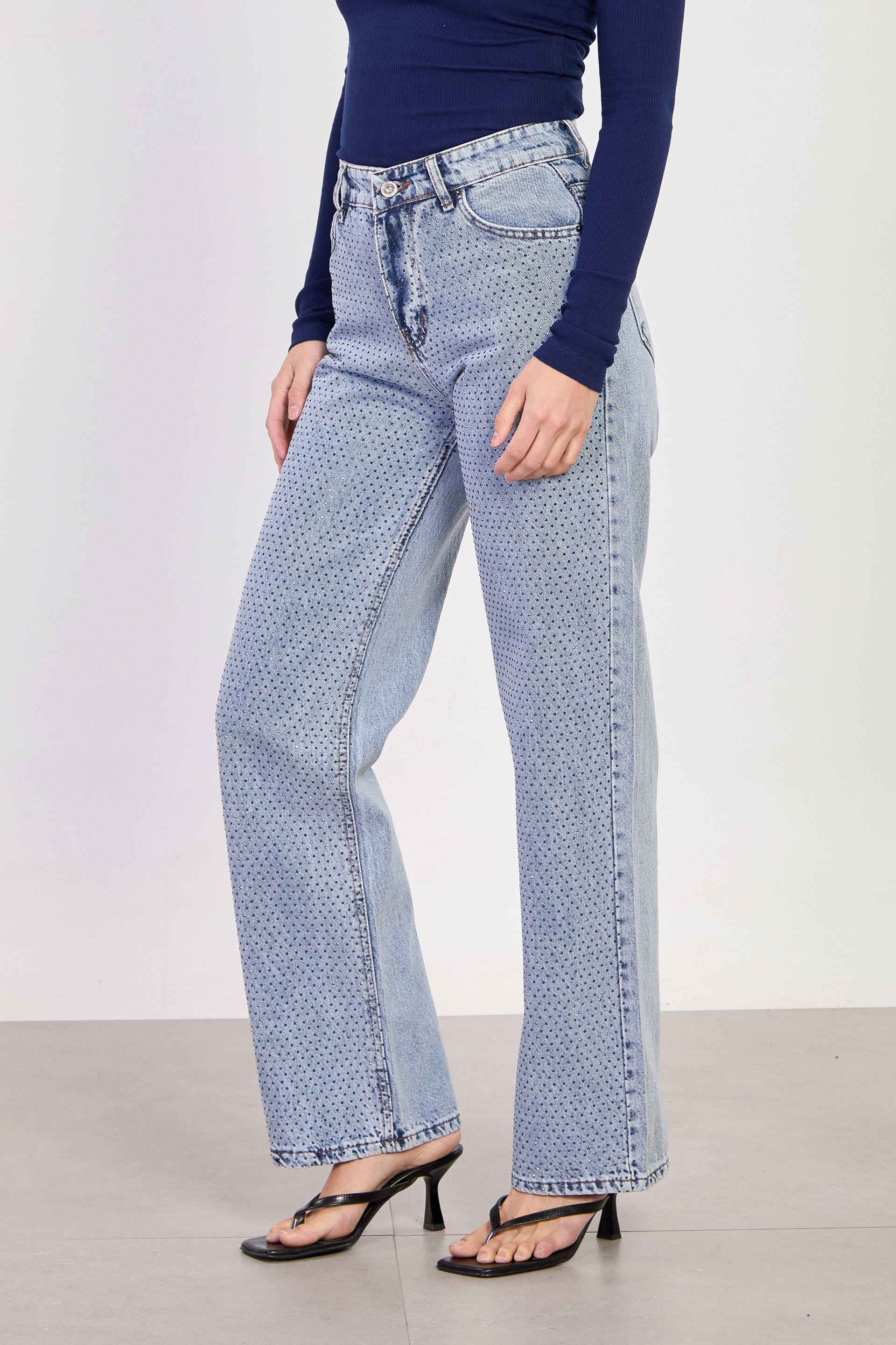 Kadın J63 Serpme Taş Baskılı Palazzo Jean Pantolon - Açık Mavi