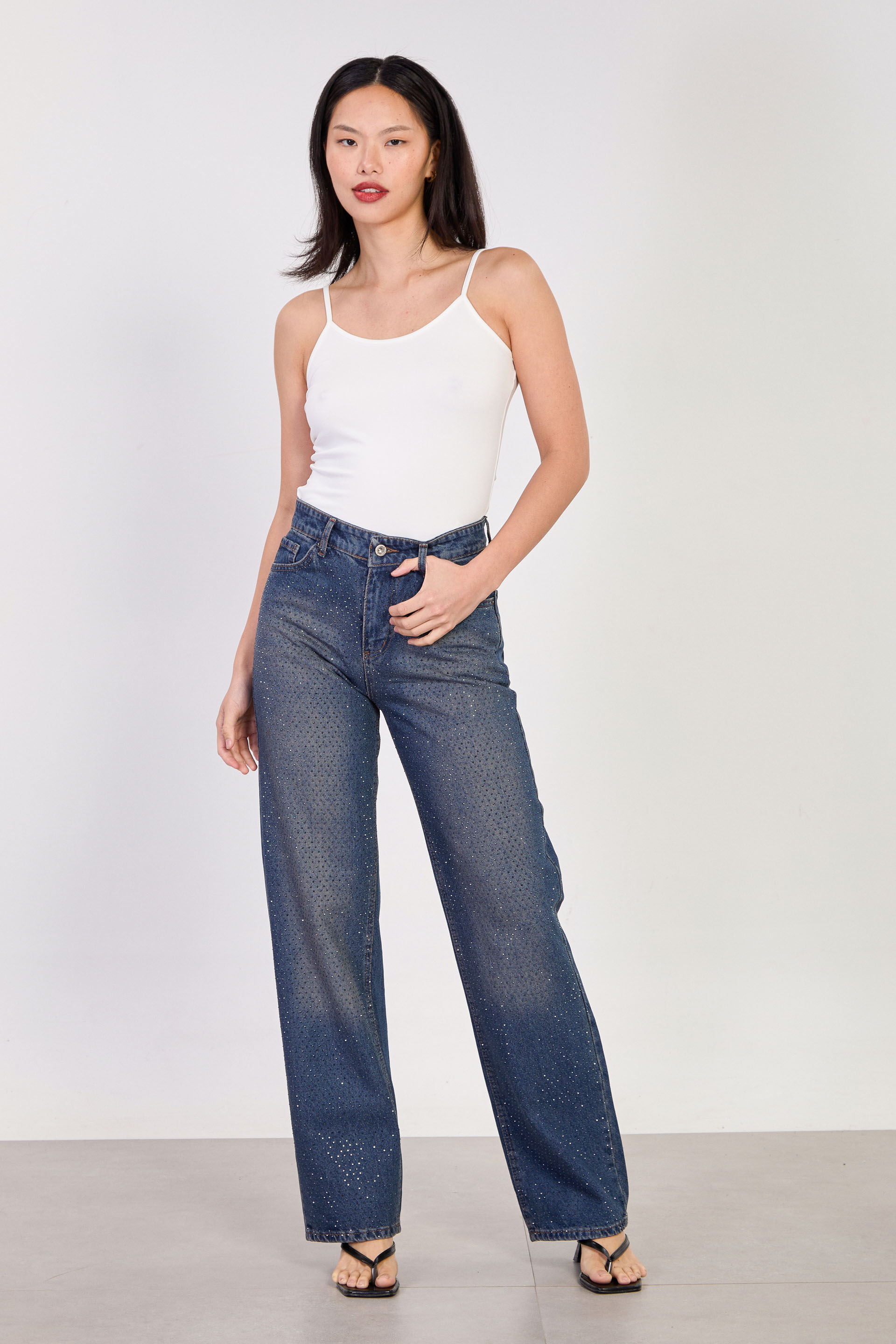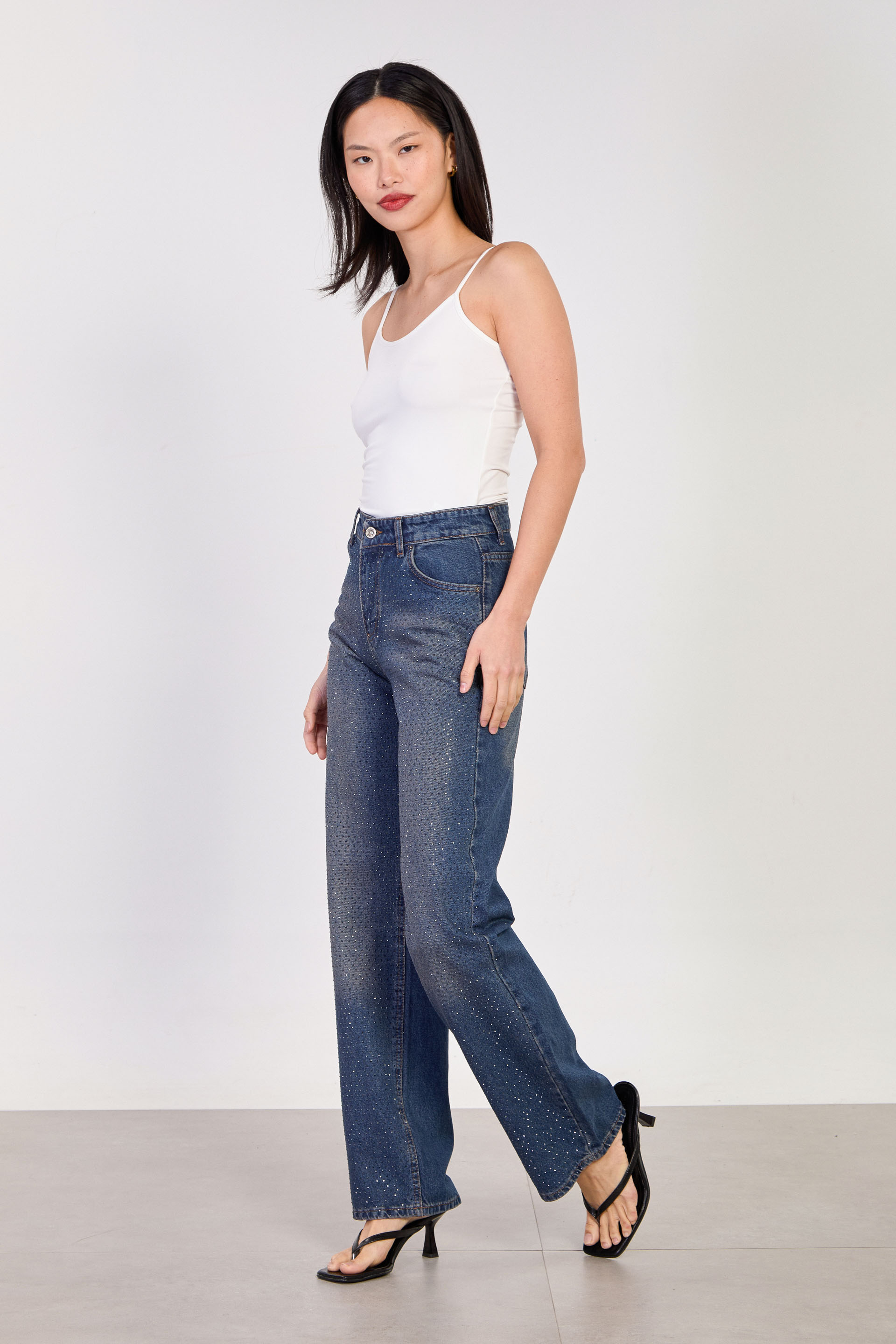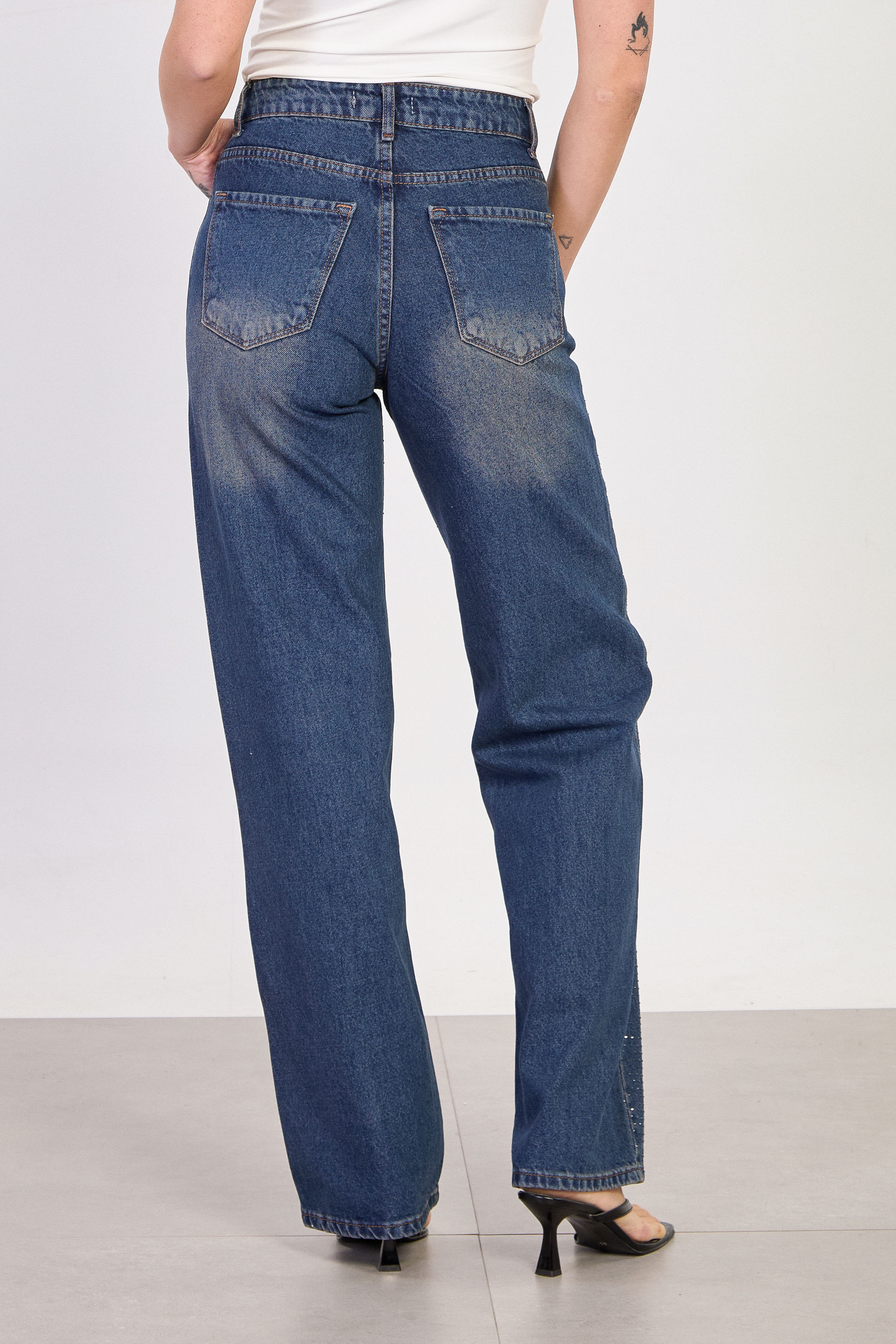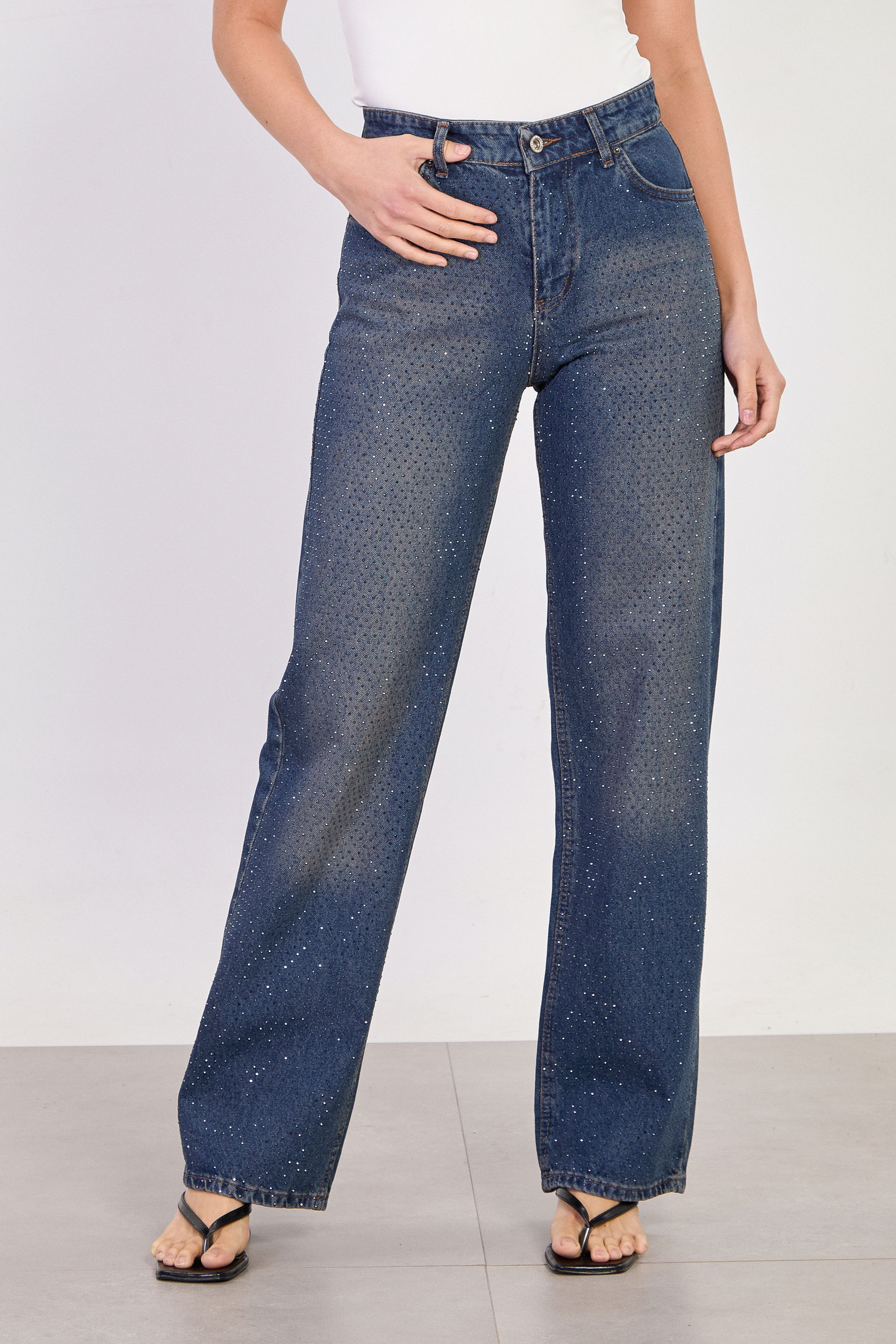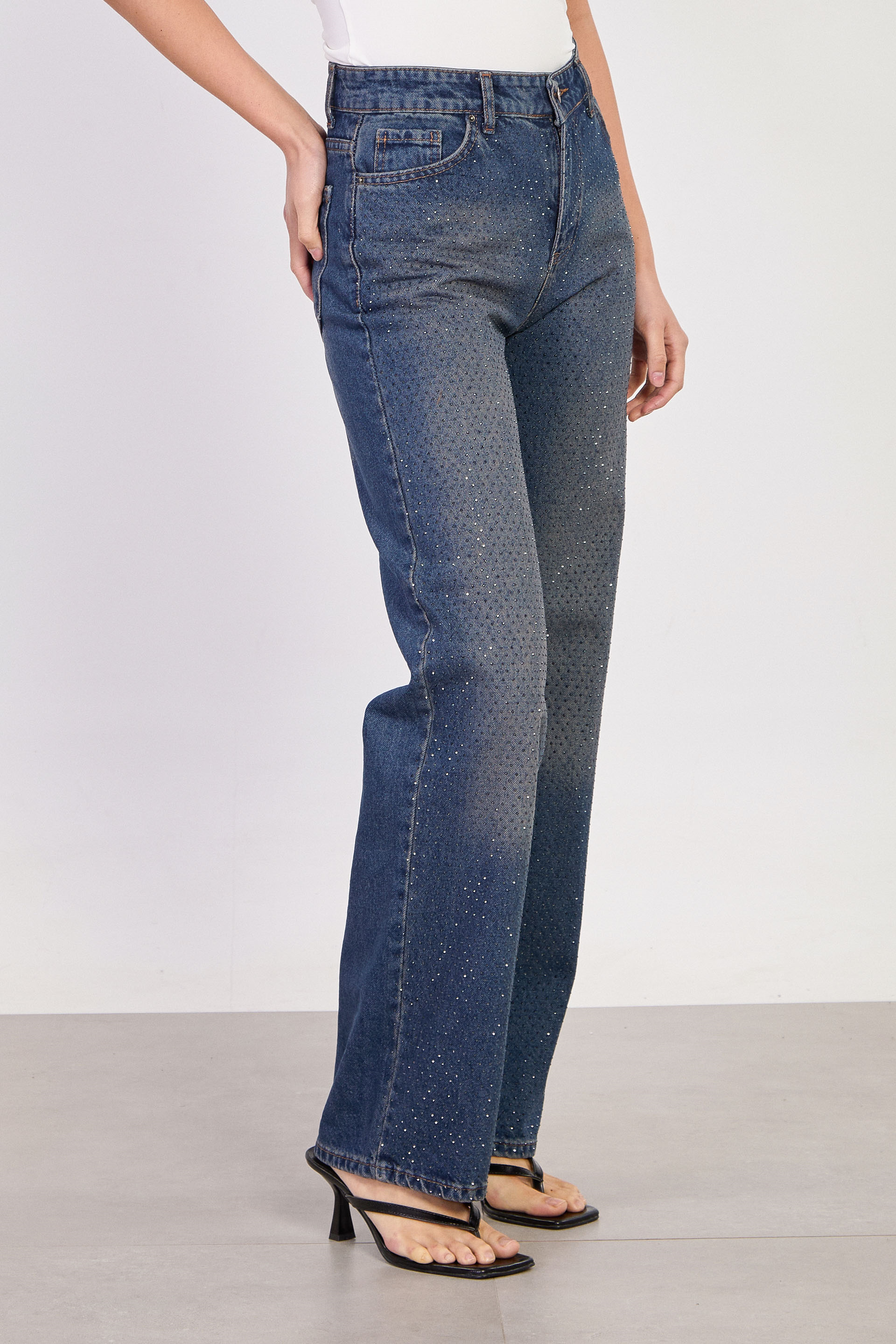 Kadın J63 Serpme Taş Baskılı Palazzo Jean Pantolon - Kahve