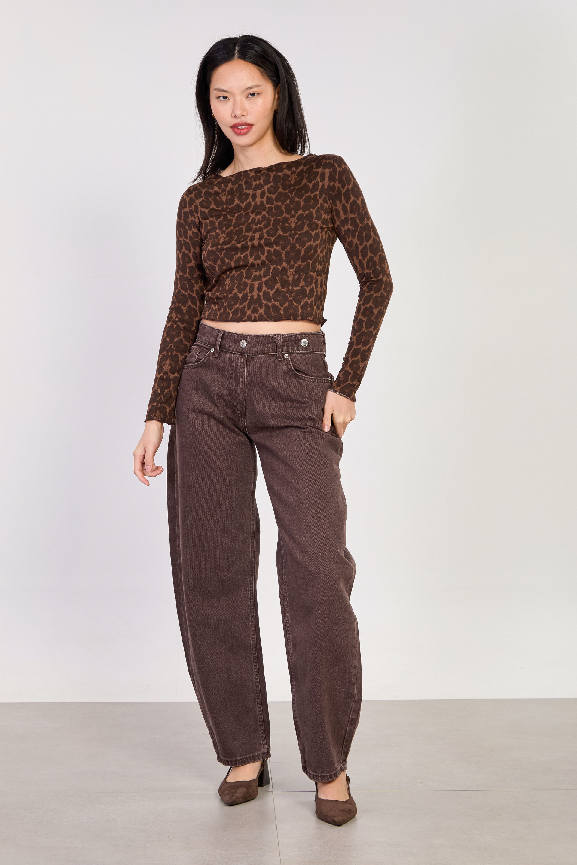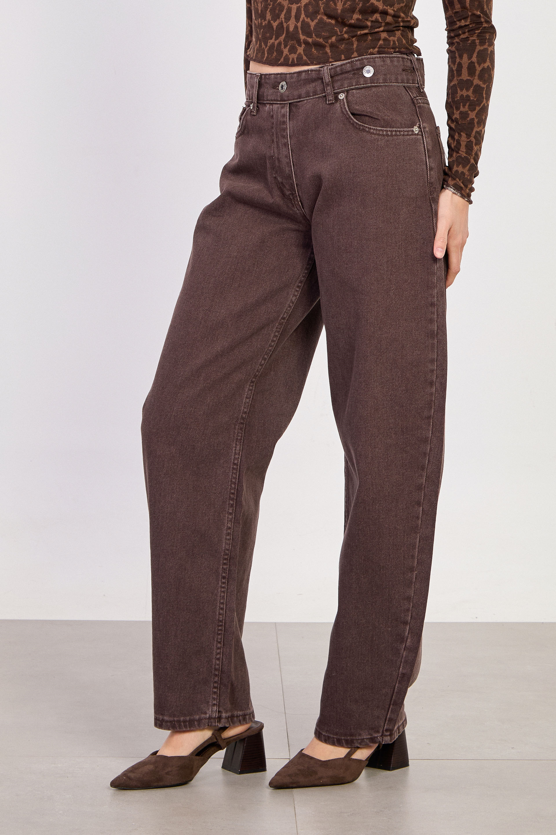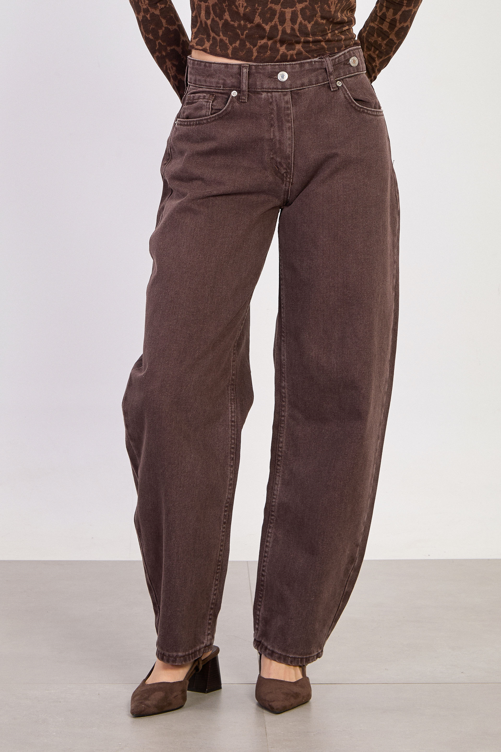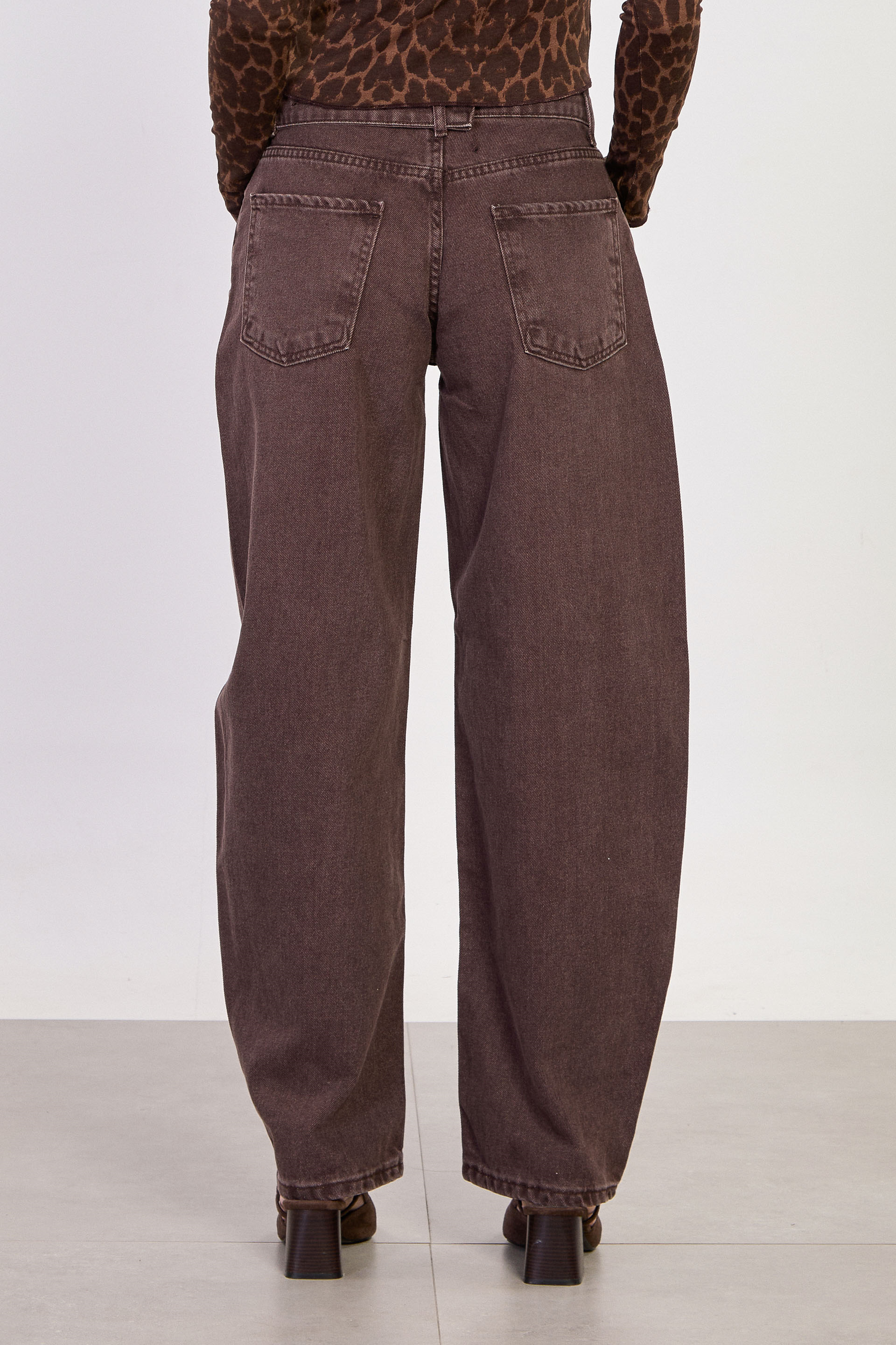 Kadın J91 Kuşaklı Baggy Jean Pantolon - Acı Kahve