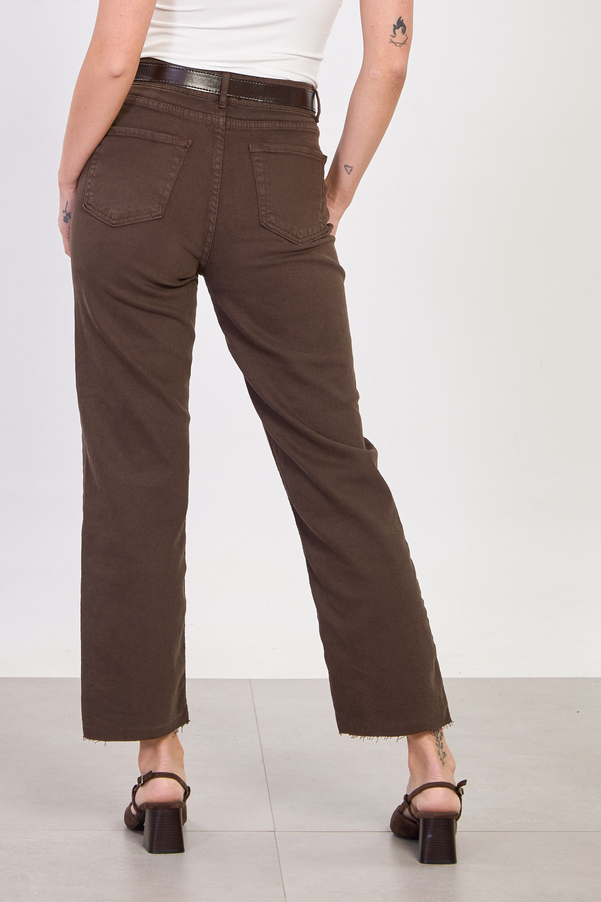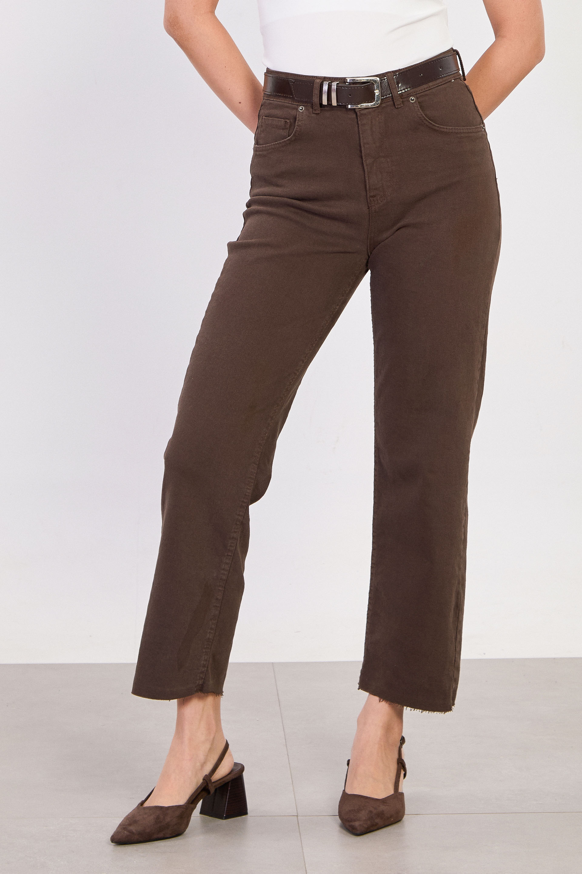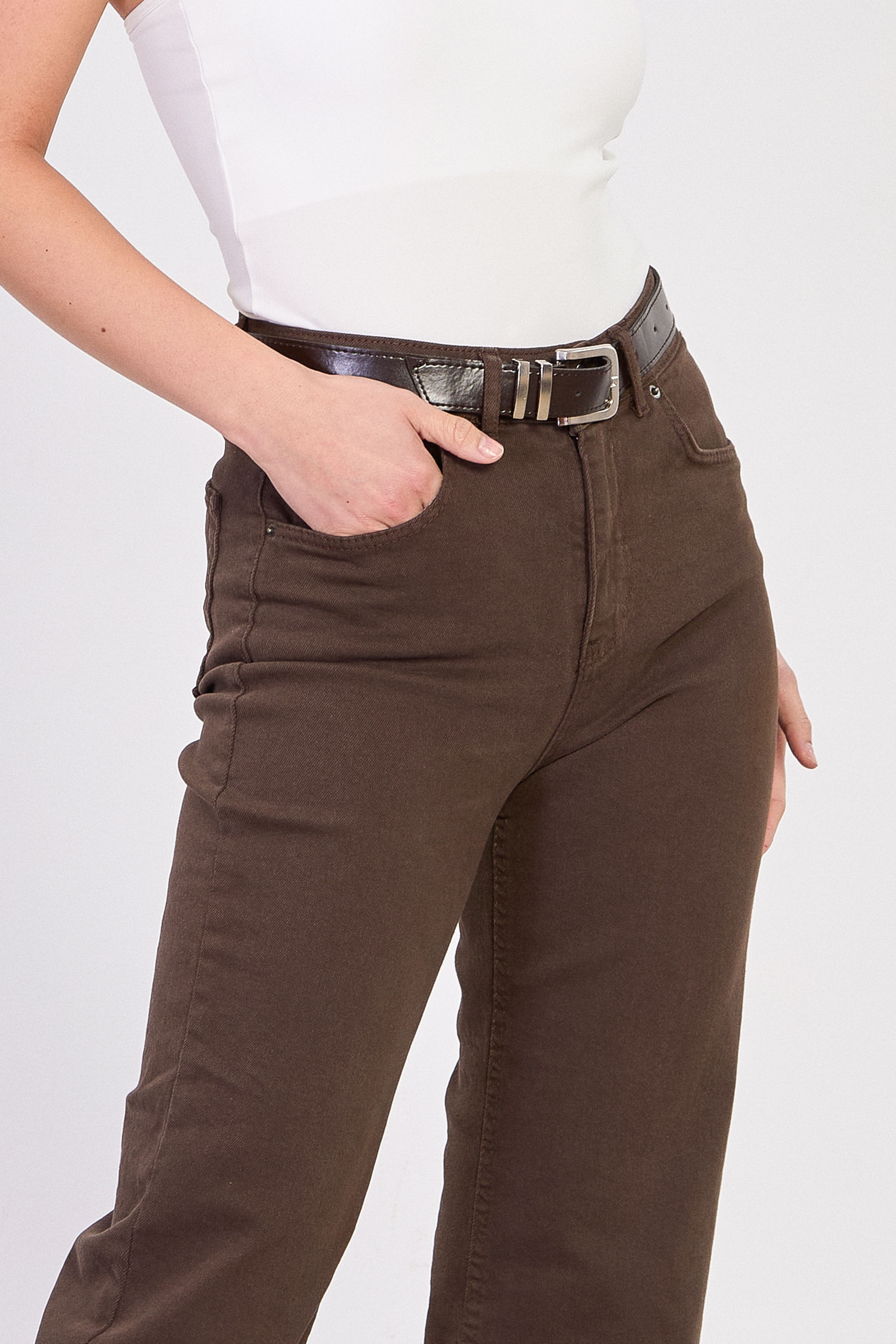Kadın J92 Kemerli Kesik Paça Straight Jean Pantolon - Acı Kahve