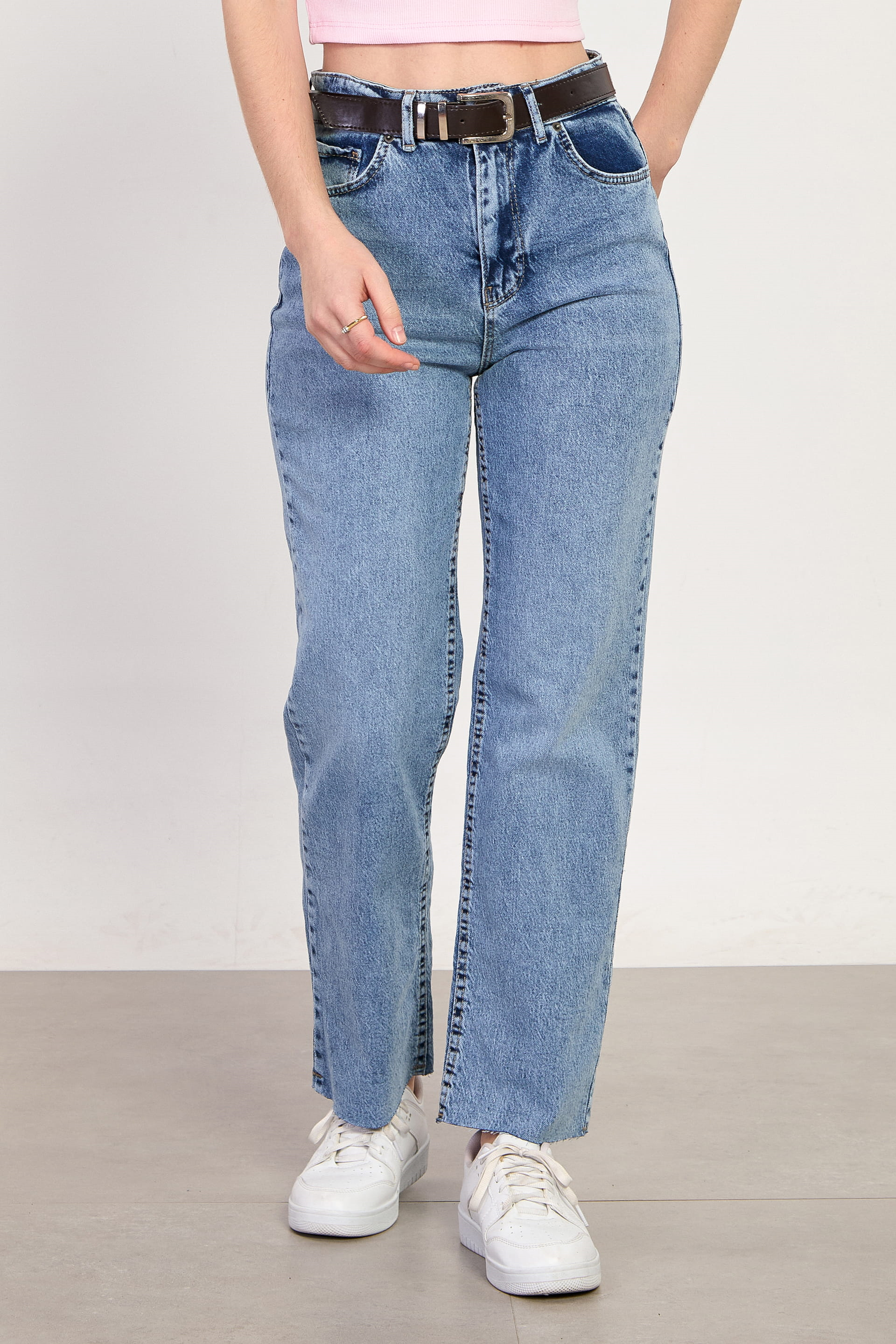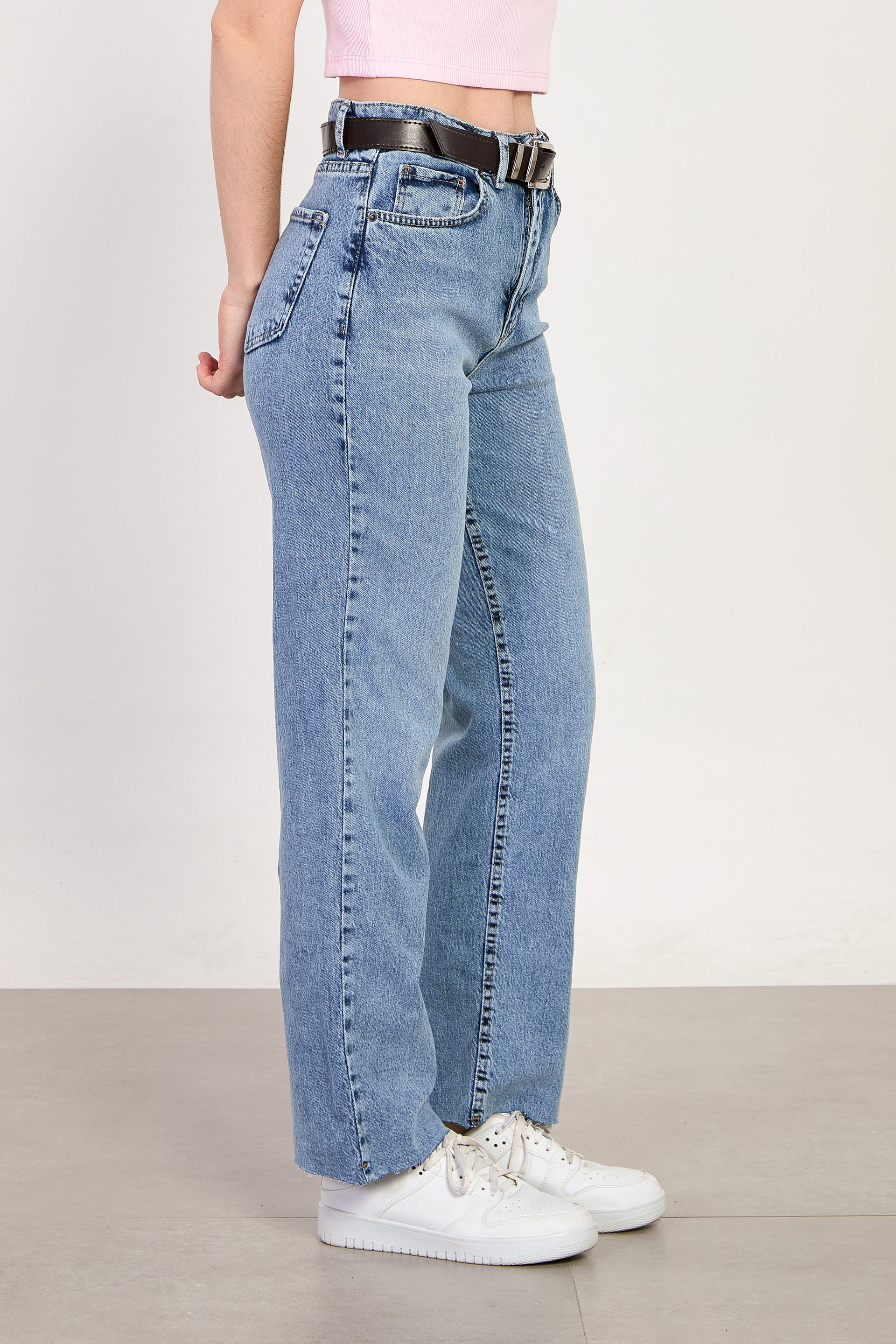 Kadın J92 Kemerli Kesik Paça Straight Jean Pantolon - Açık Mavi