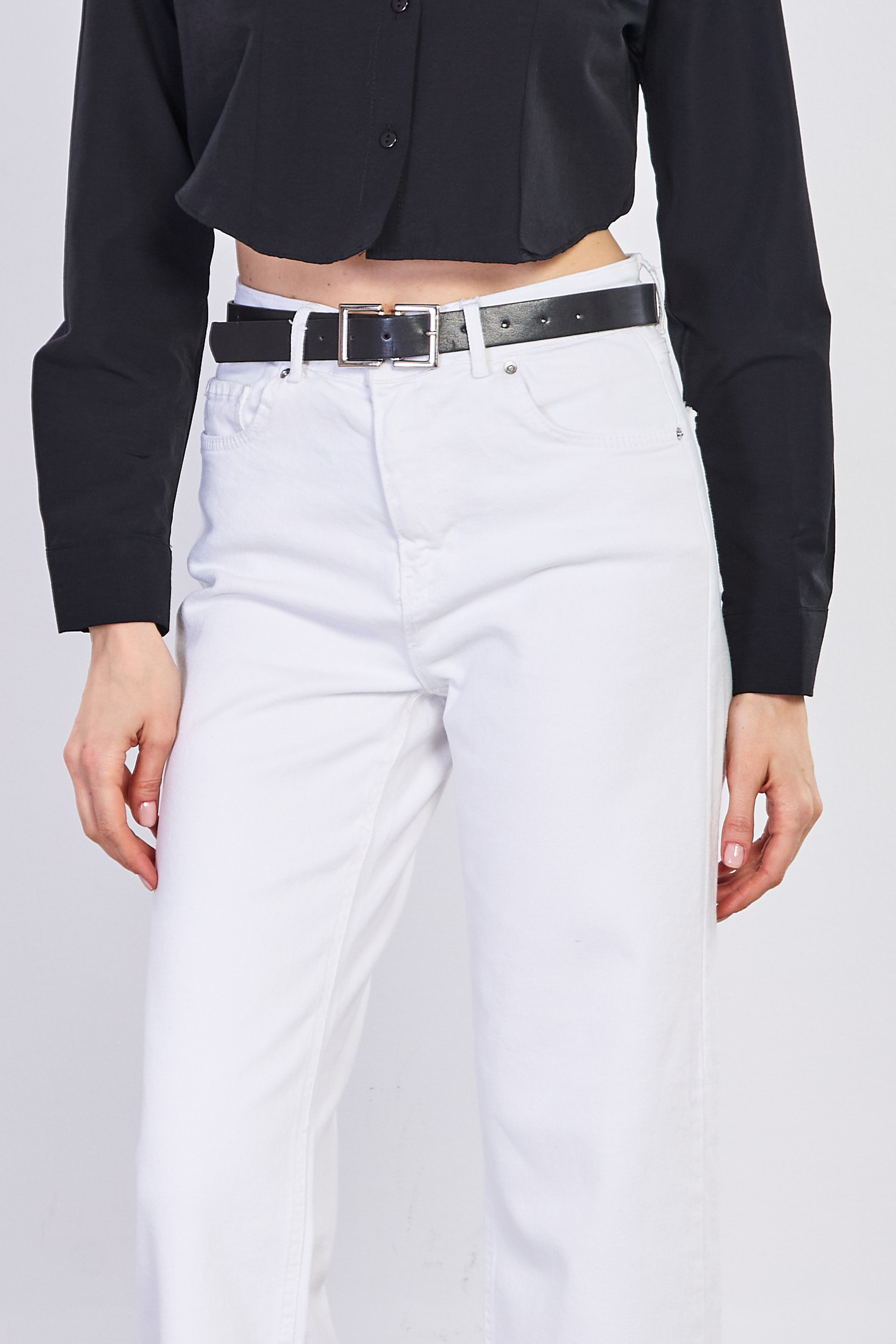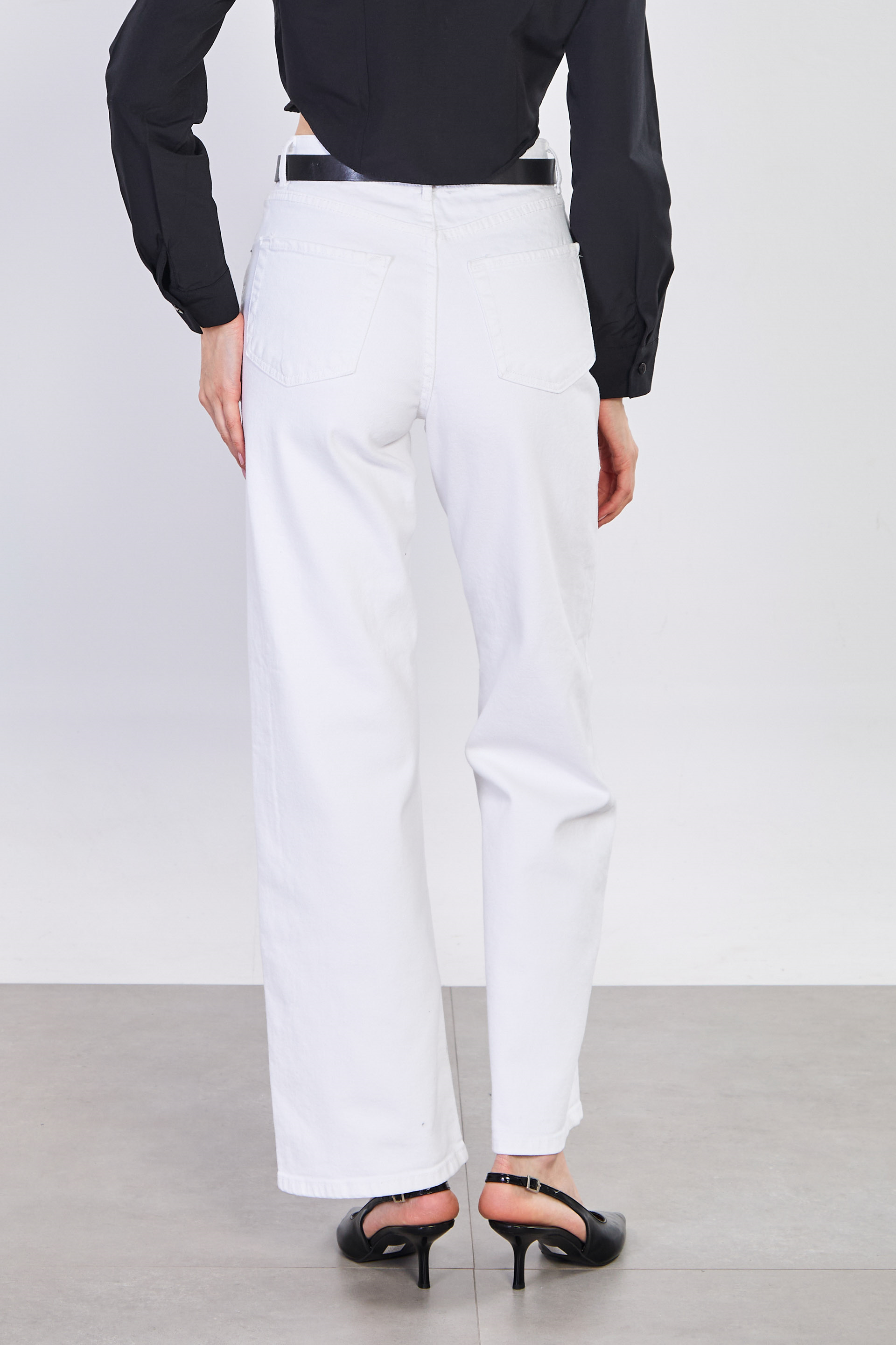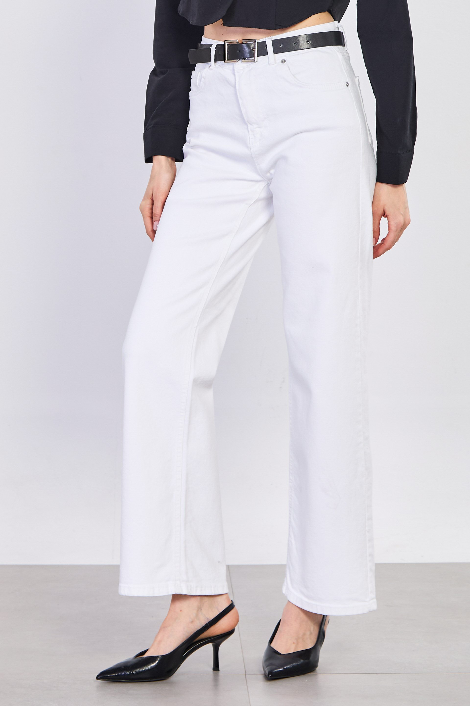 Kadın J92 Kemerli Straight Jean Pantolon - Beyaz