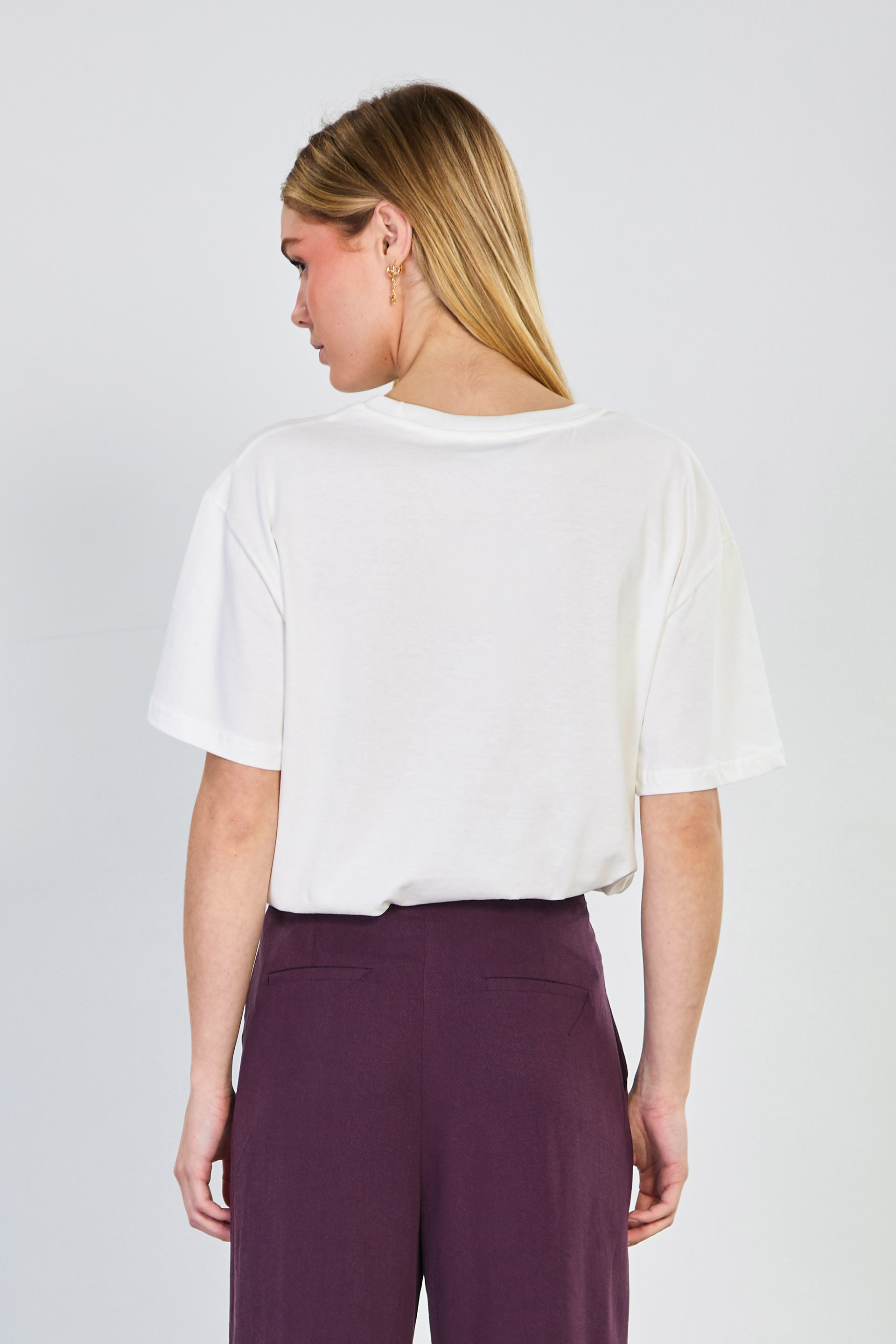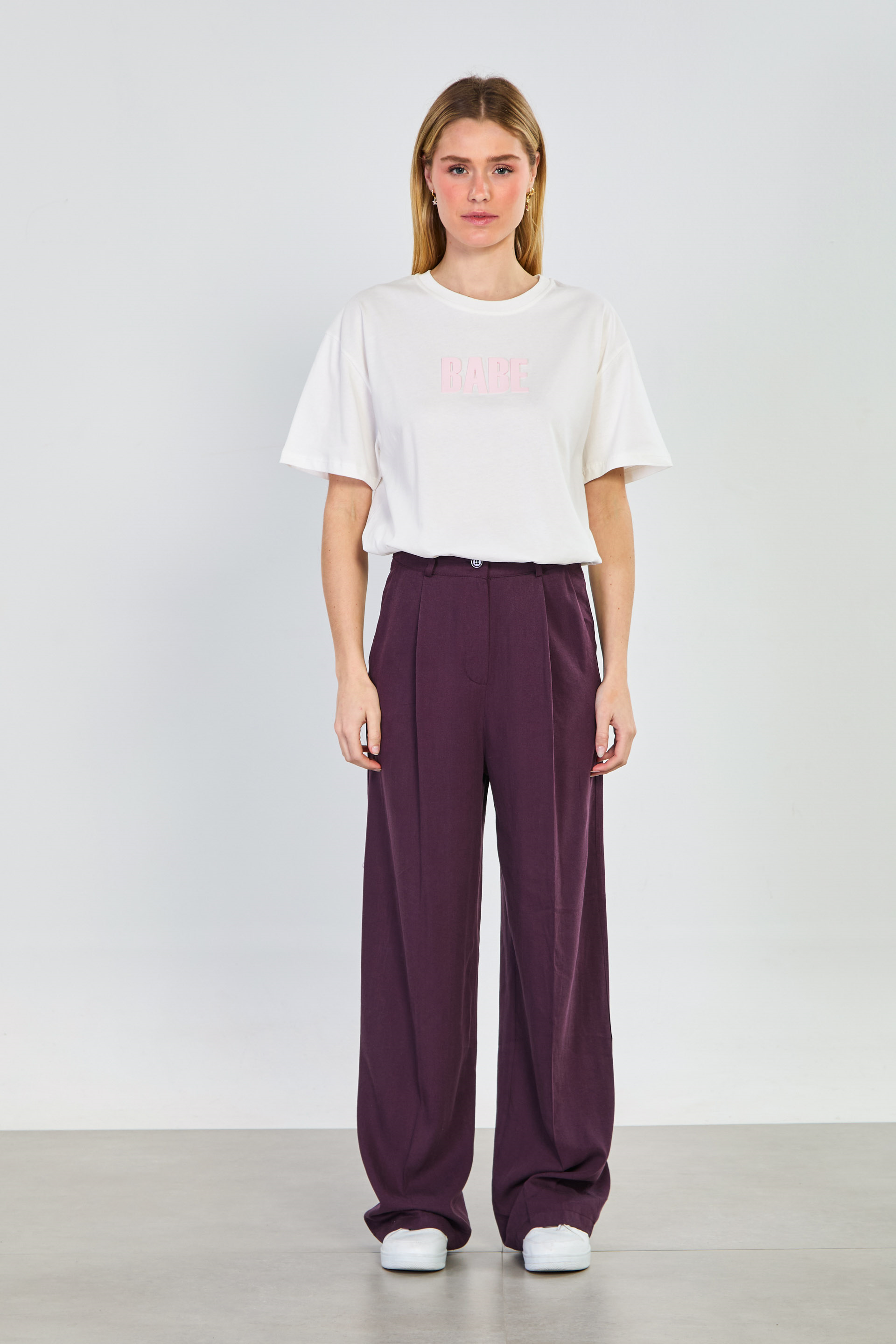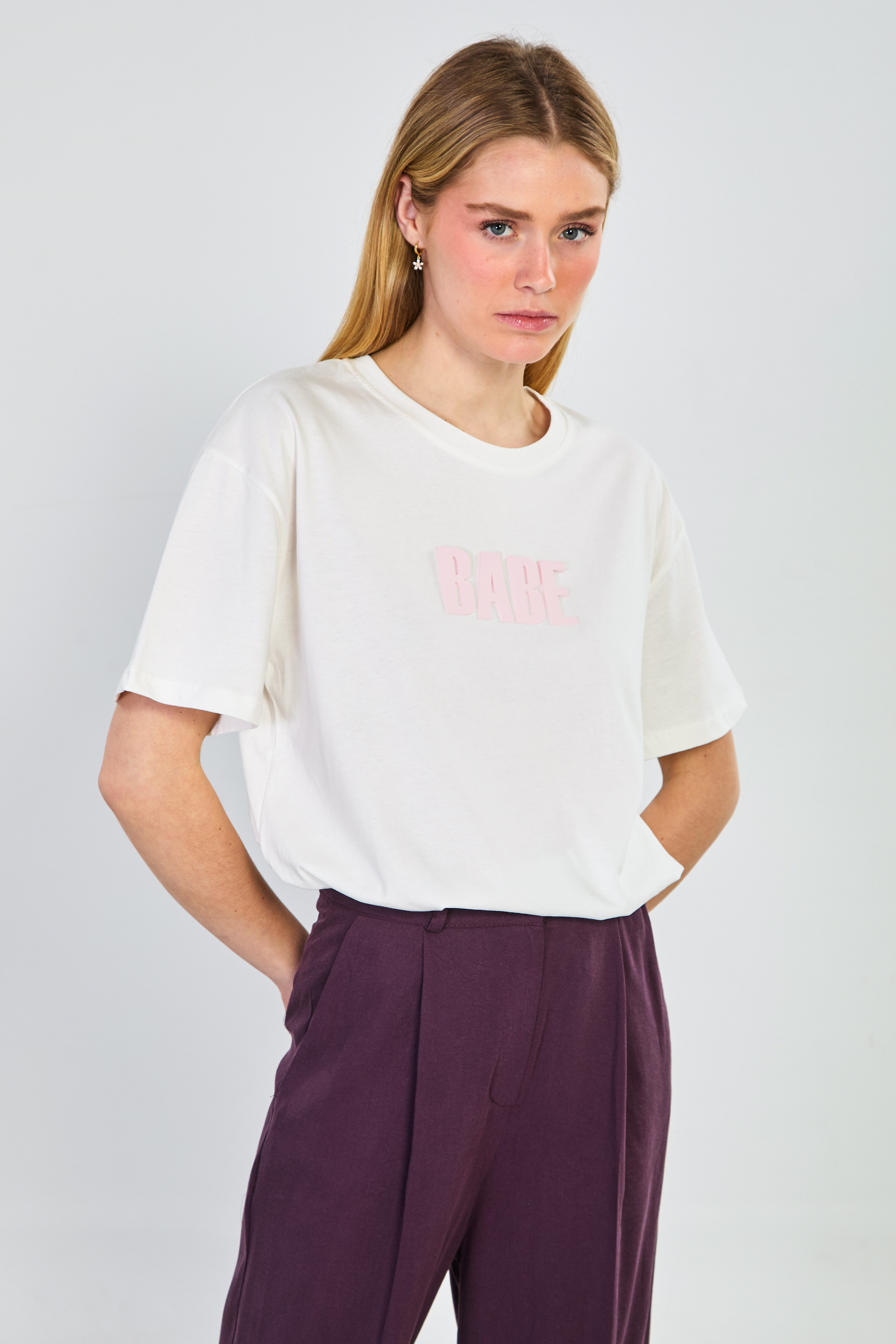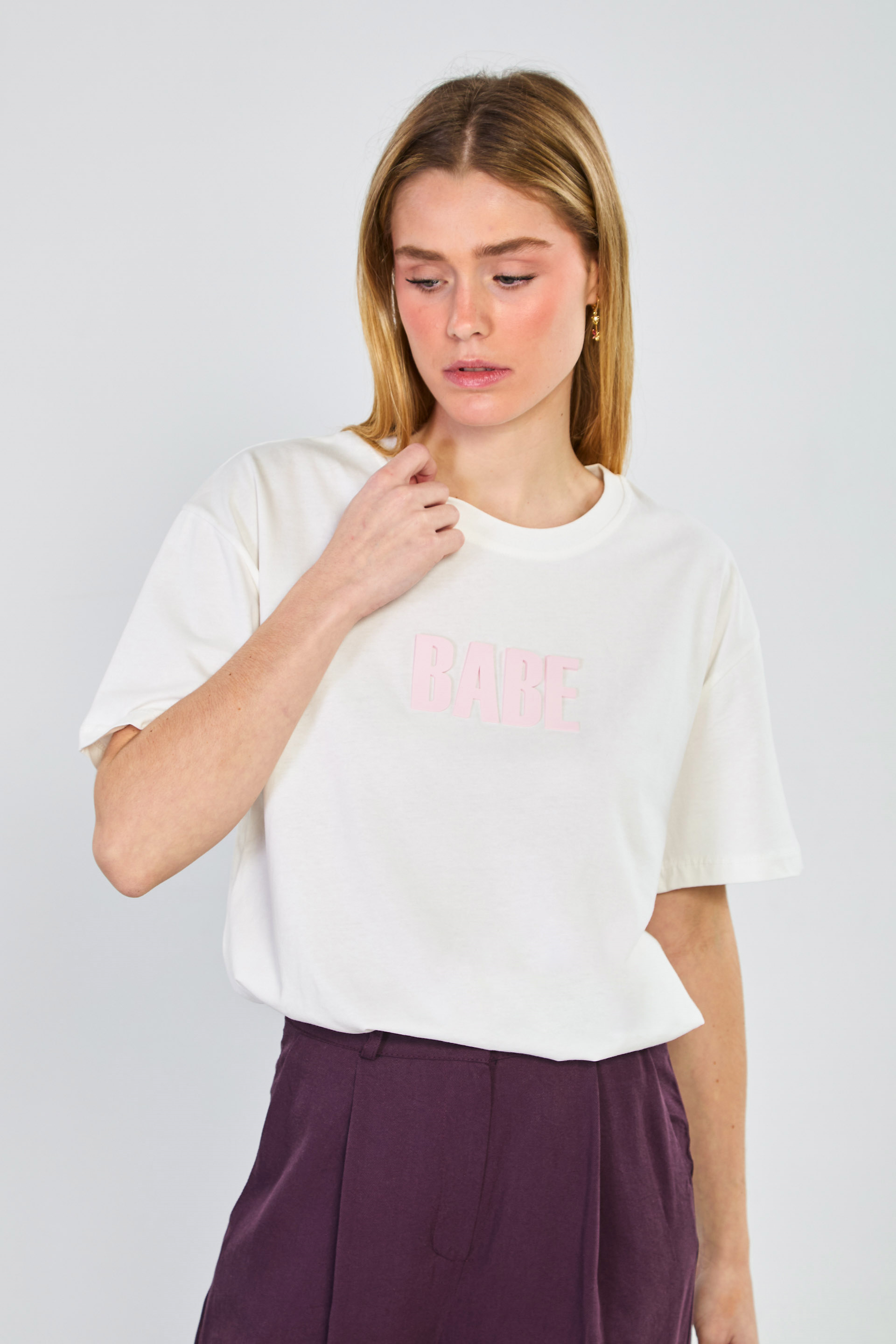 Kadın Kabartmalı Babe Yazılı T-Shirt - Beyaz/Pembe