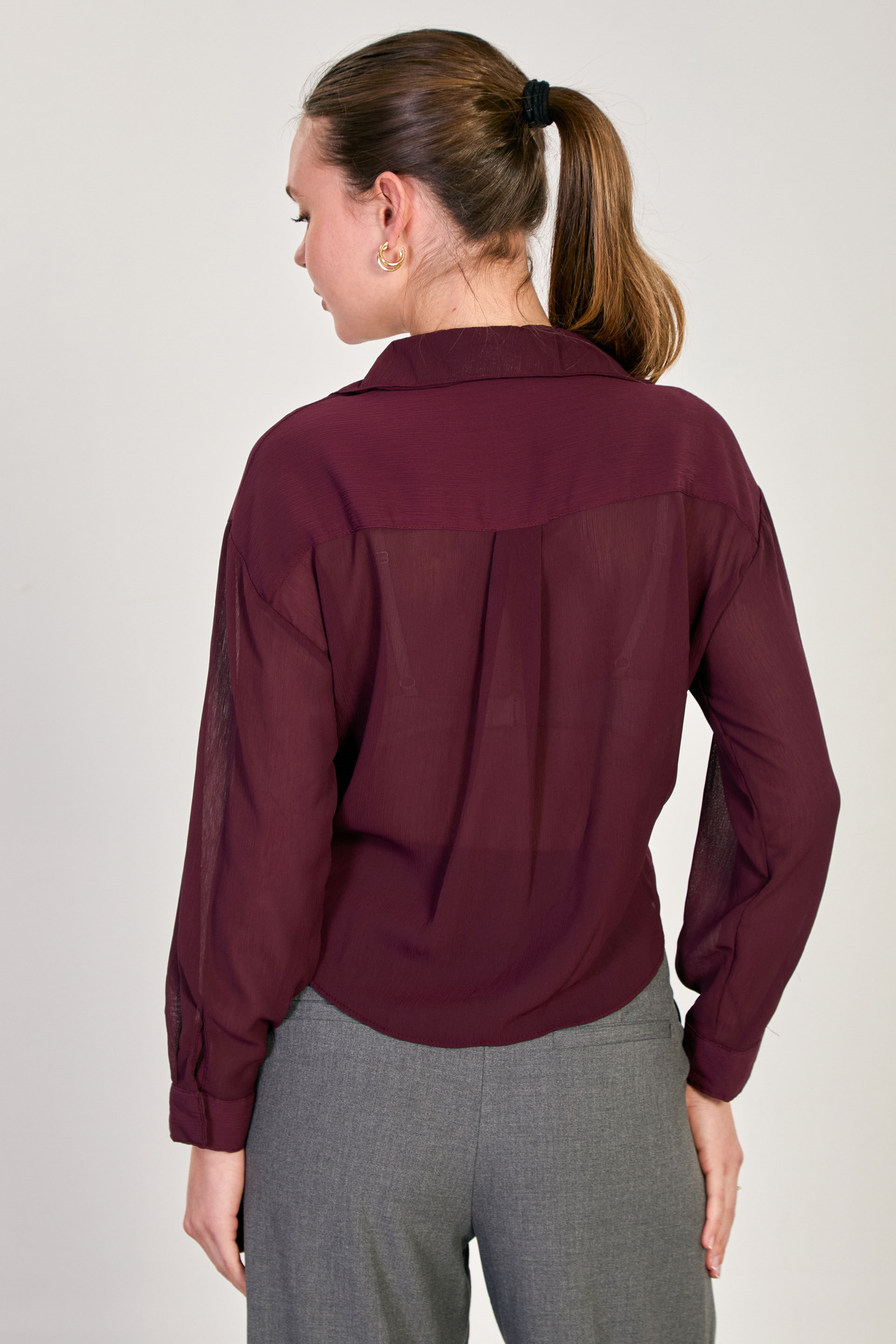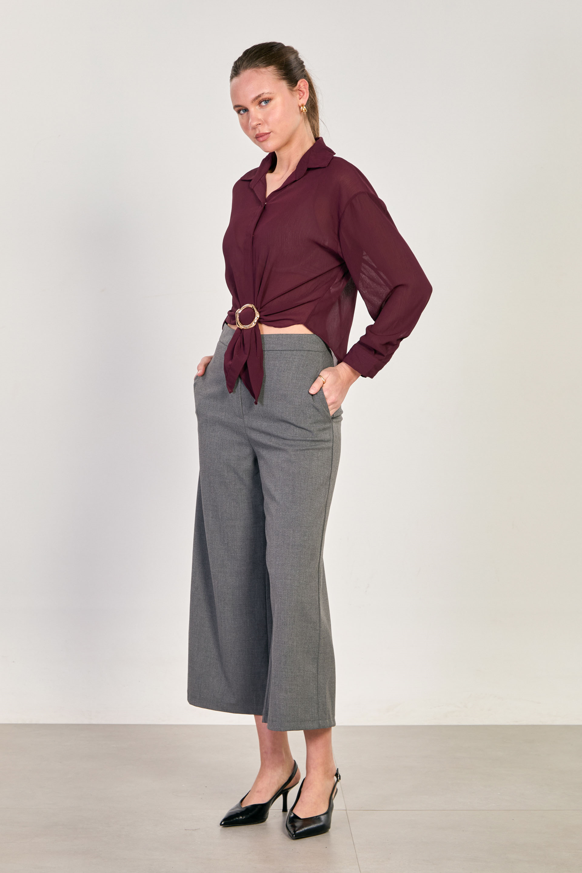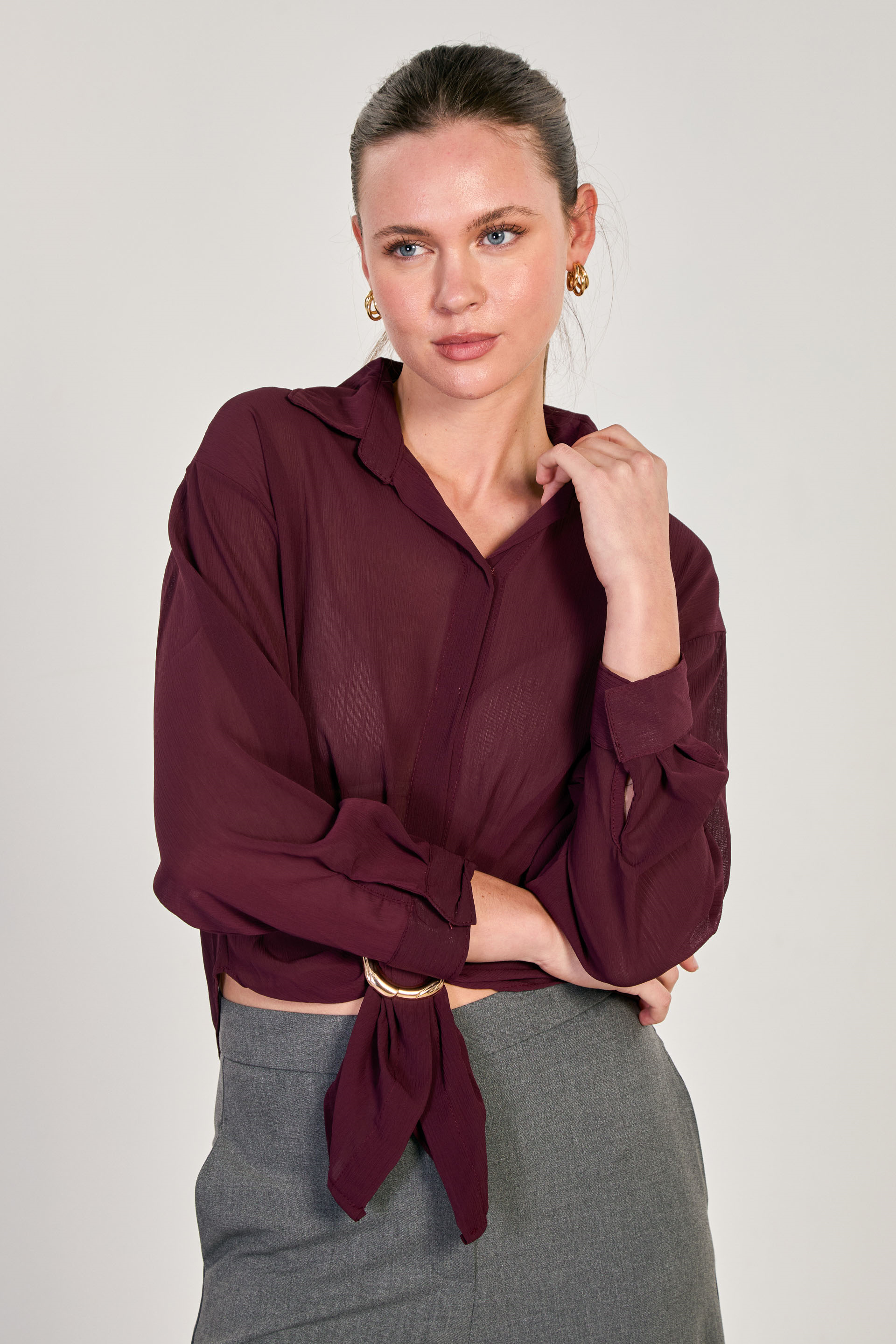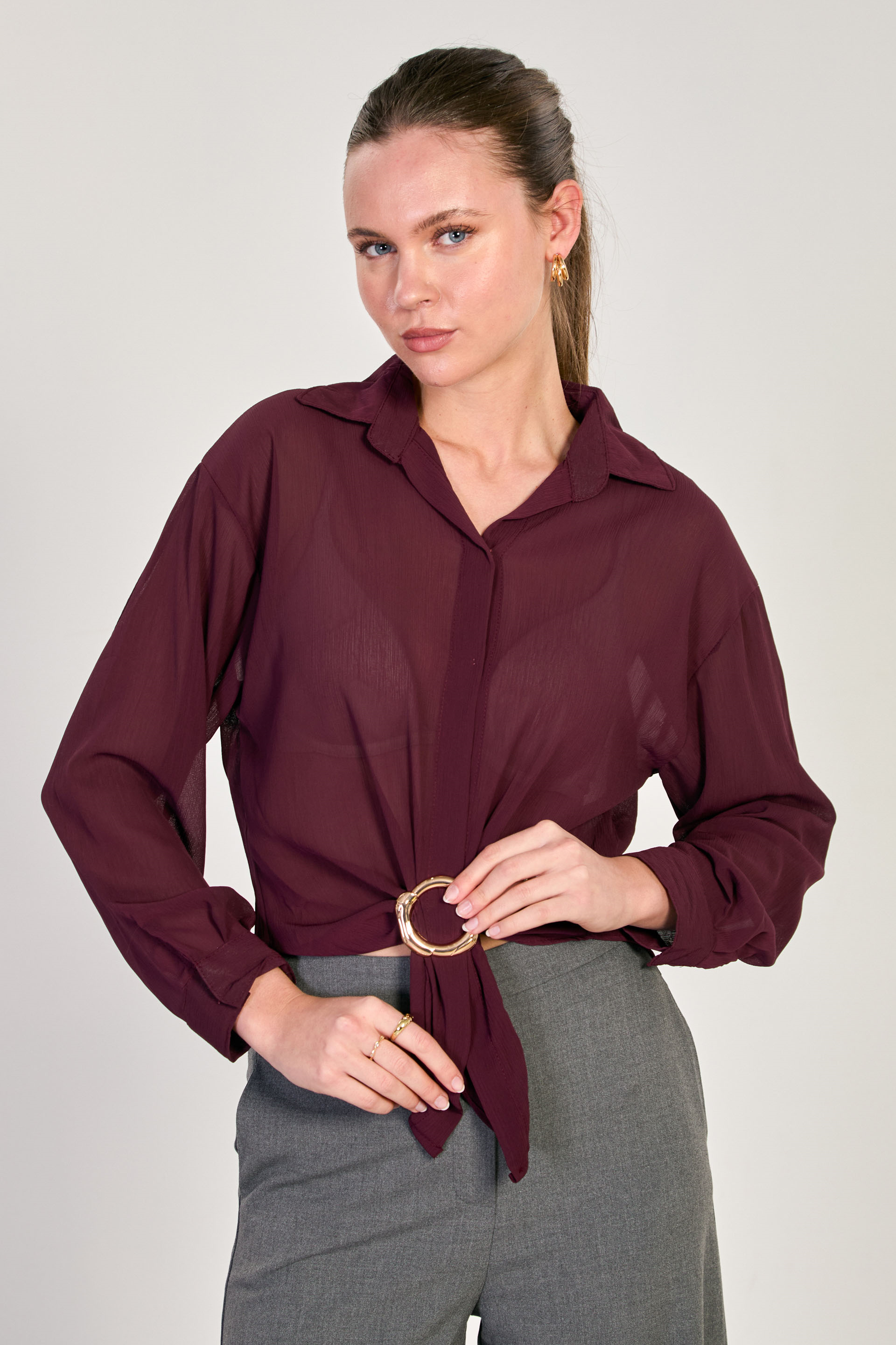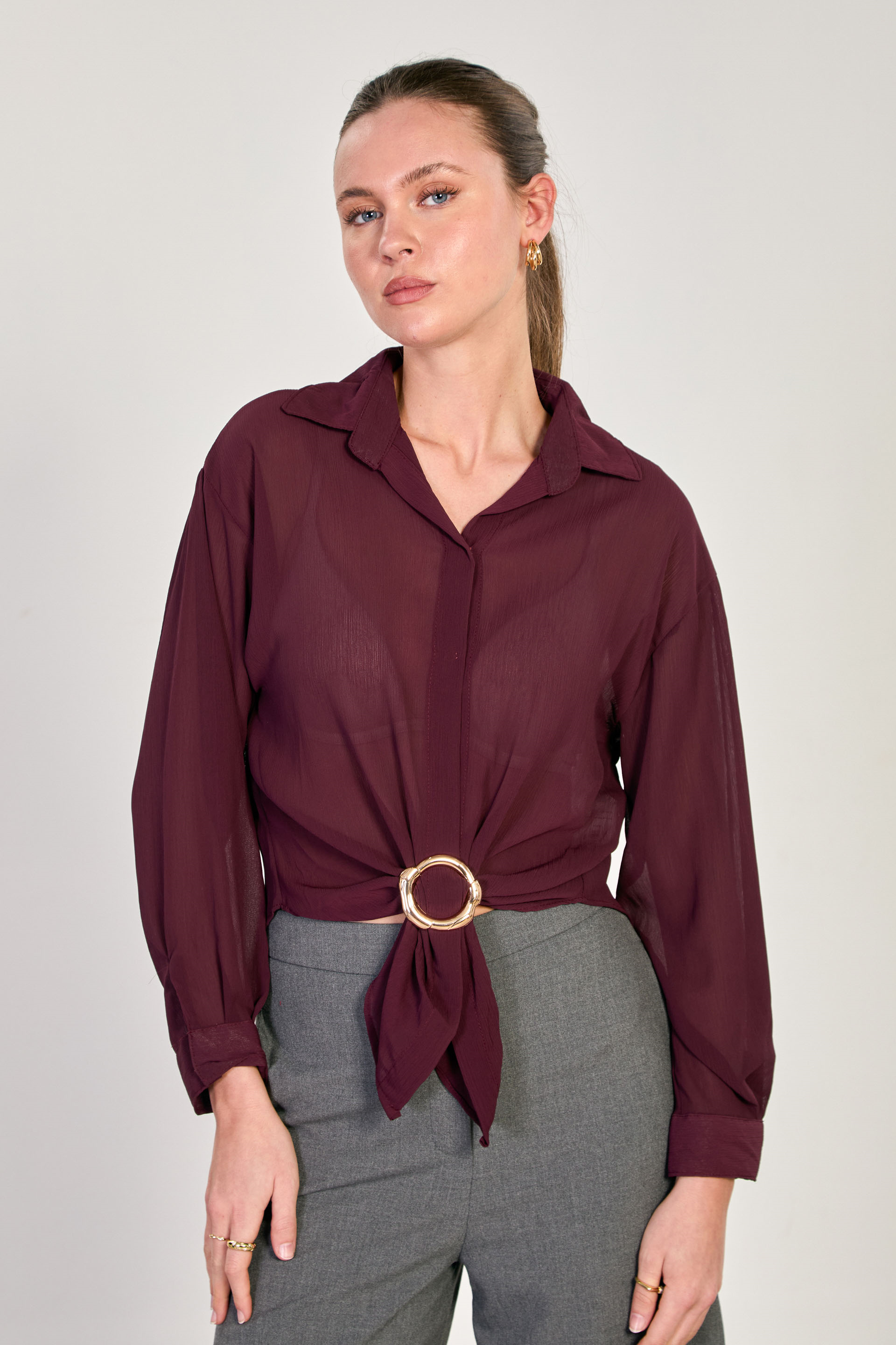 Kadın Halka Tokalı Uzun Kollu Bluz - Mürdüm