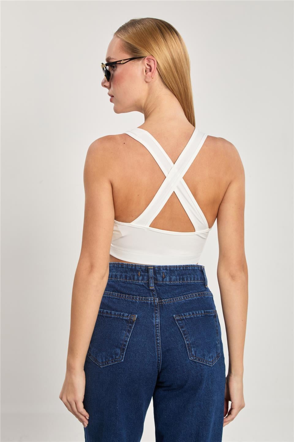 Kadın Kalın Askılı Arkası Çapraz Büstiyer - Ekru