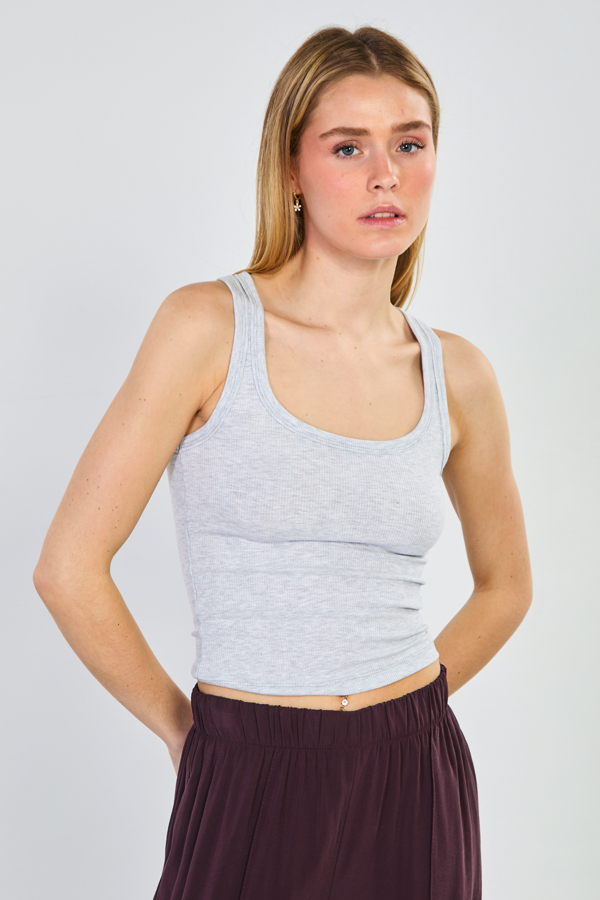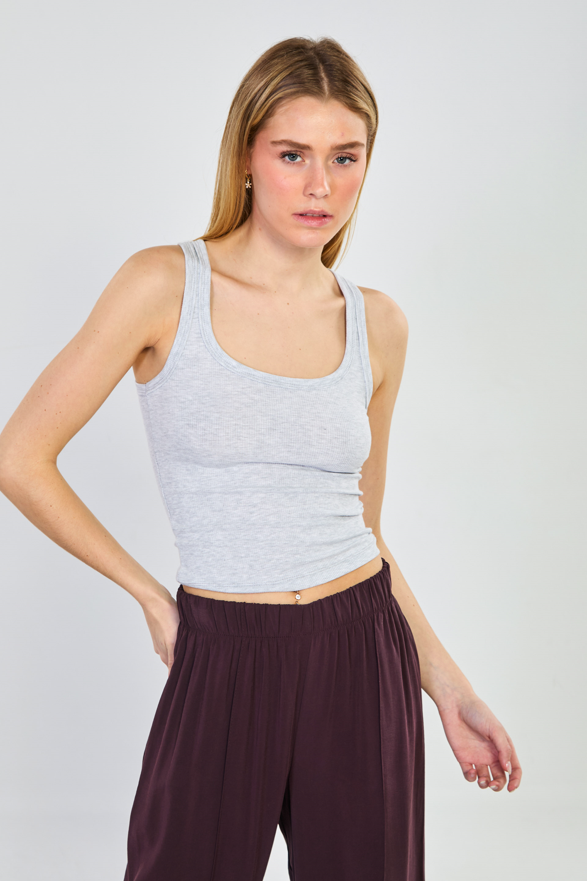 Kadın Kalın Askılı Body - Kar Melanj
