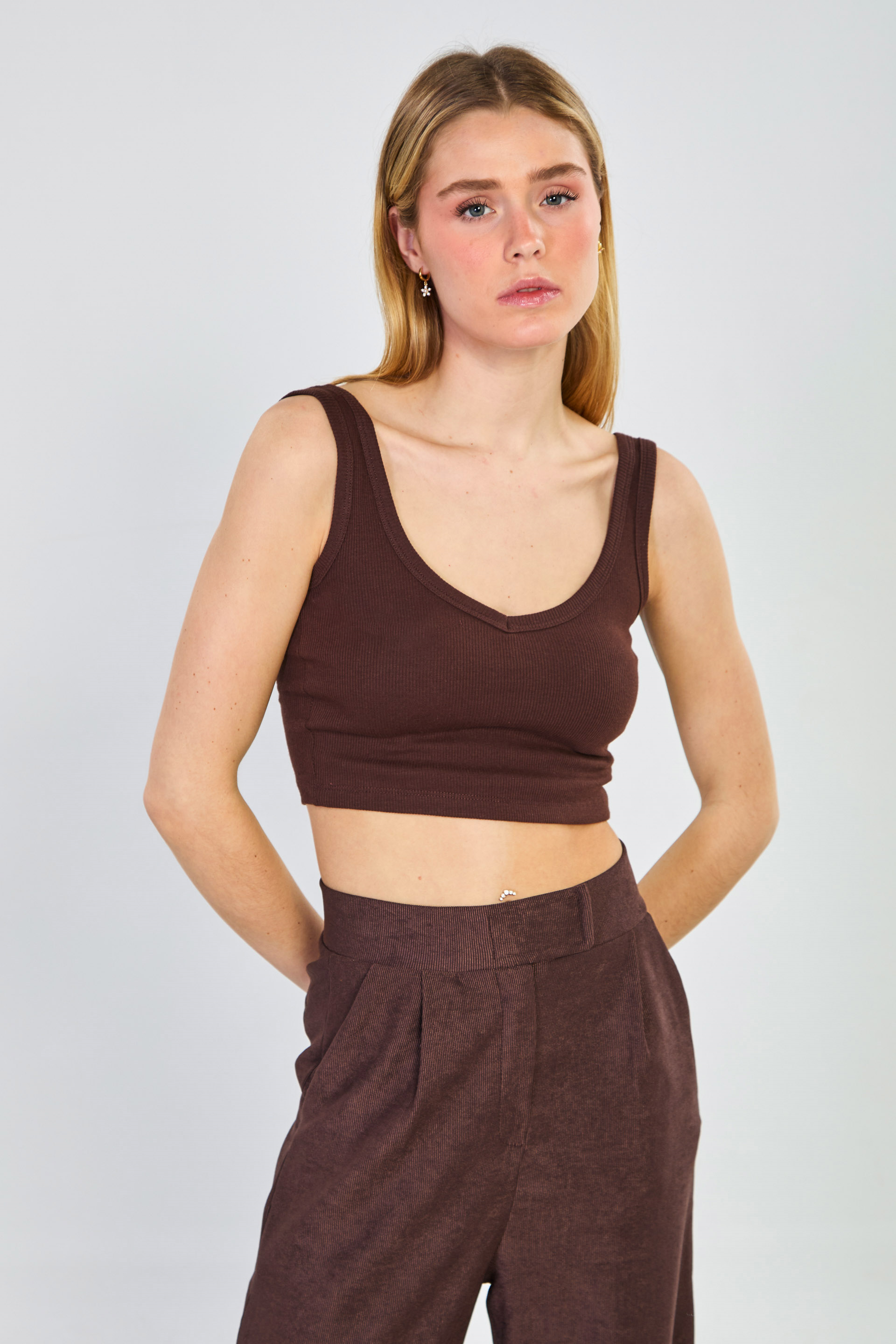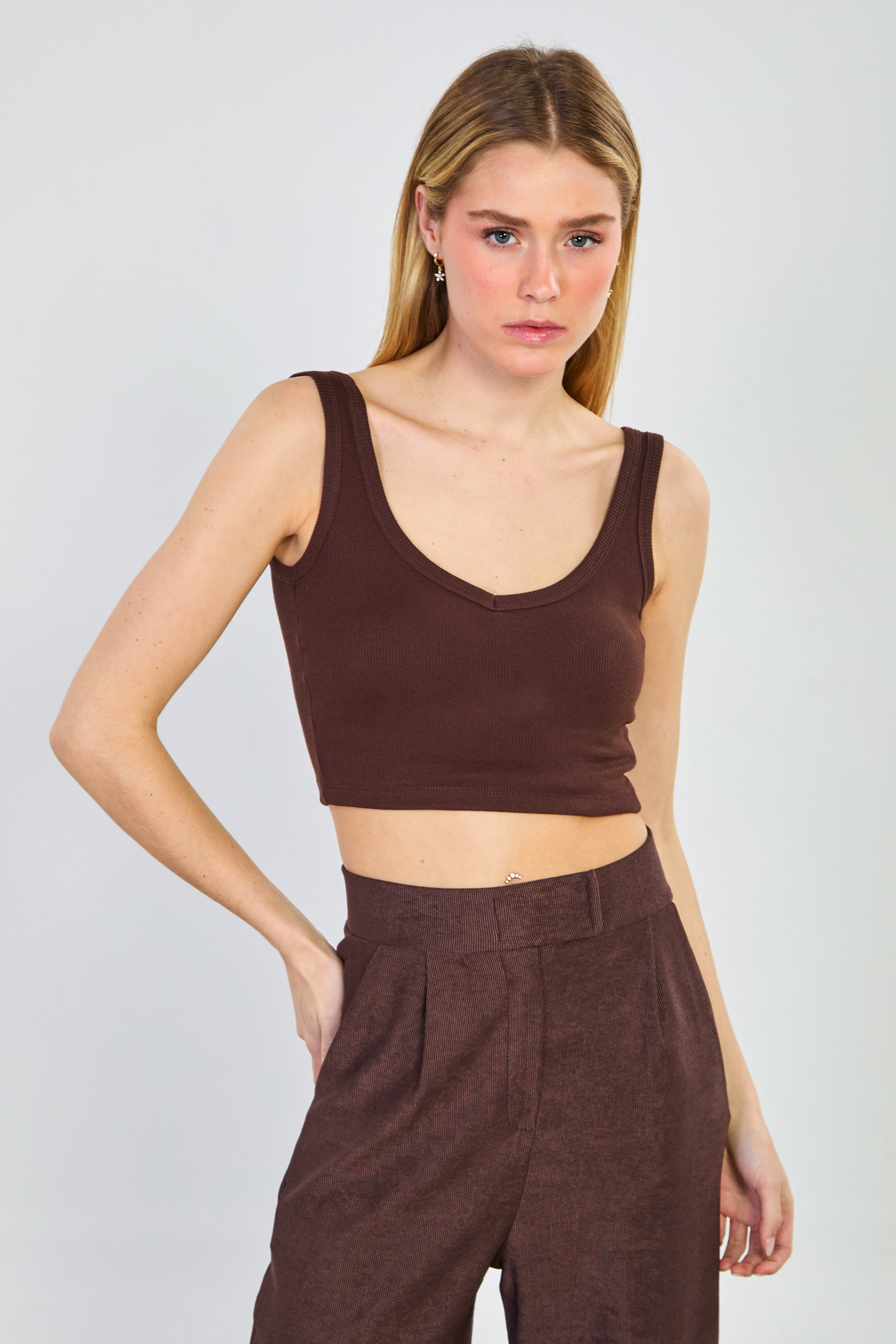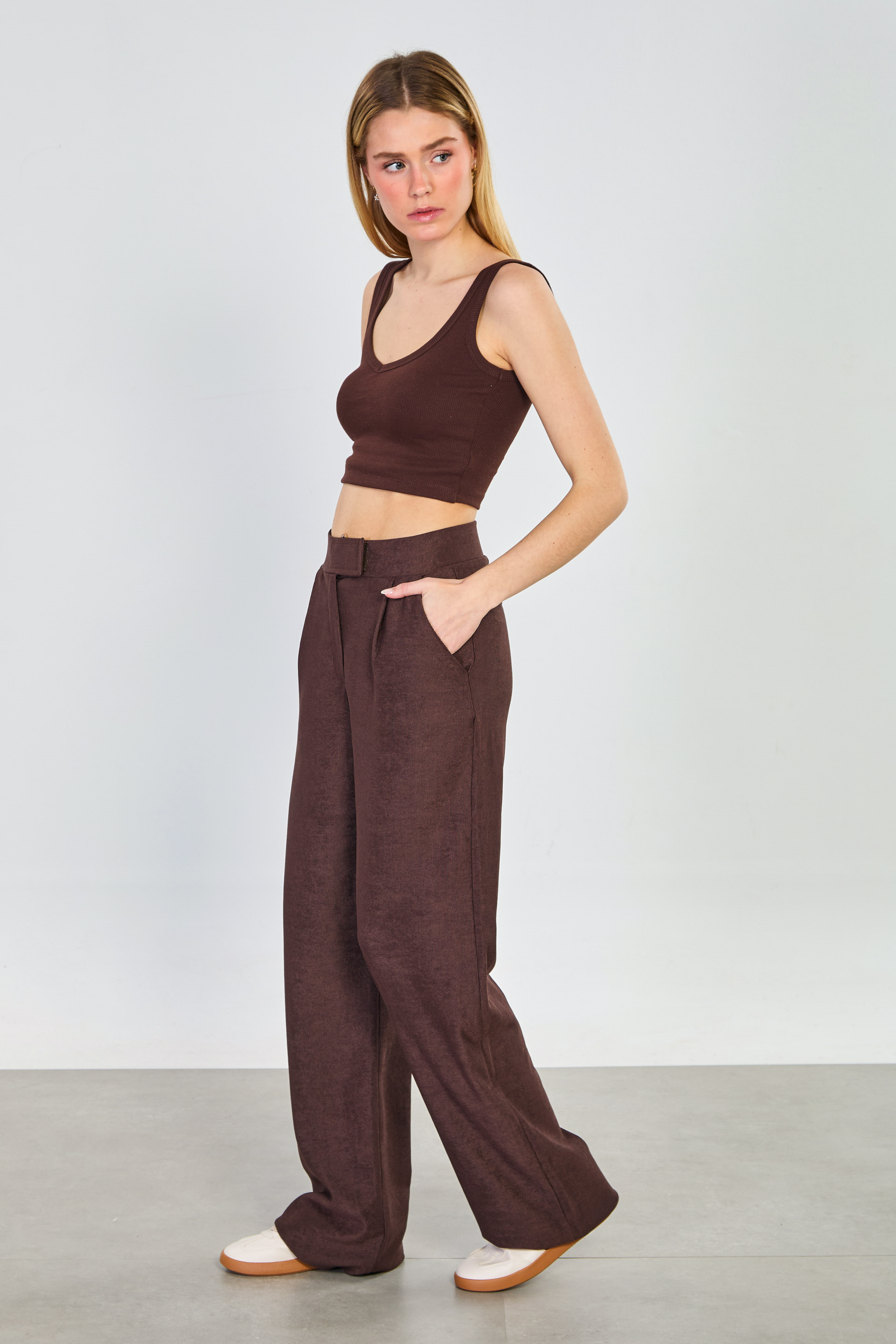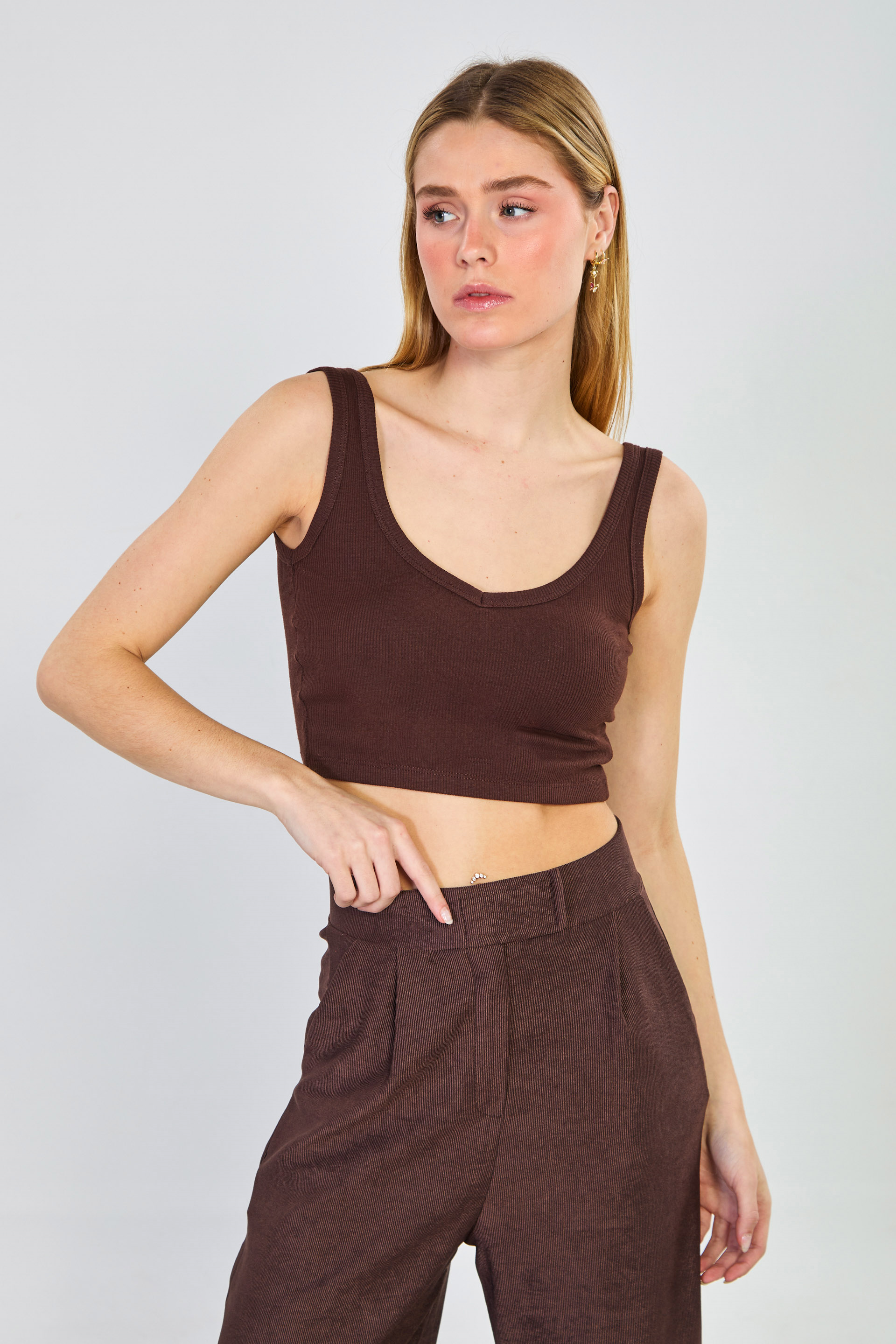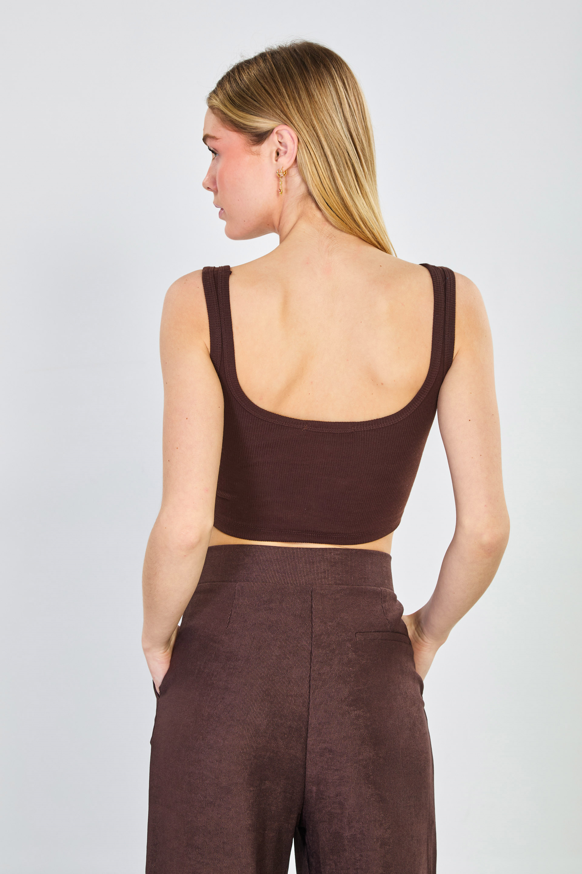 Kadın Kalın Askılı Göğüs Pedli Body - Kahve