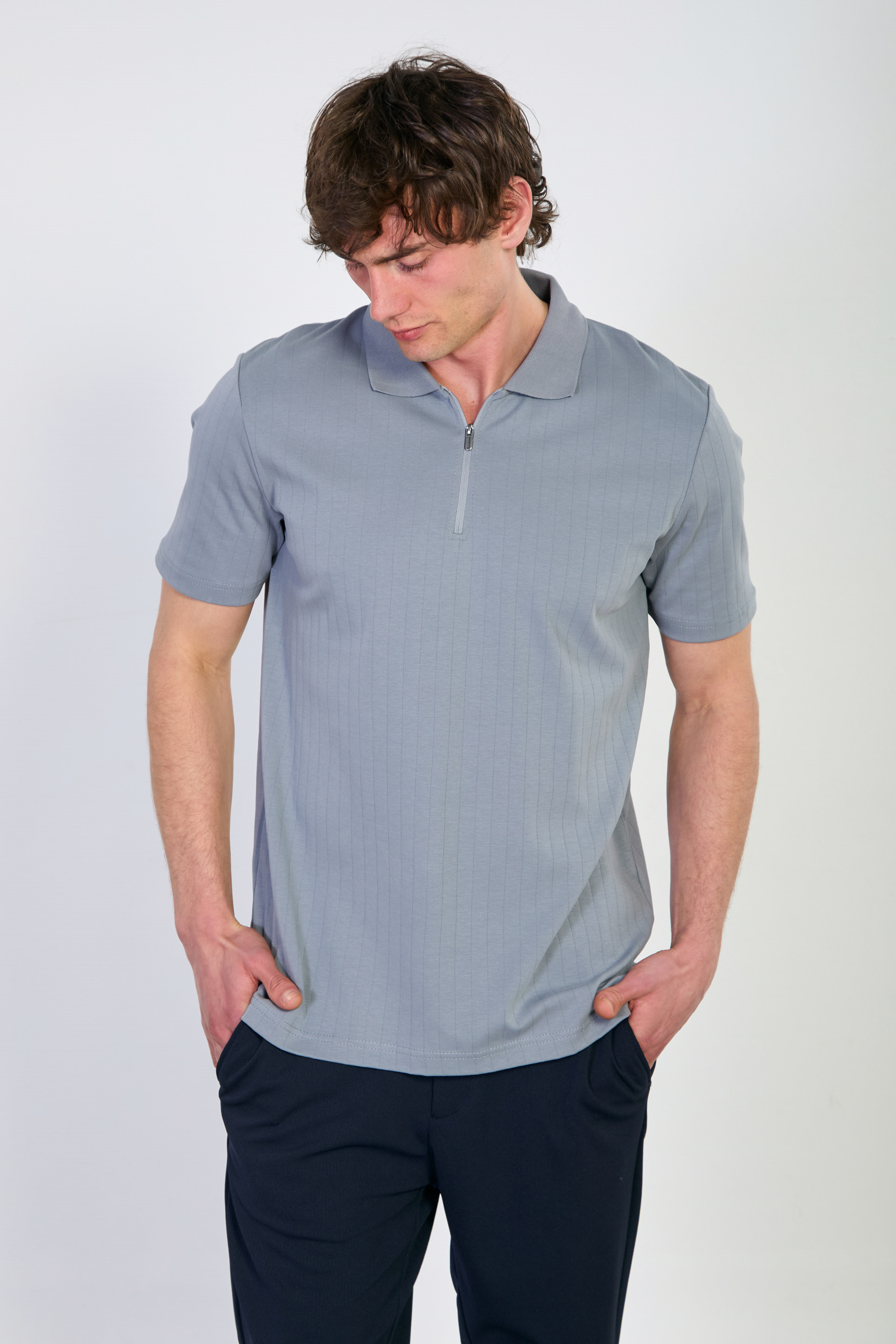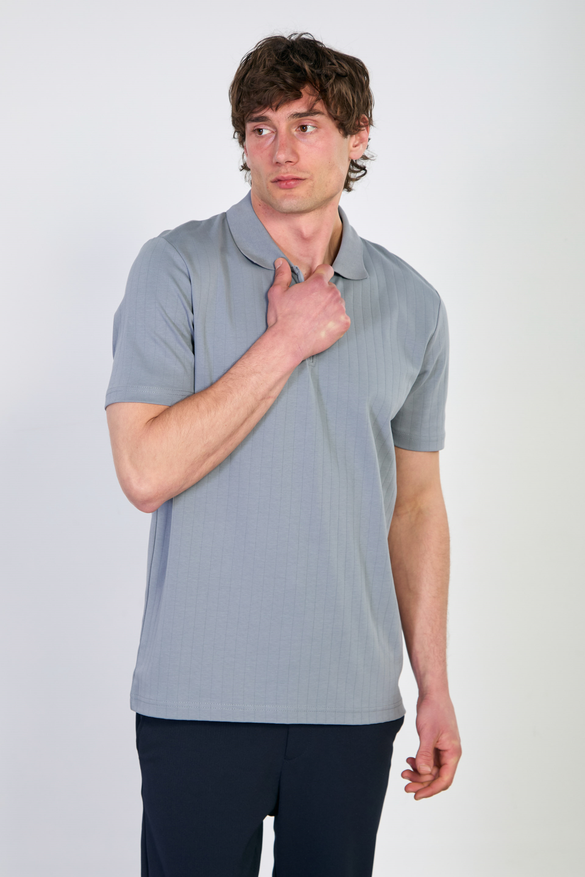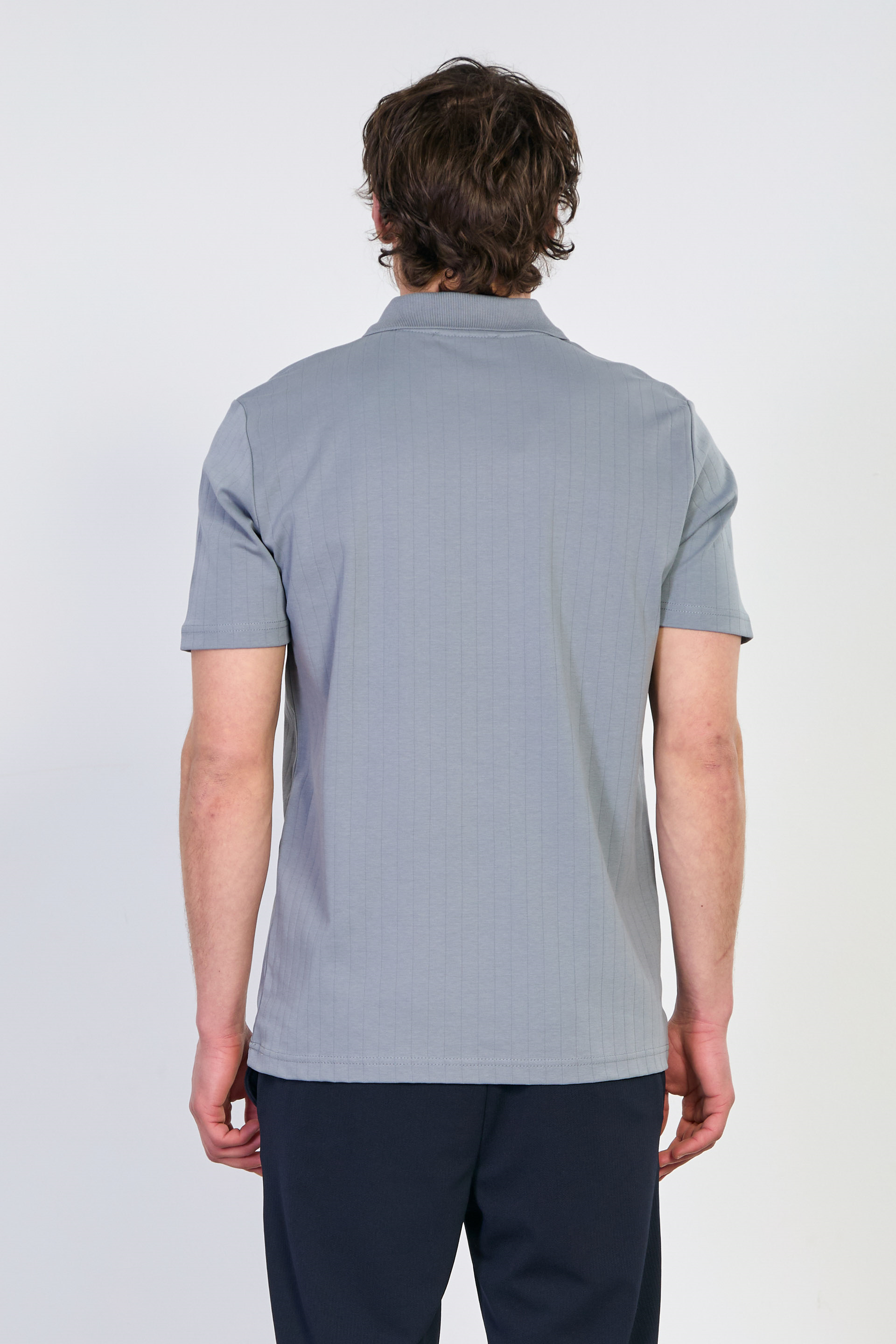 Erkek Kalın Çizgili Polo Yaka T-Shirt - Açık Gri