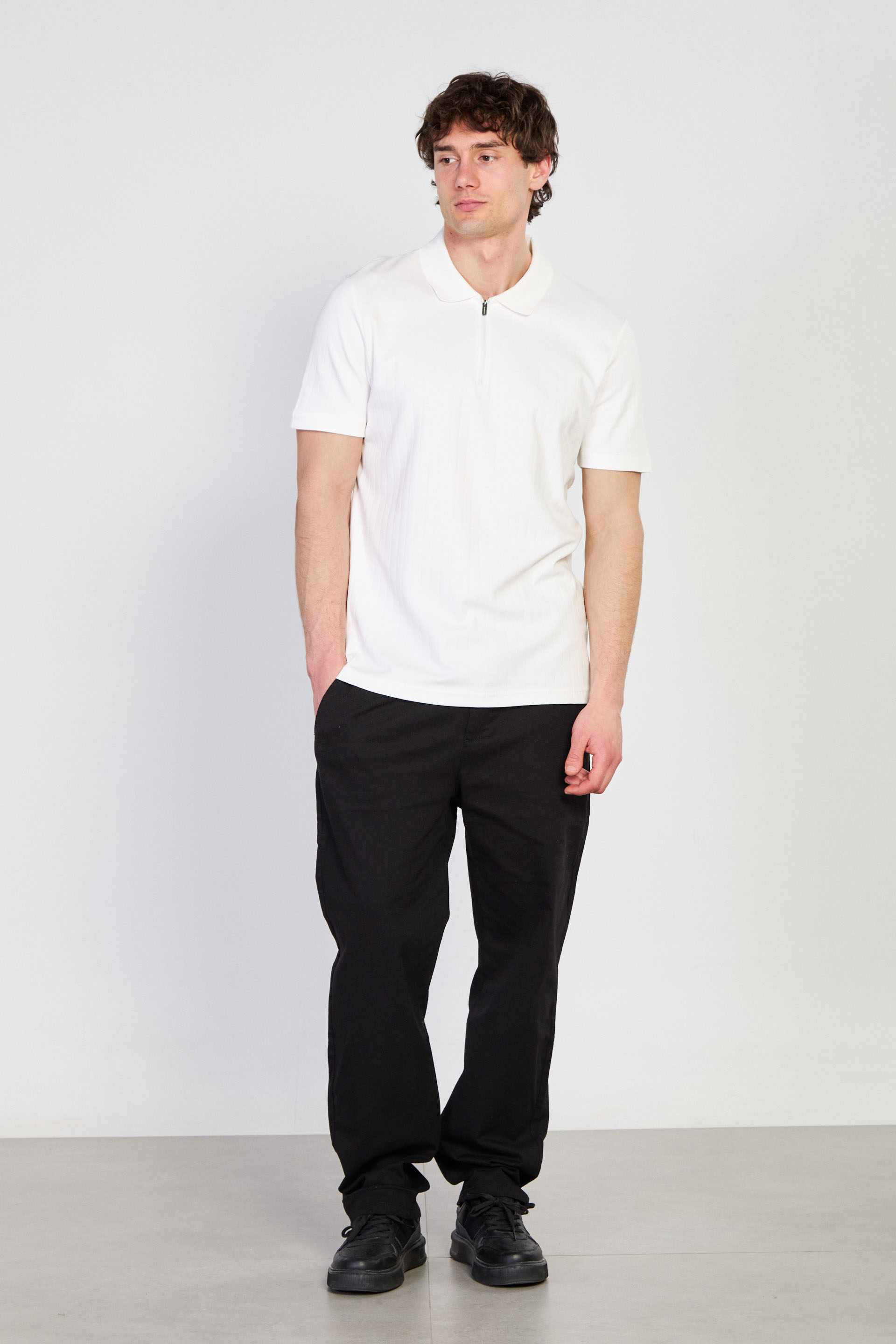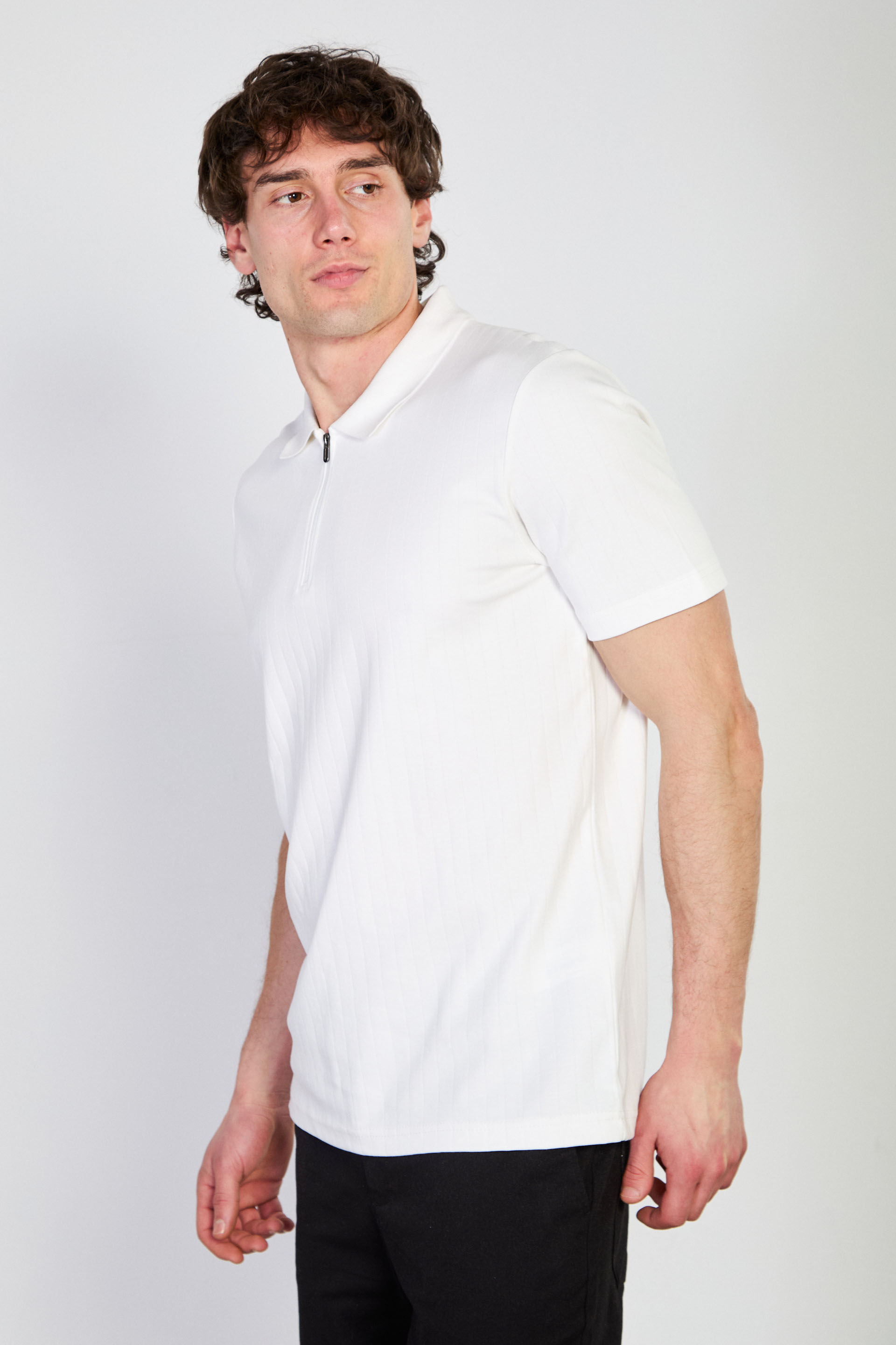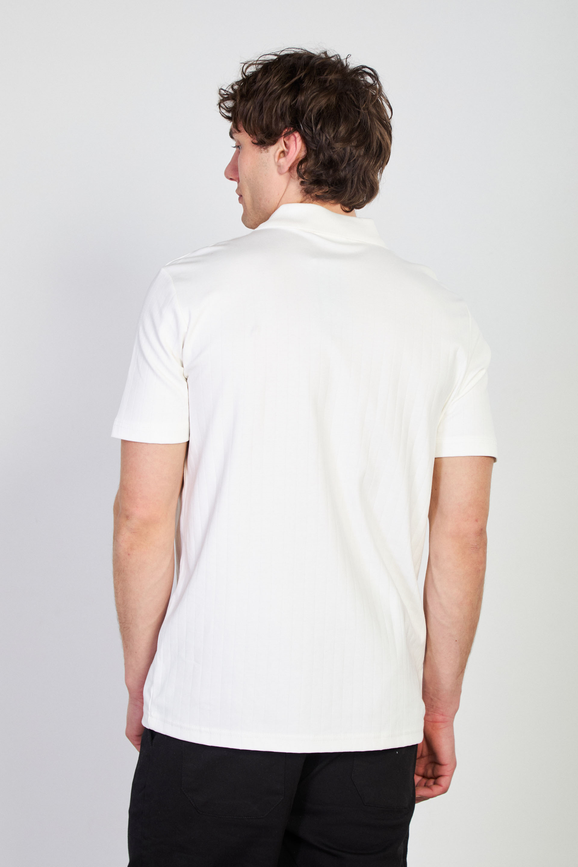 Erkek Kalın Çizgili Polo Yaka T-Shirt - Ekru