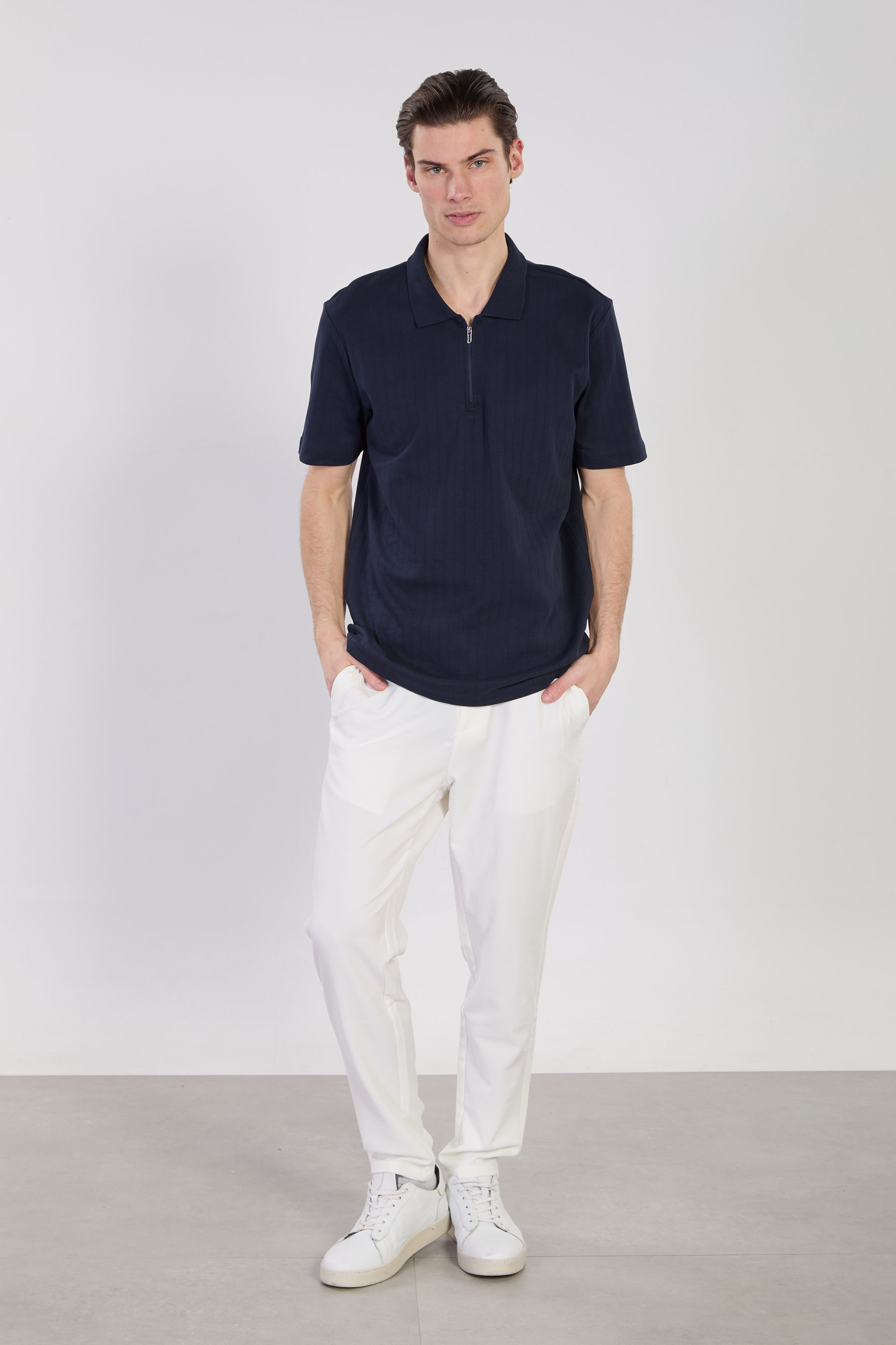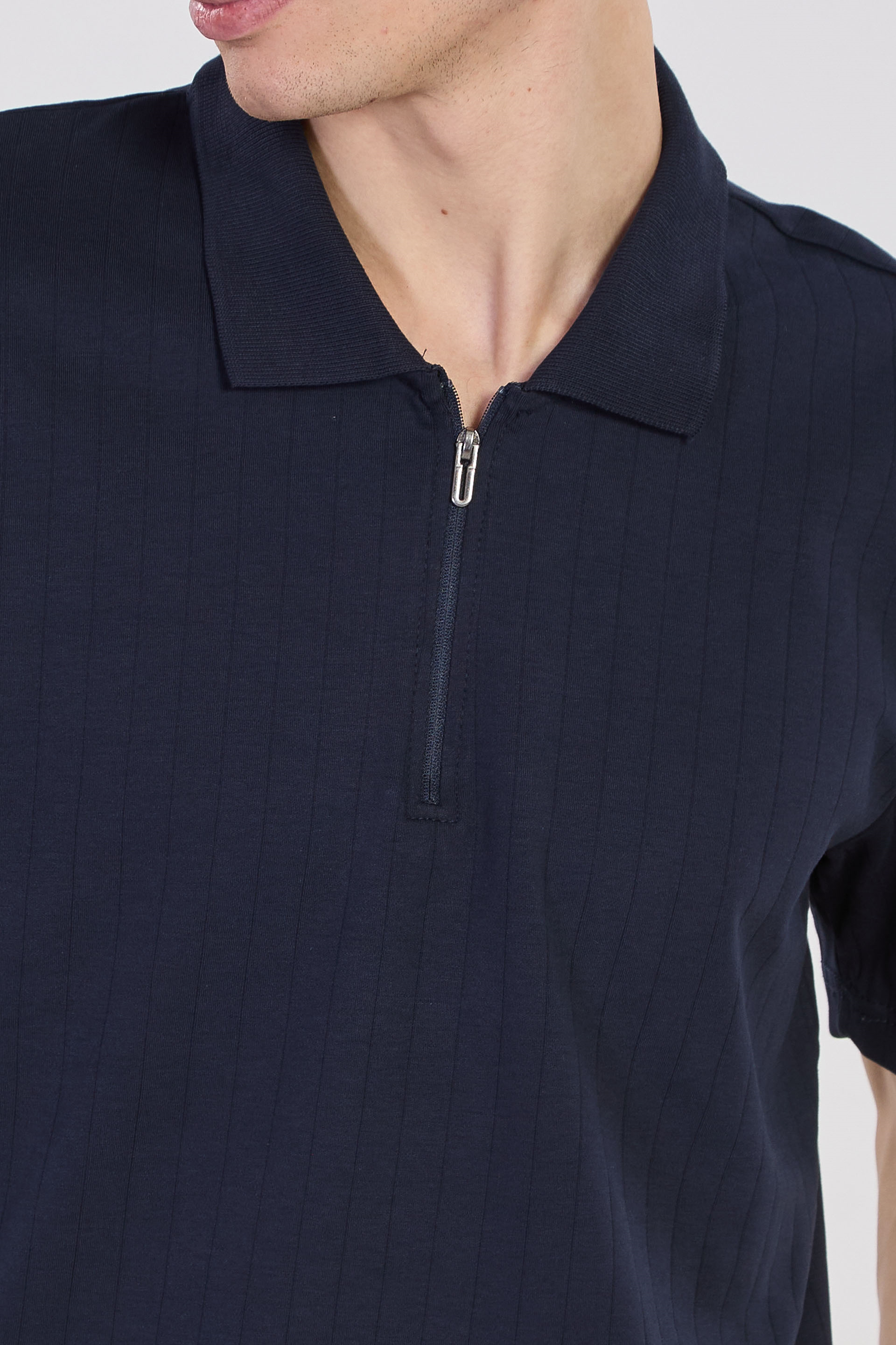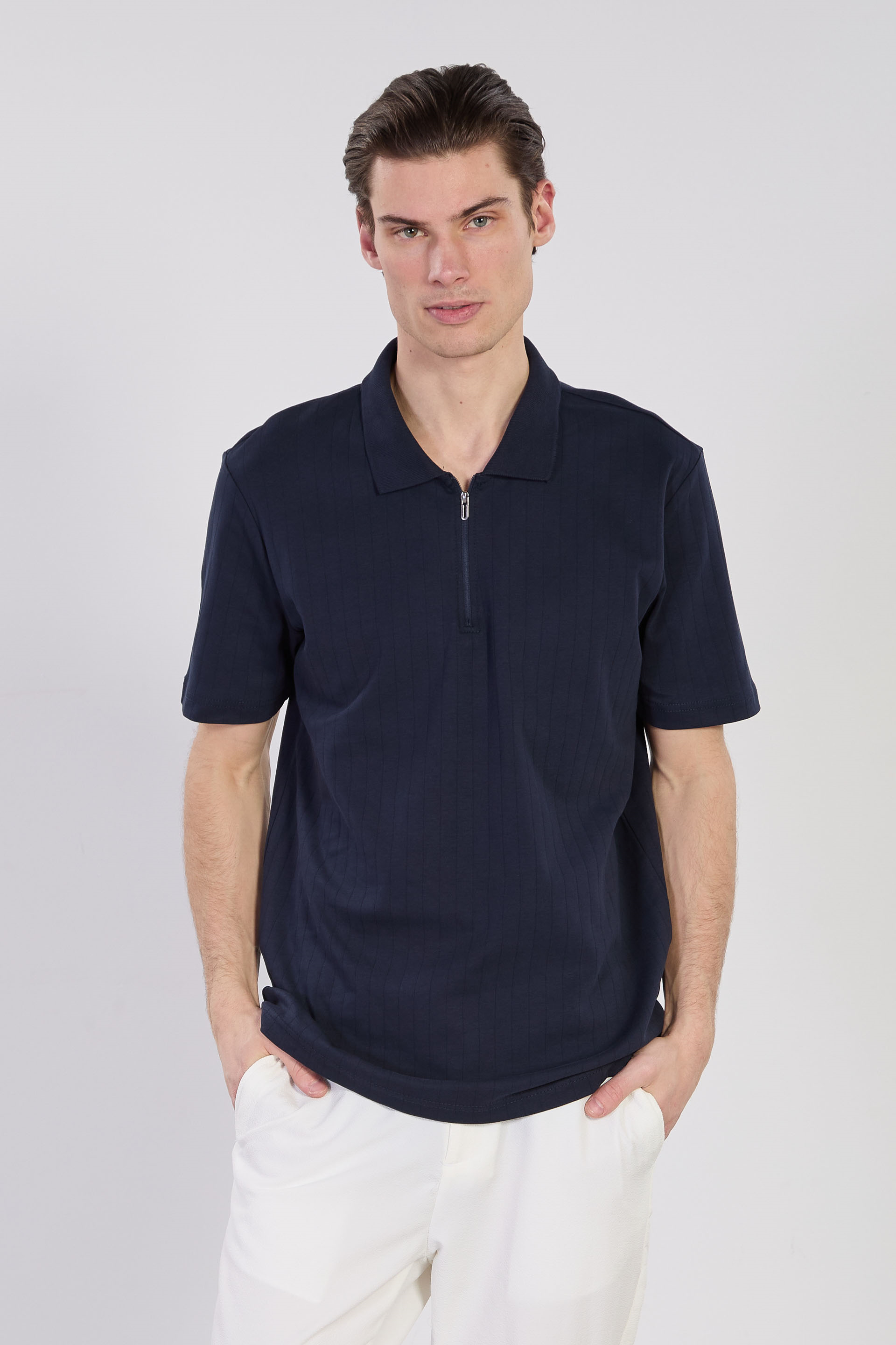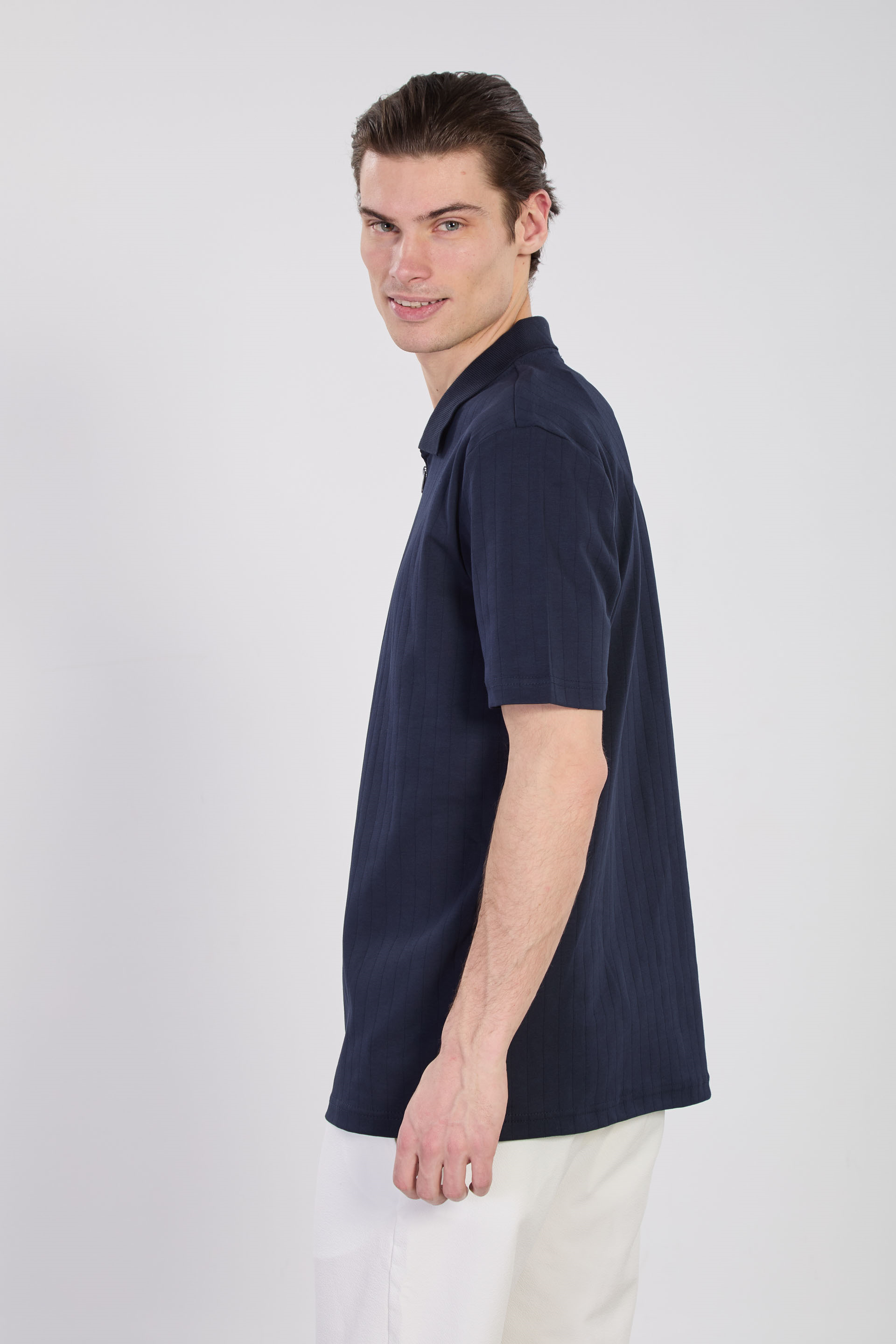 Erkek Kalın Çizgili Polo Yaka T-Shirt - İndigo
