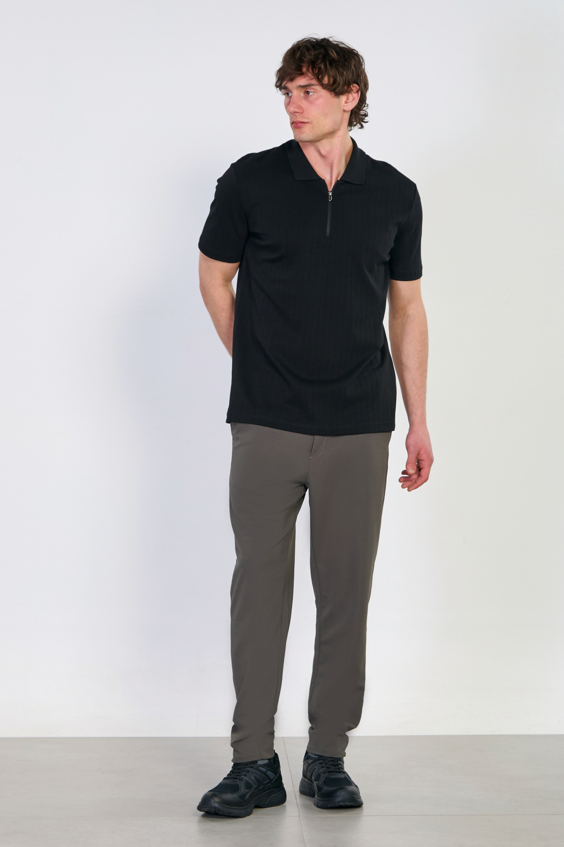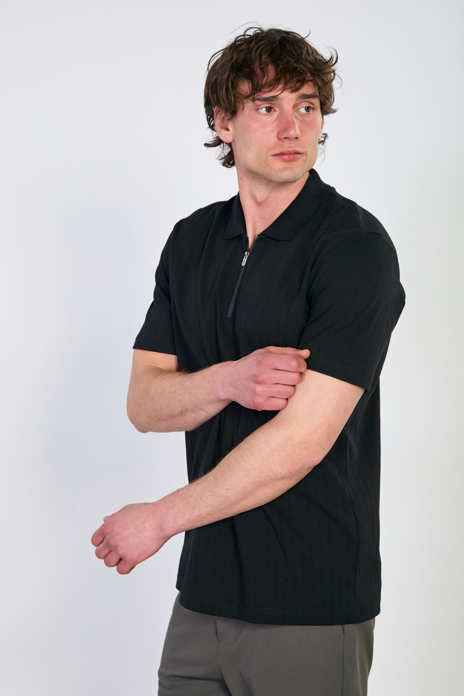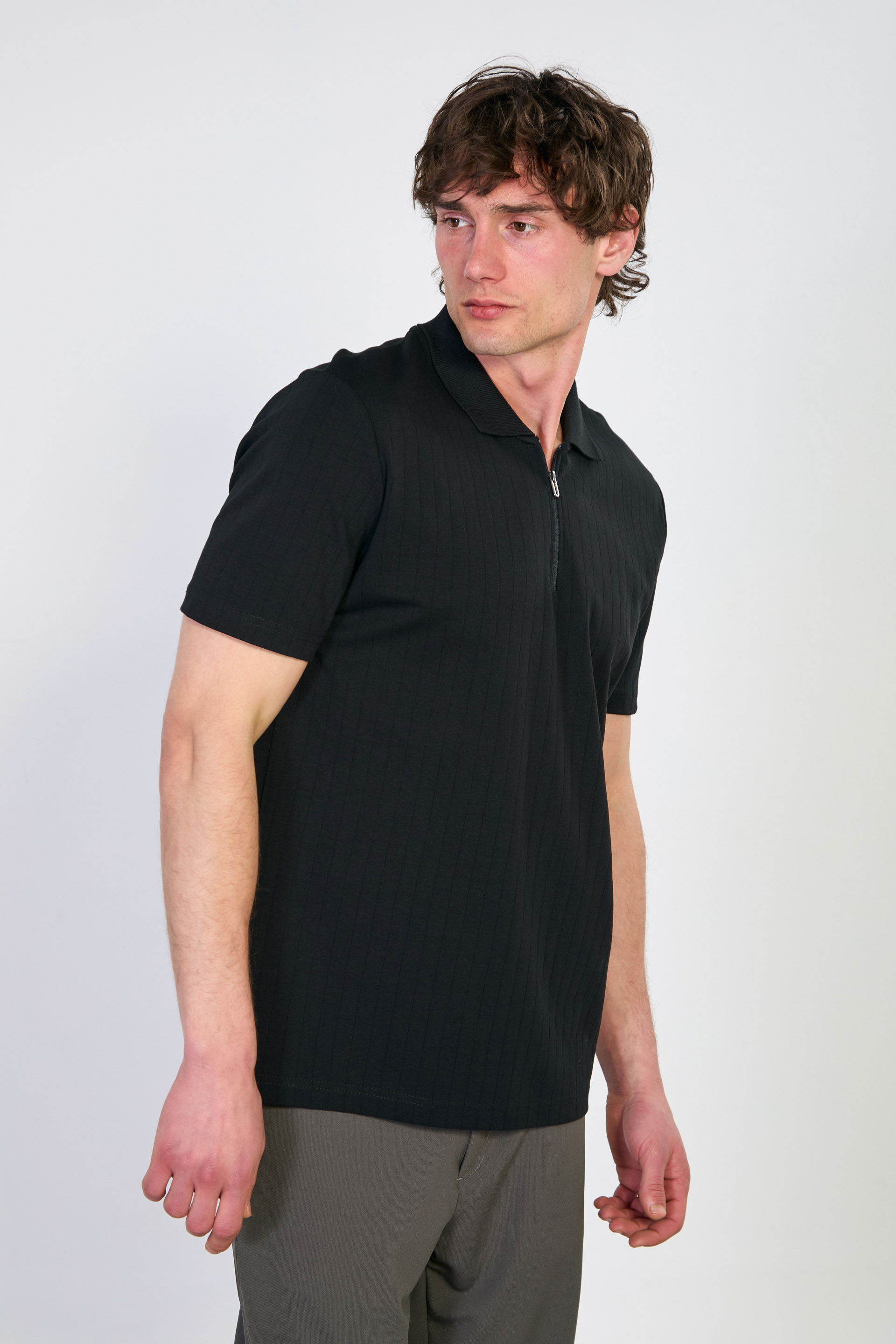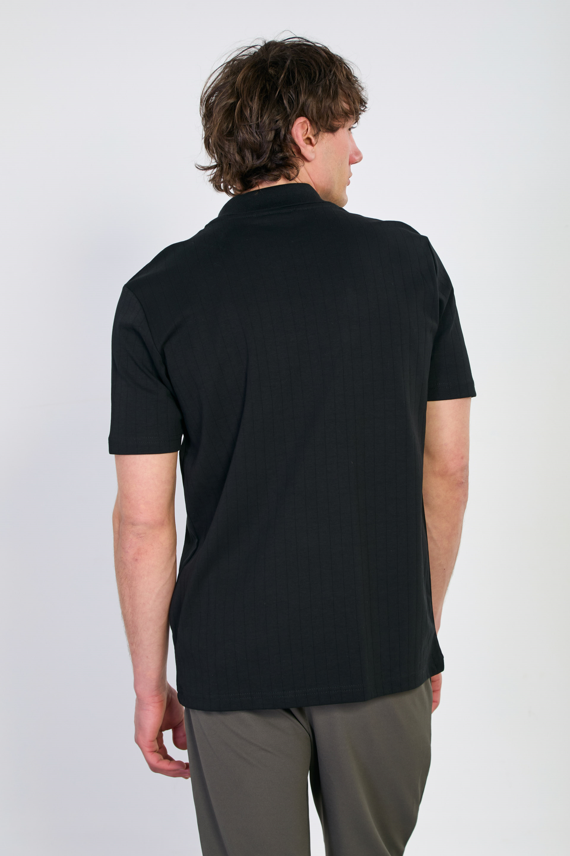 Kalın çizgili polo yaka t-shirt-4058 Siyah
