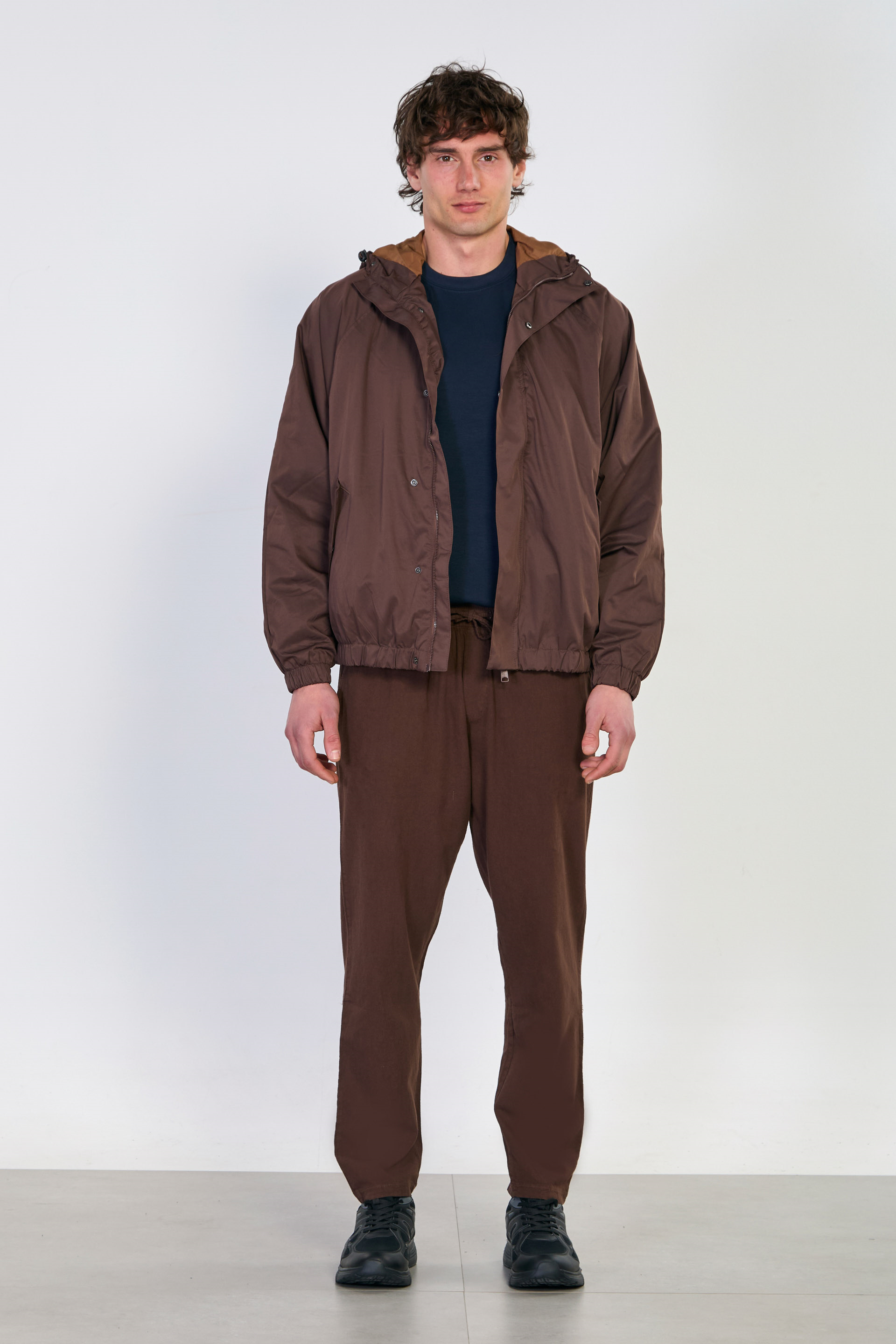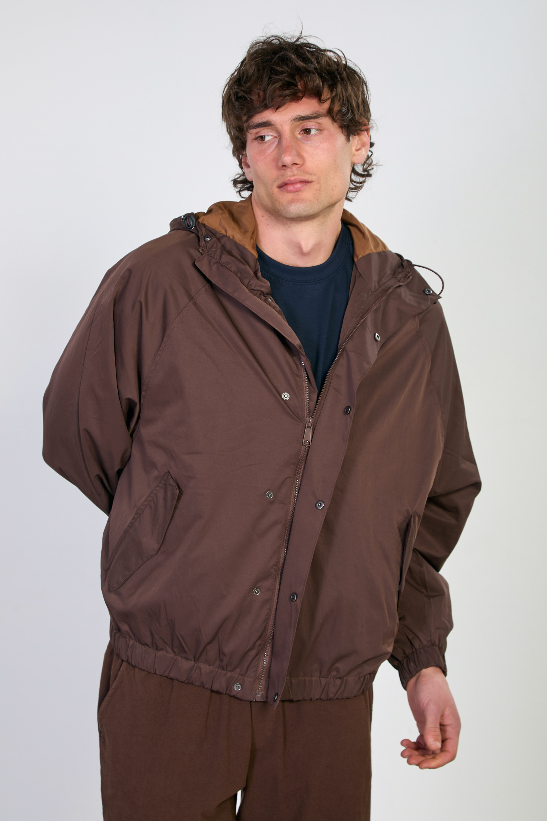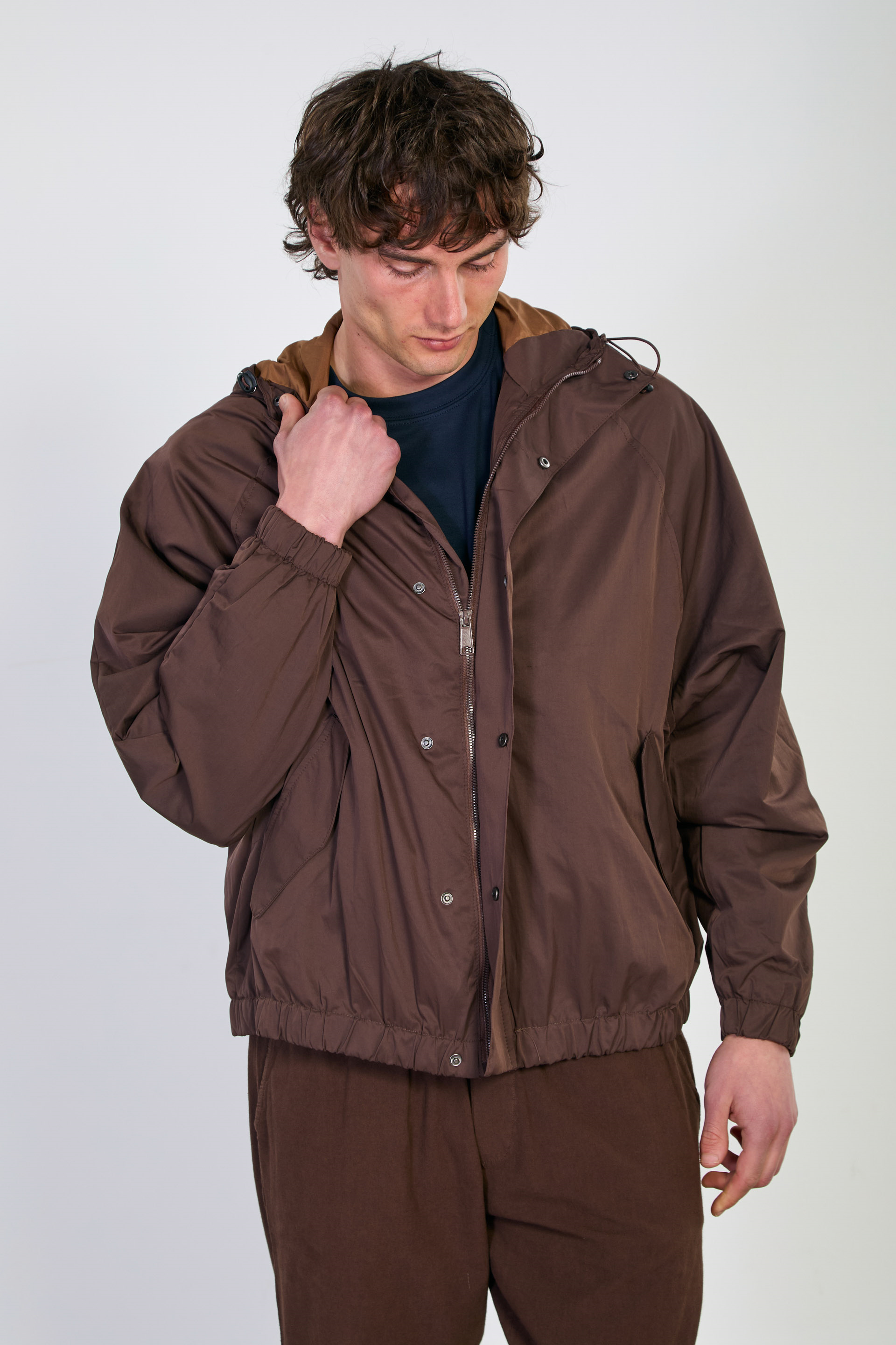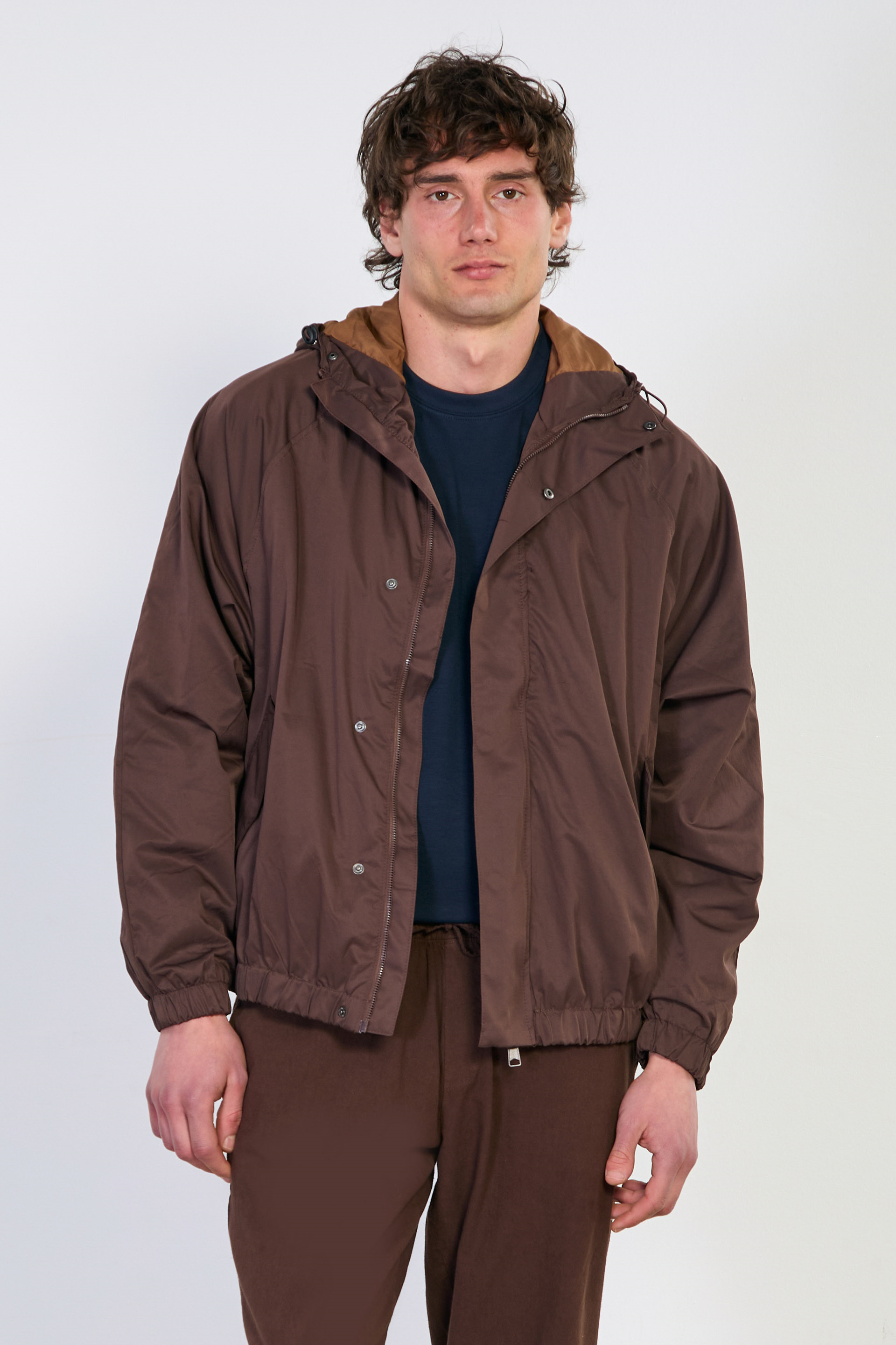 Erkek Kapüşonlu Çıtçıtlı Yağmurluk - Kahve