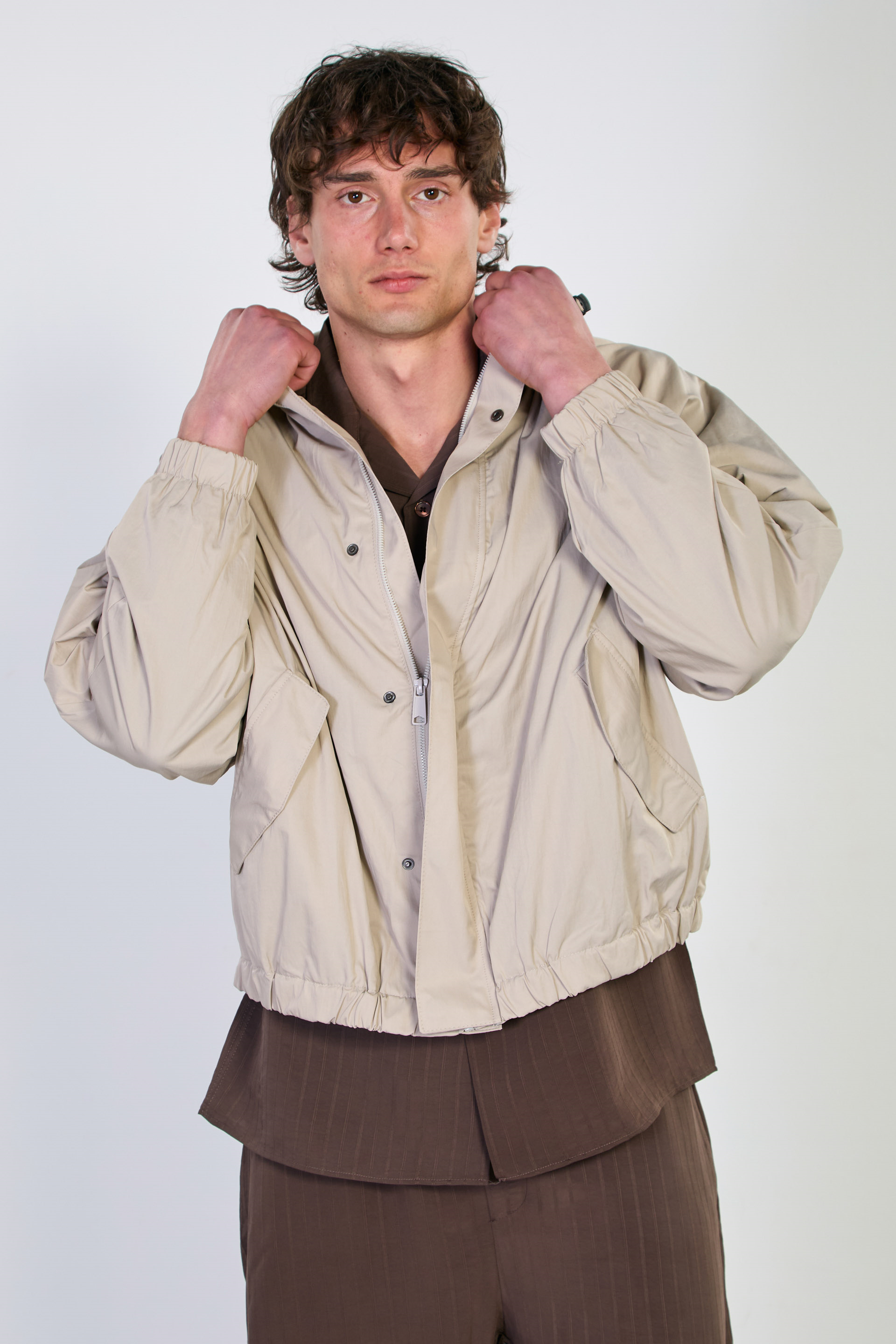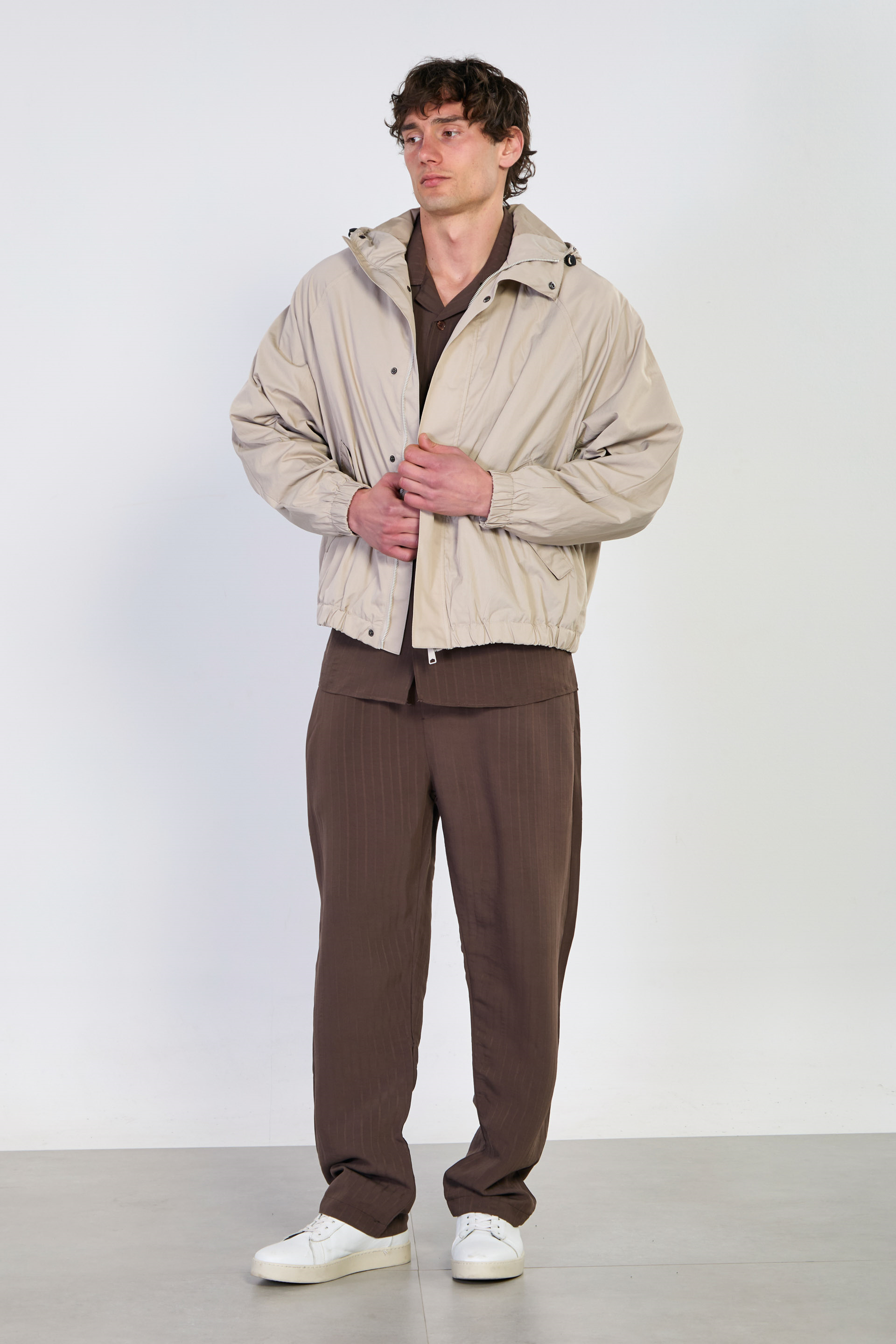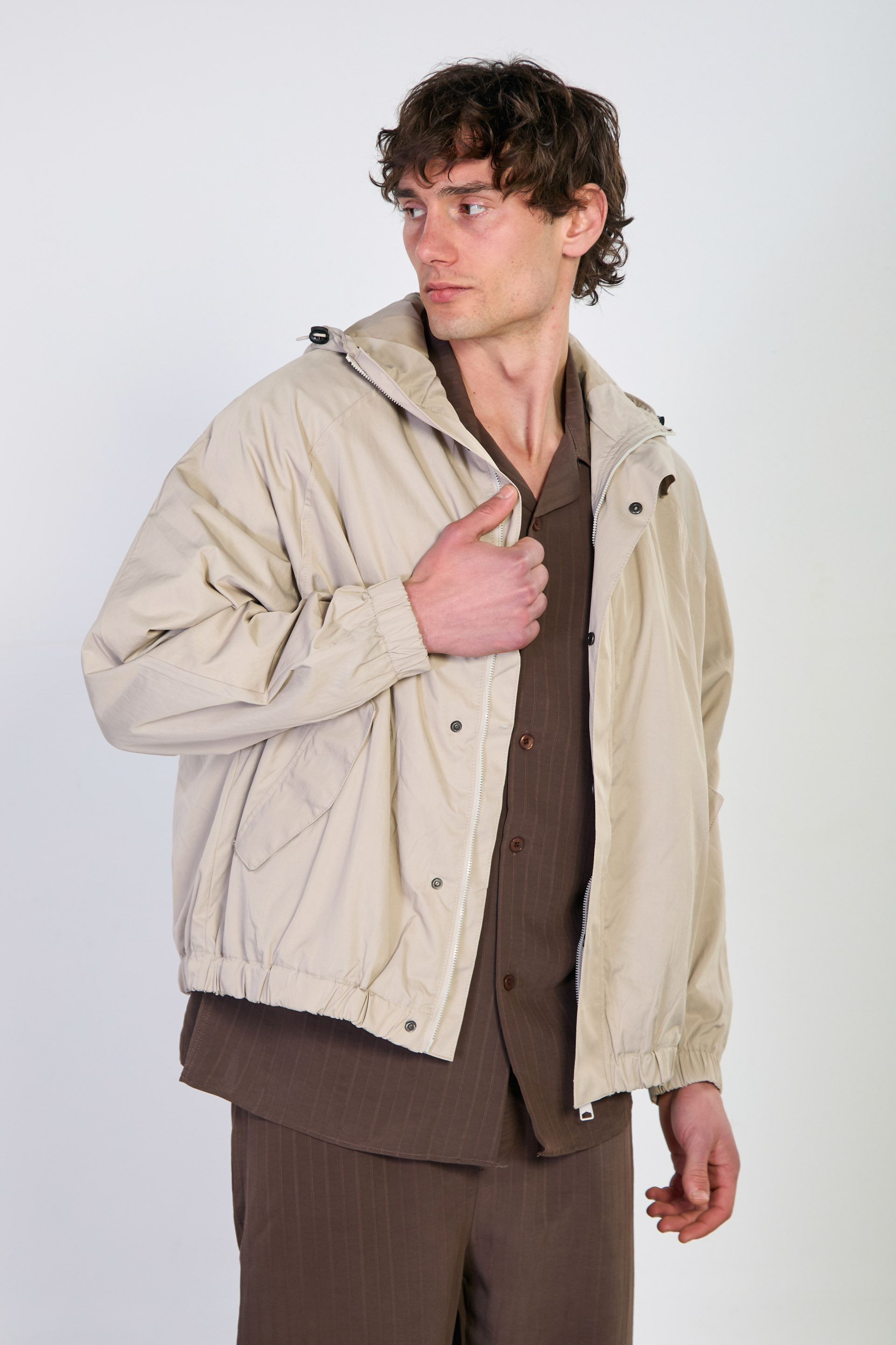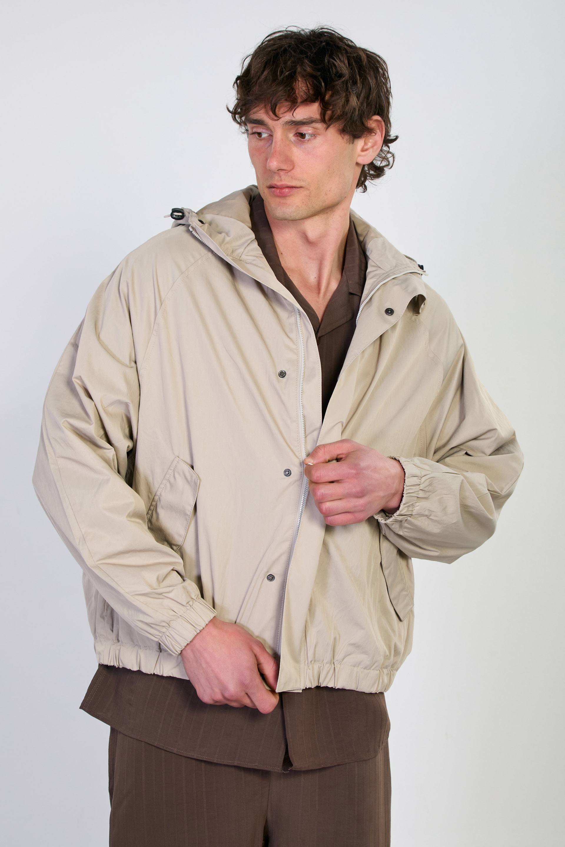Erkek Kapüşonlu Çıtçıtlı Yağmurluk - Taş