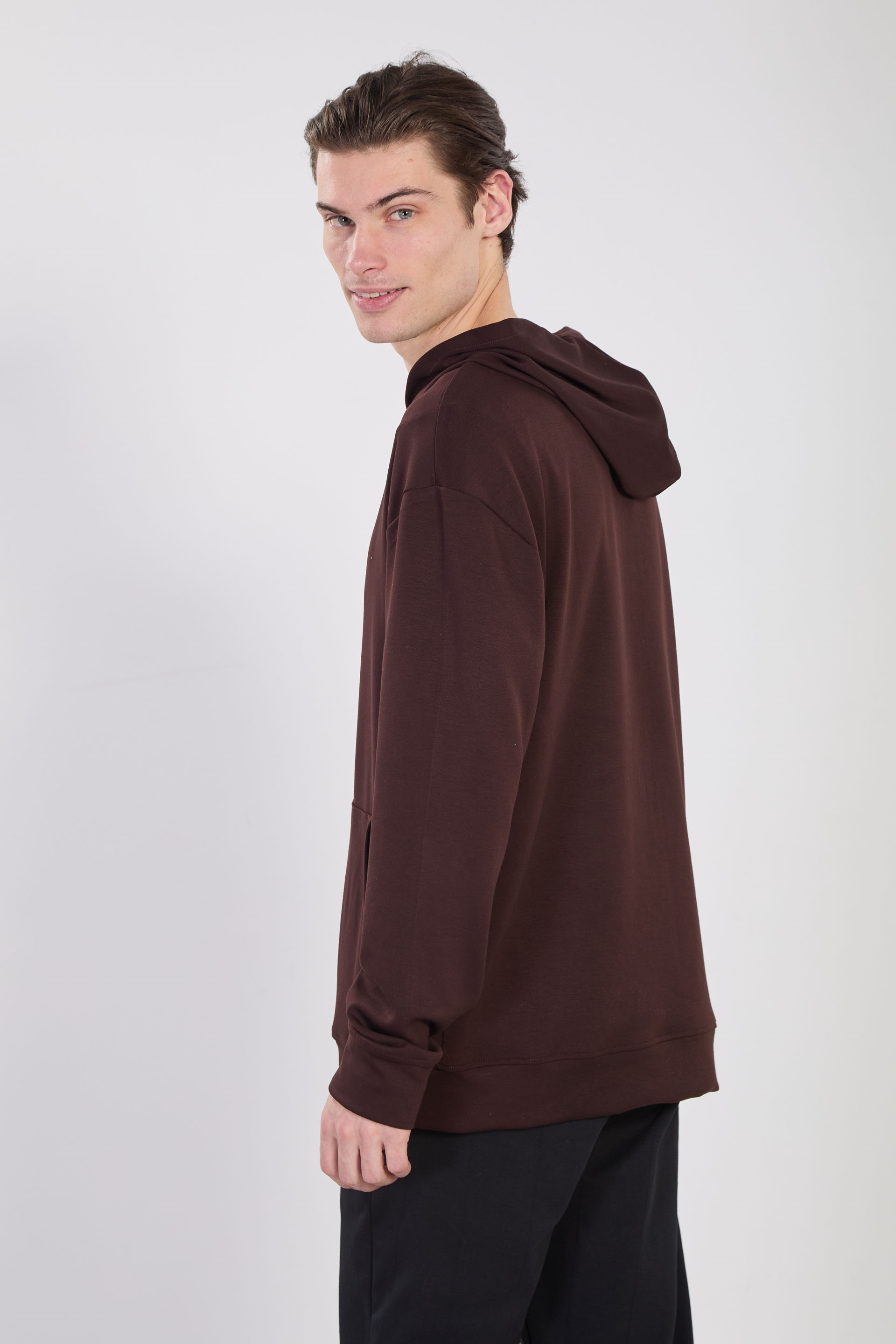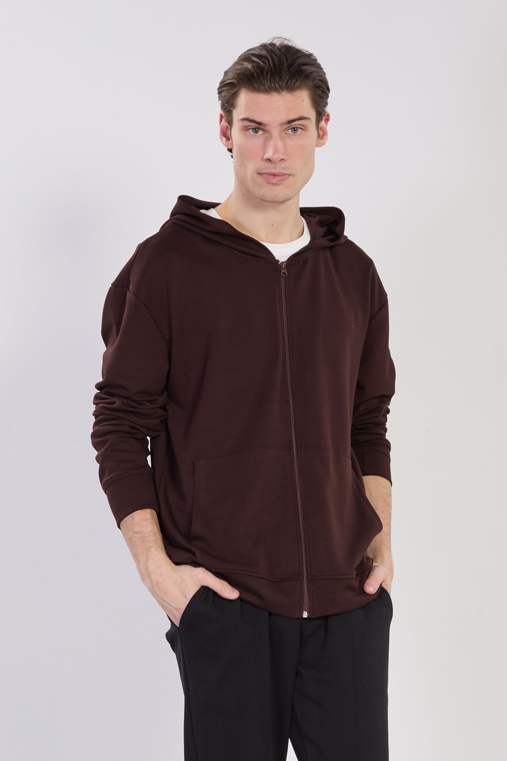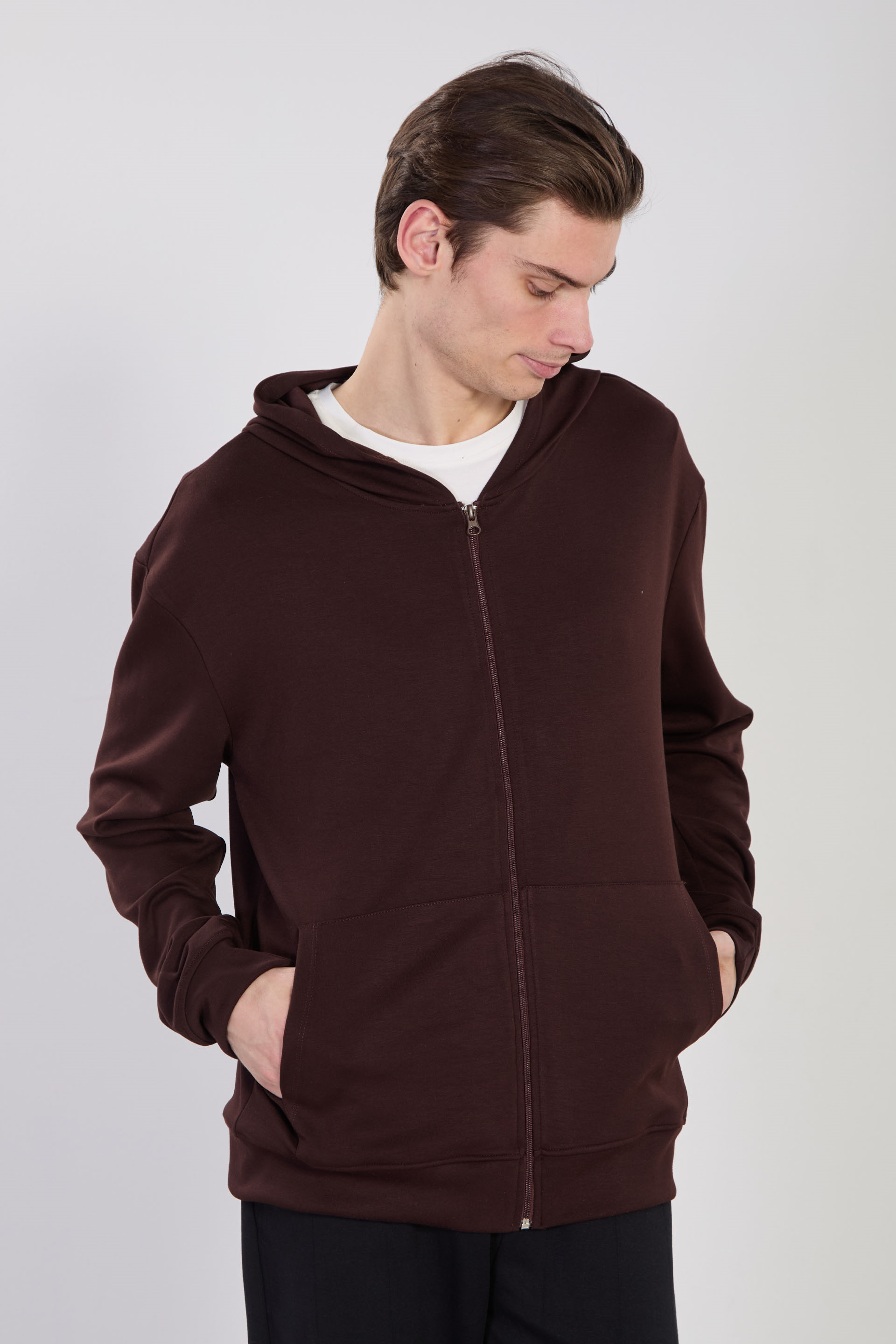 Erkek Kapüşonlu Fermuarlı Sweatshirt - Kahve