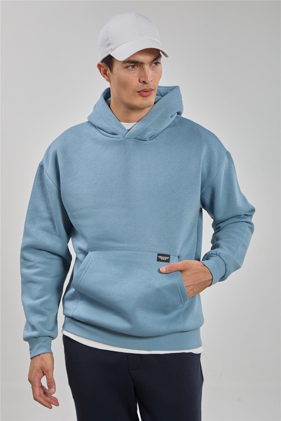 Kapüşonlu Kanguru Cepli Erkek Sweatshirt - S.Blue