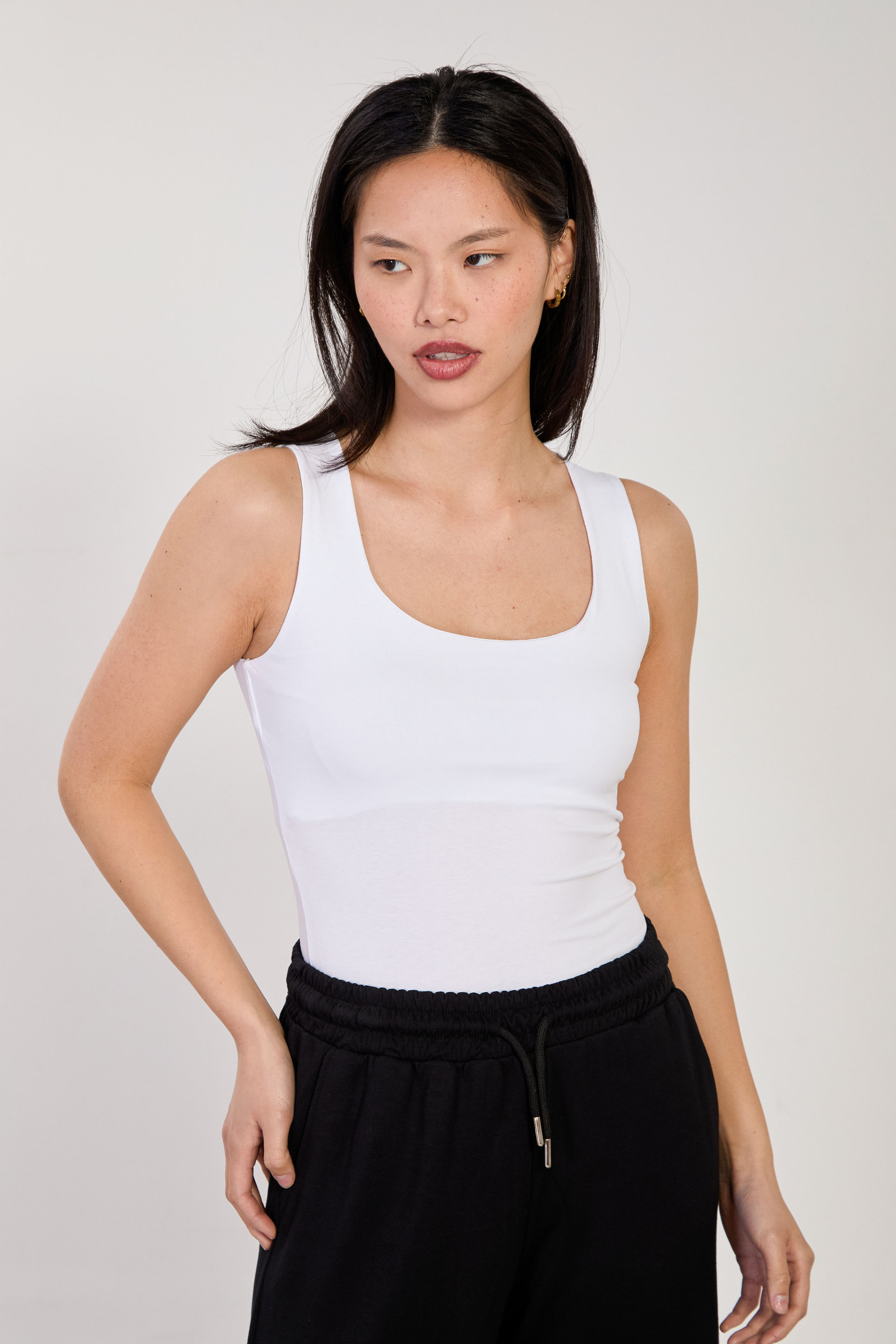 Kadın Kare Yaka Kalın Askılı Atlet - Beyaz