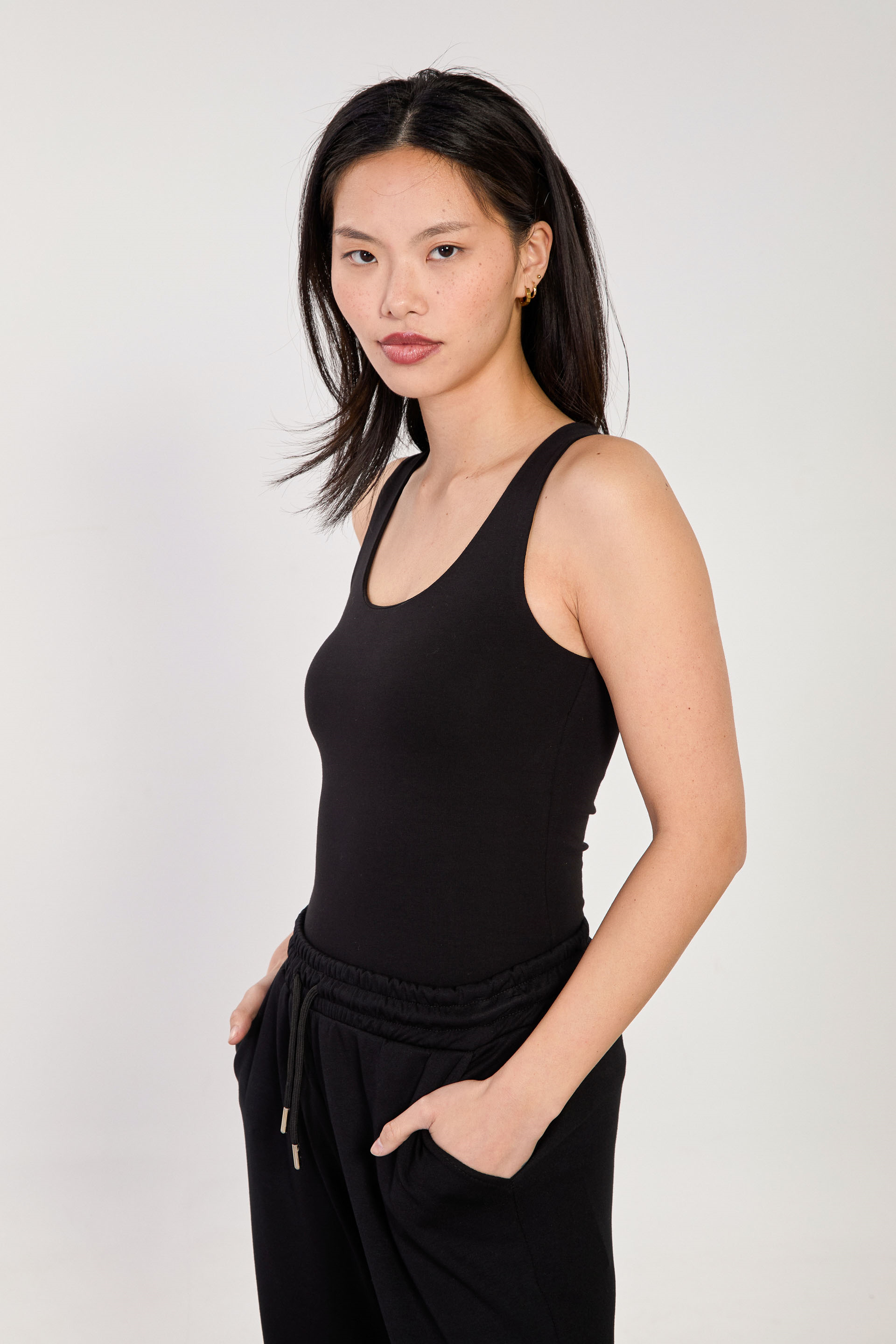 Kadın Kare Yaka Kalın Askılı Atlet - Siyah