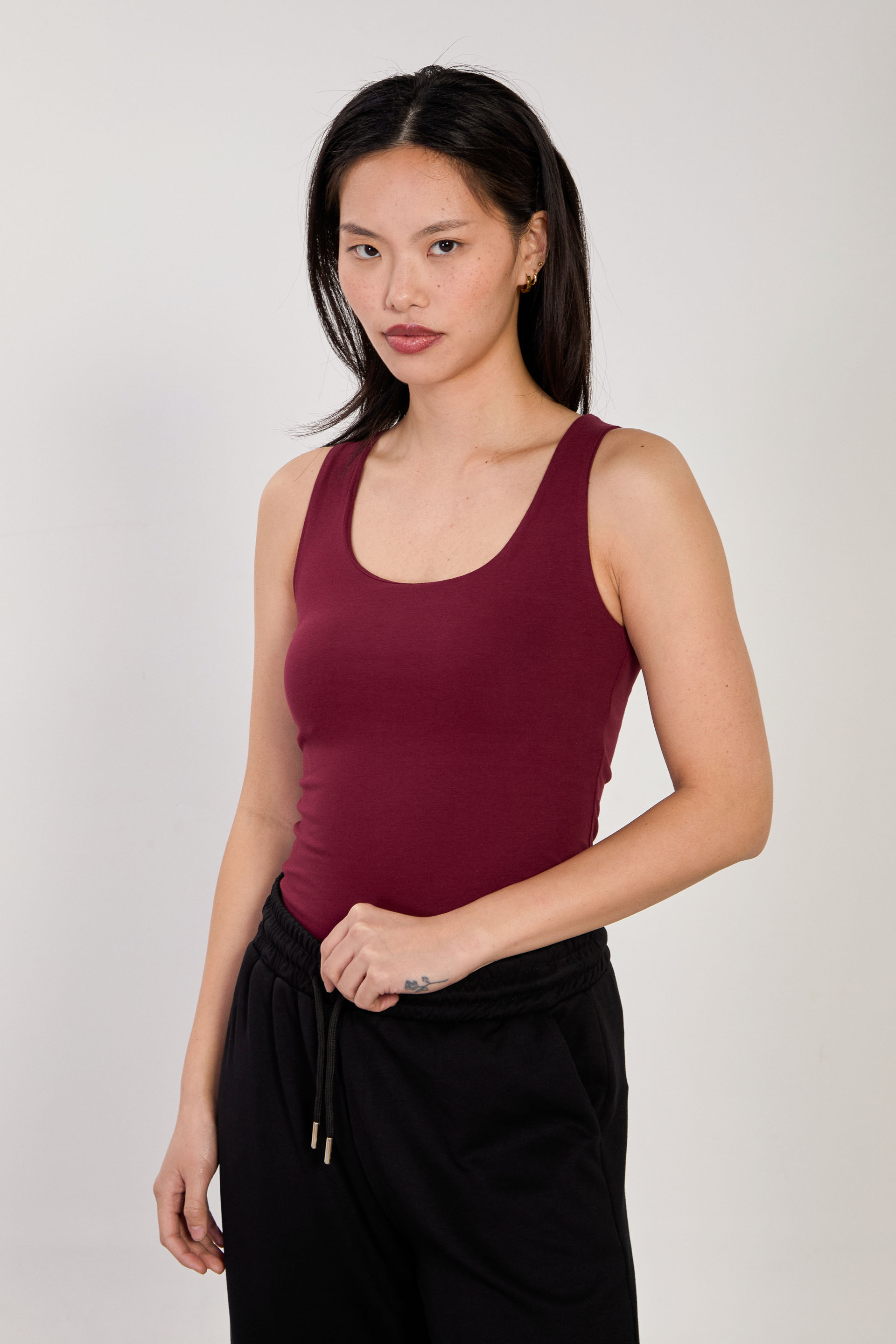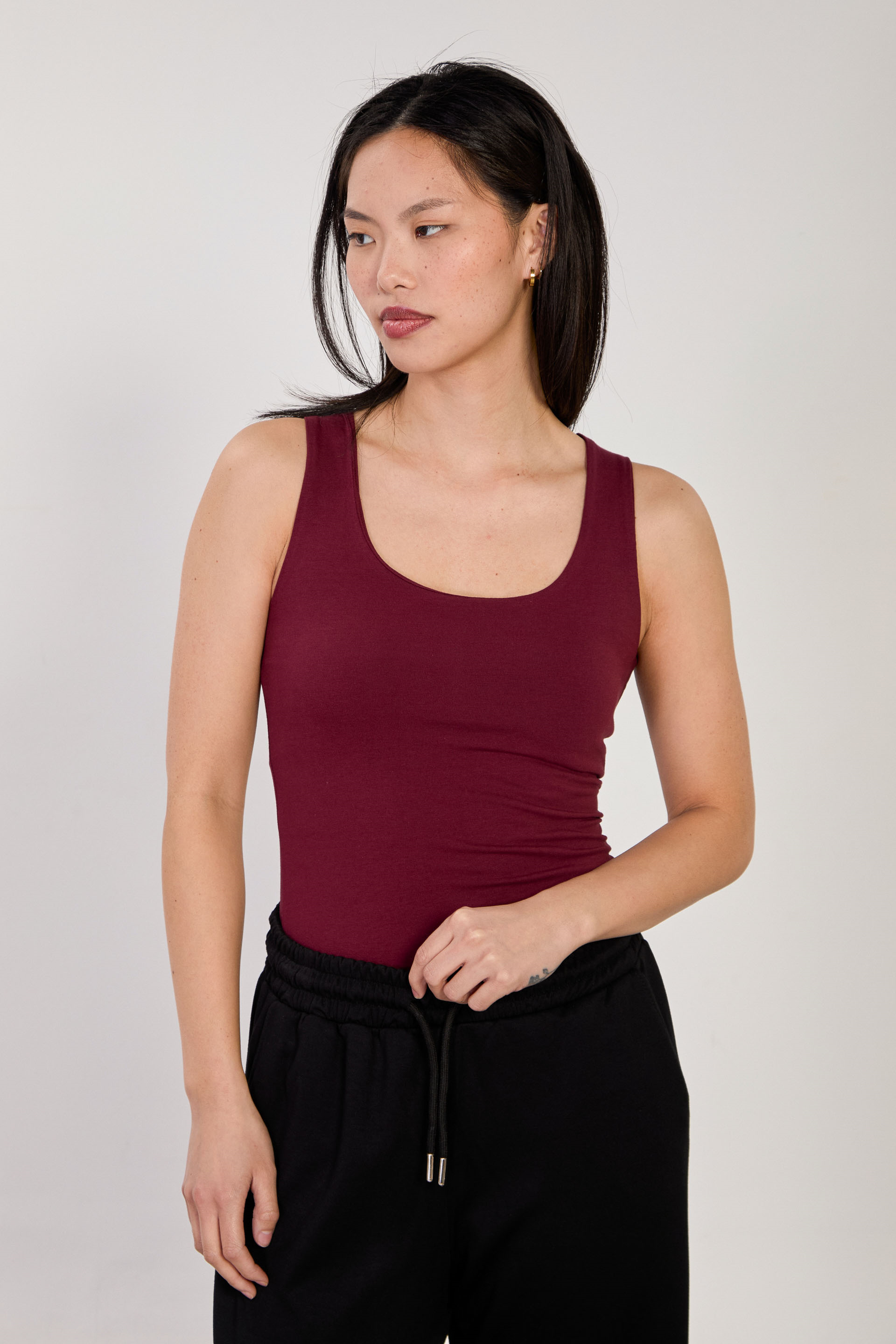 Kadın Kare Yaka Kalın Askılı Atlet - Vişne