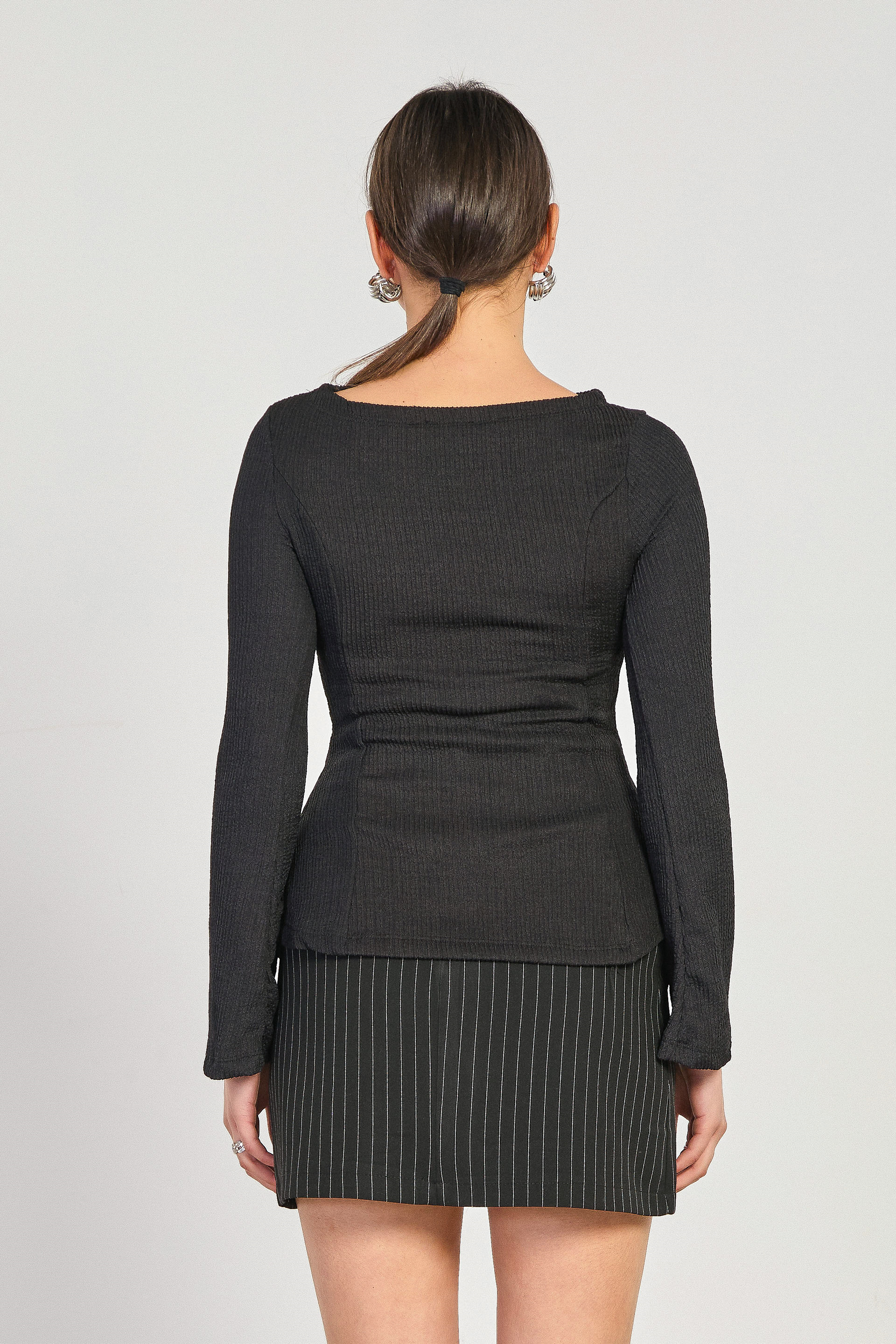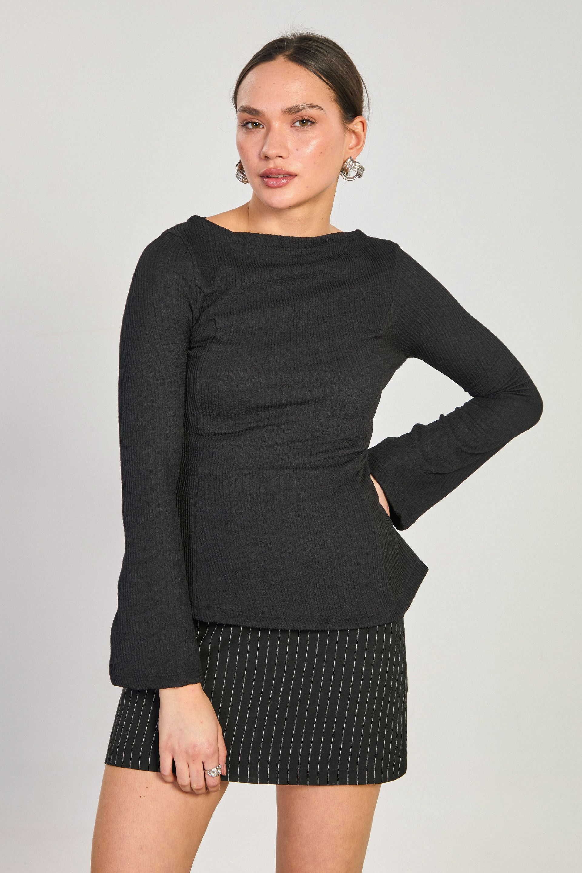 Kadın Kayık Yaka İspanyol Kol Bluz - Siyah