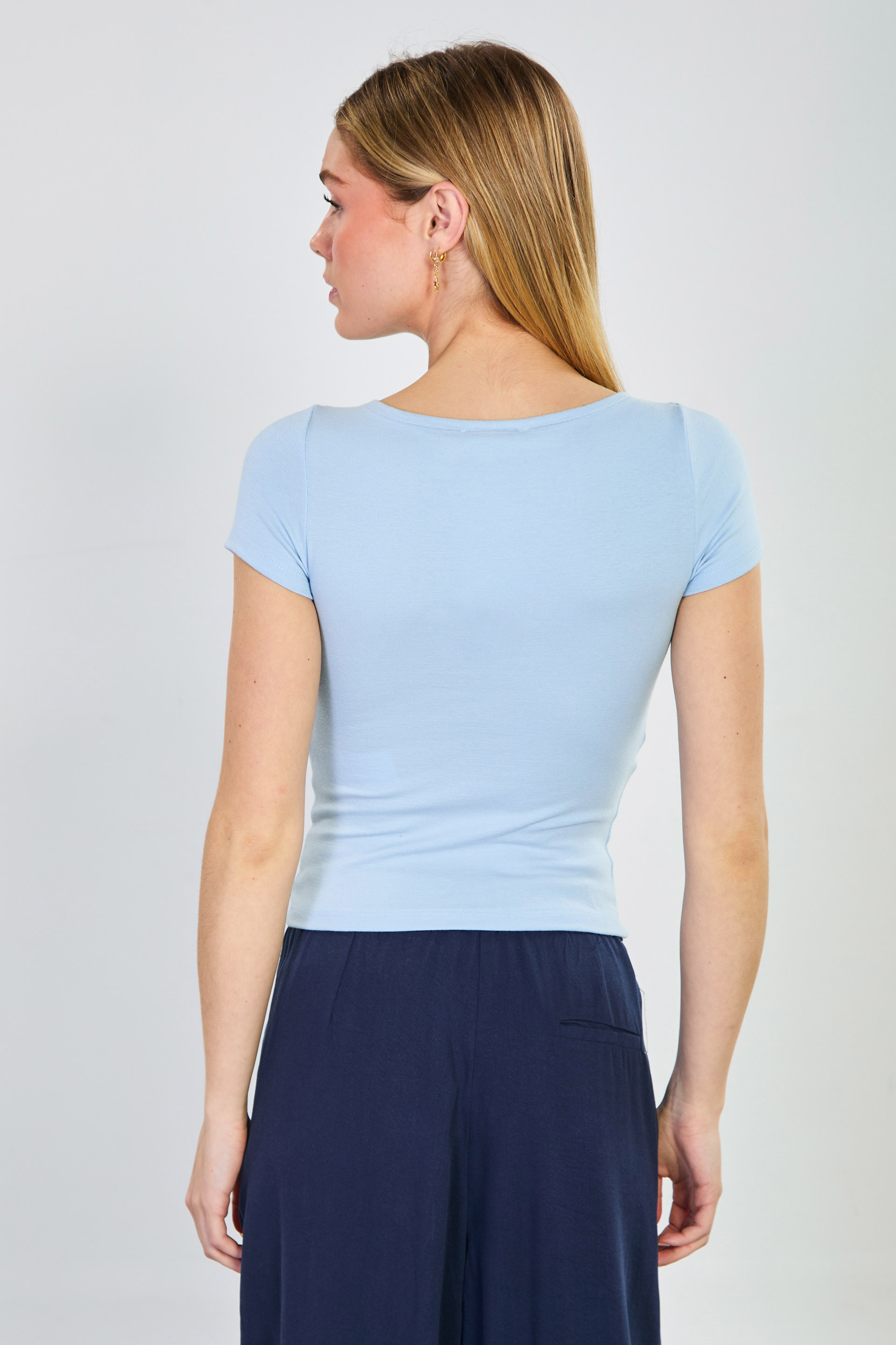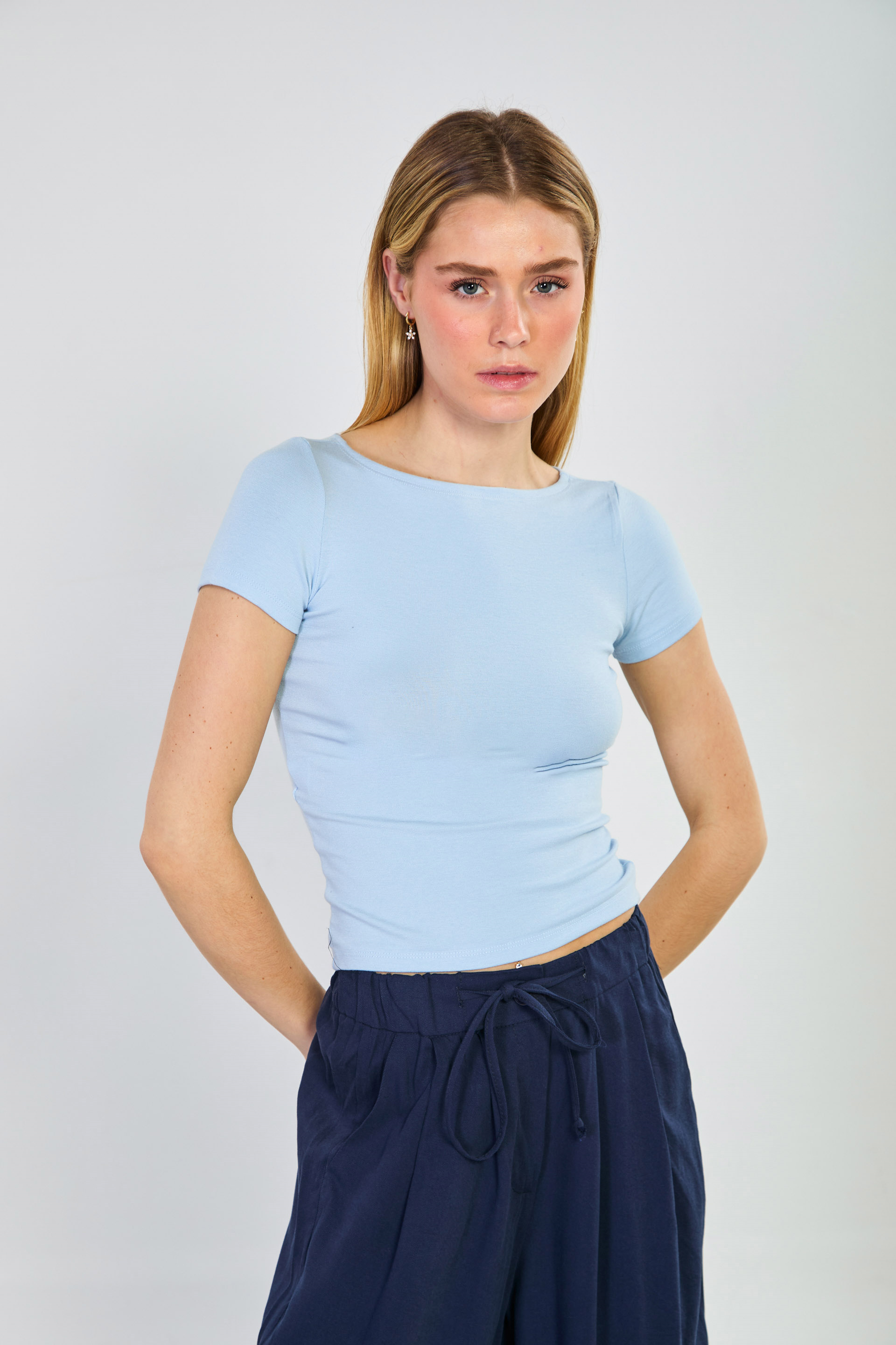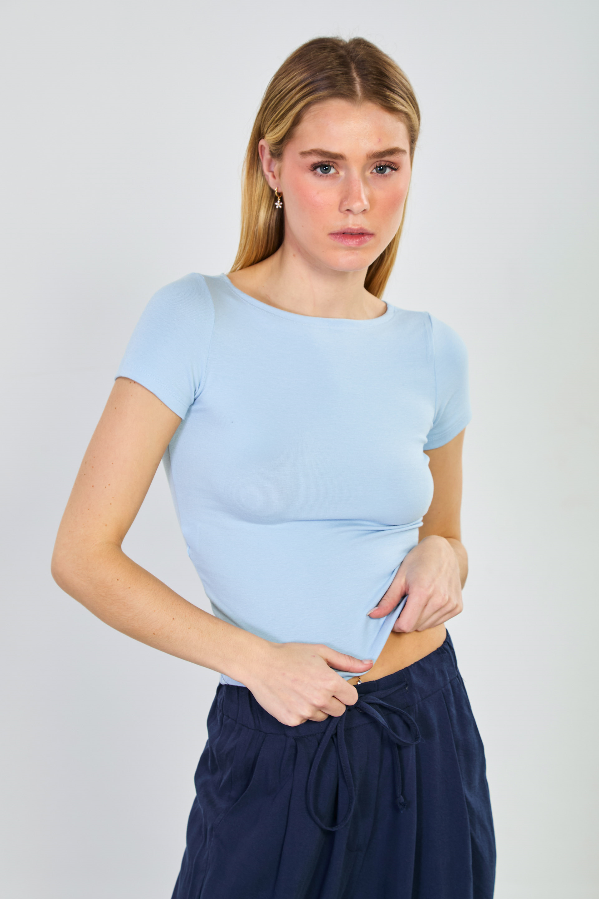 Kadın Kayık Yaka Kısa Kollu T-Shirt - Bebe Mavi