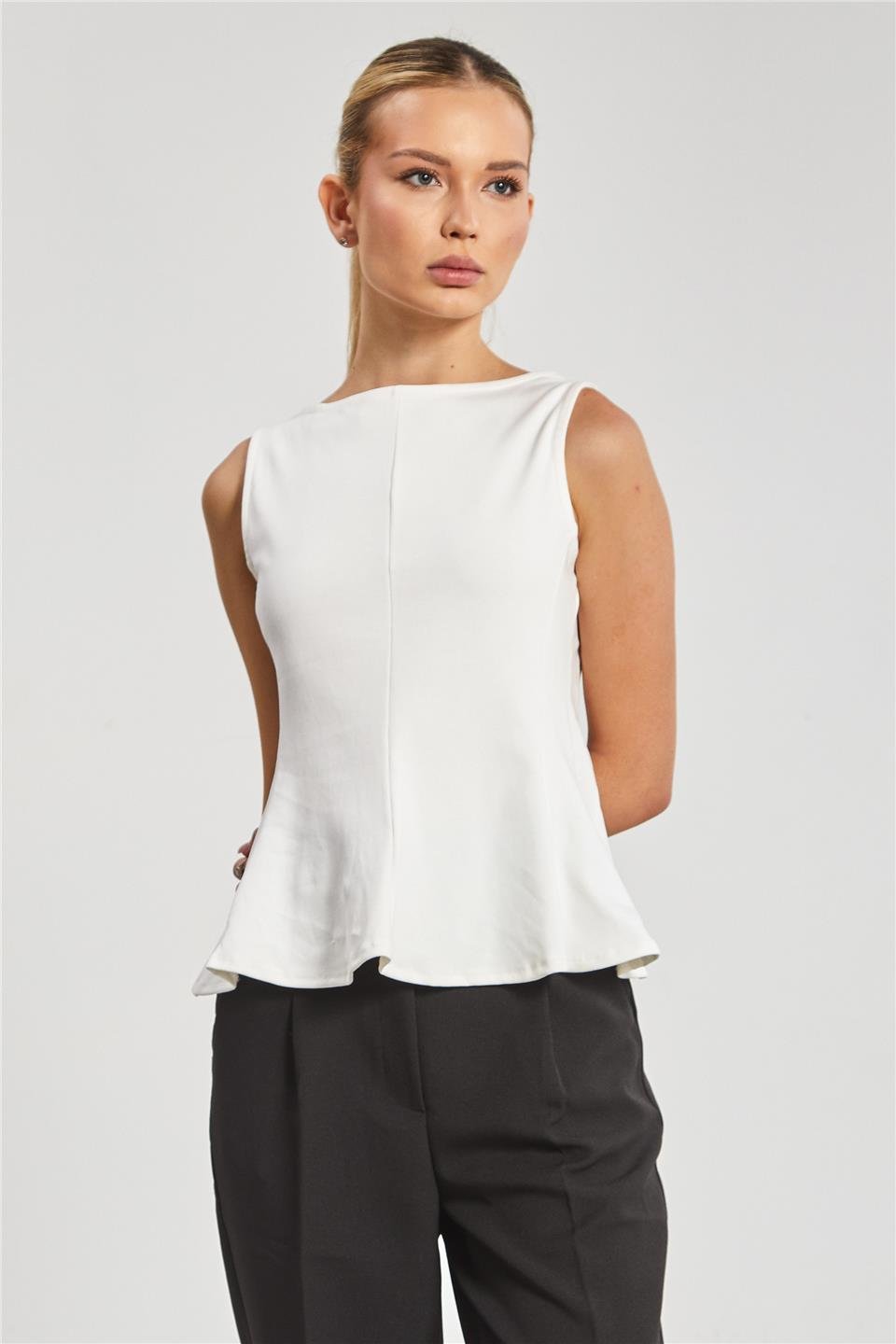 Kayık Yaka Kolsuz Kadın Body - Ekru