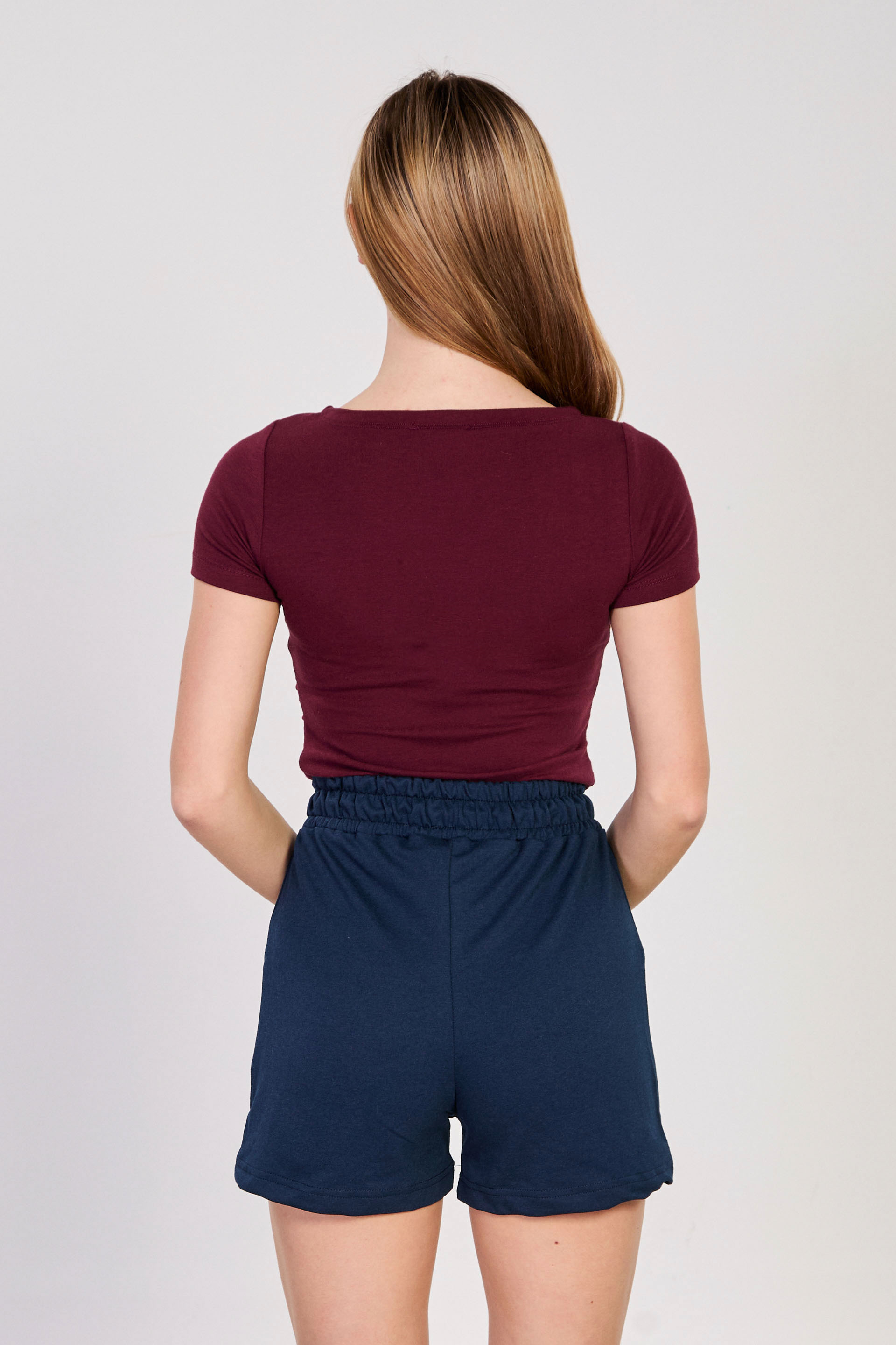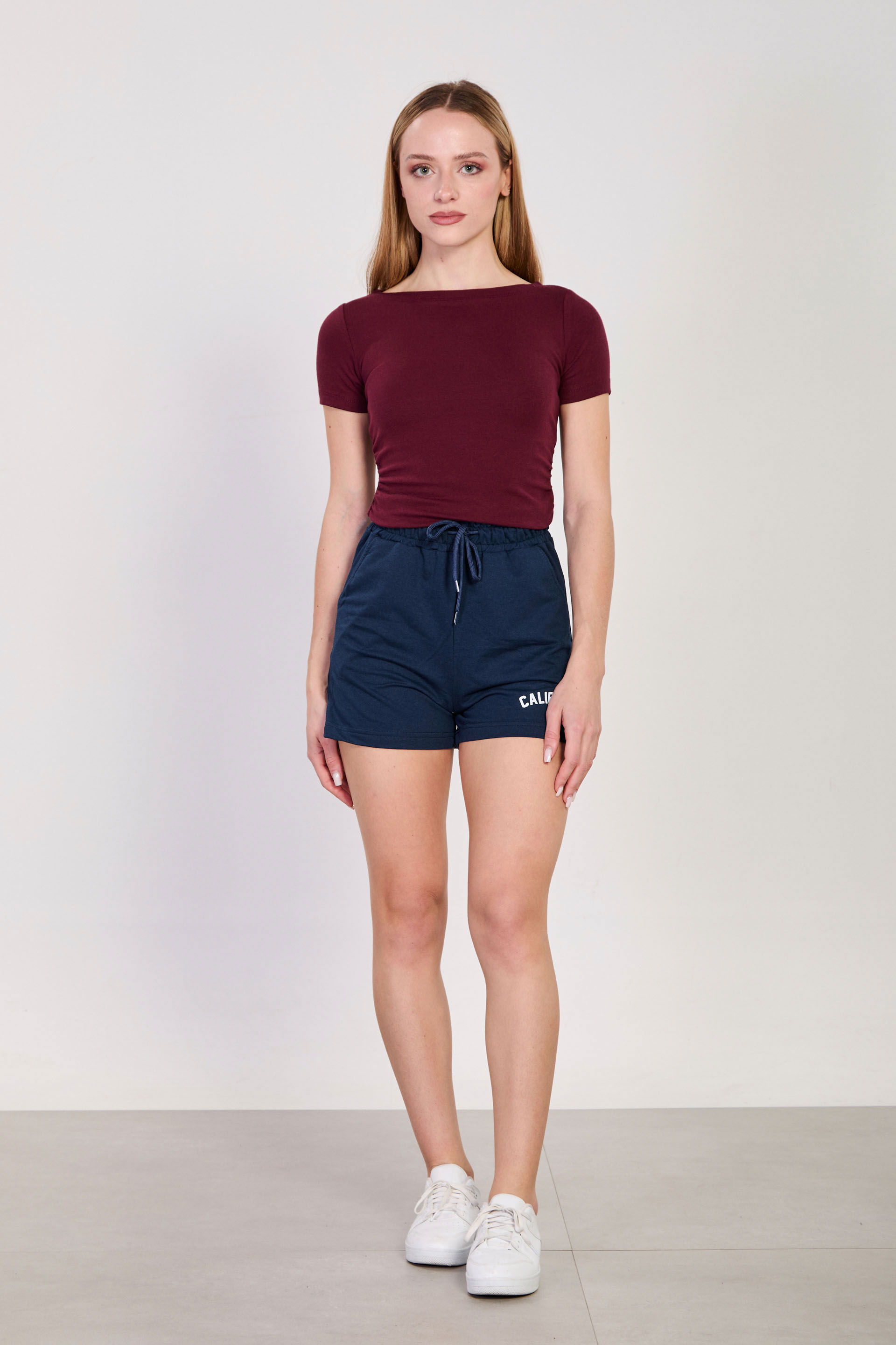 Kadın Kayık Yaka Yanı Büzgülü Kısa Kol Body - Bordo