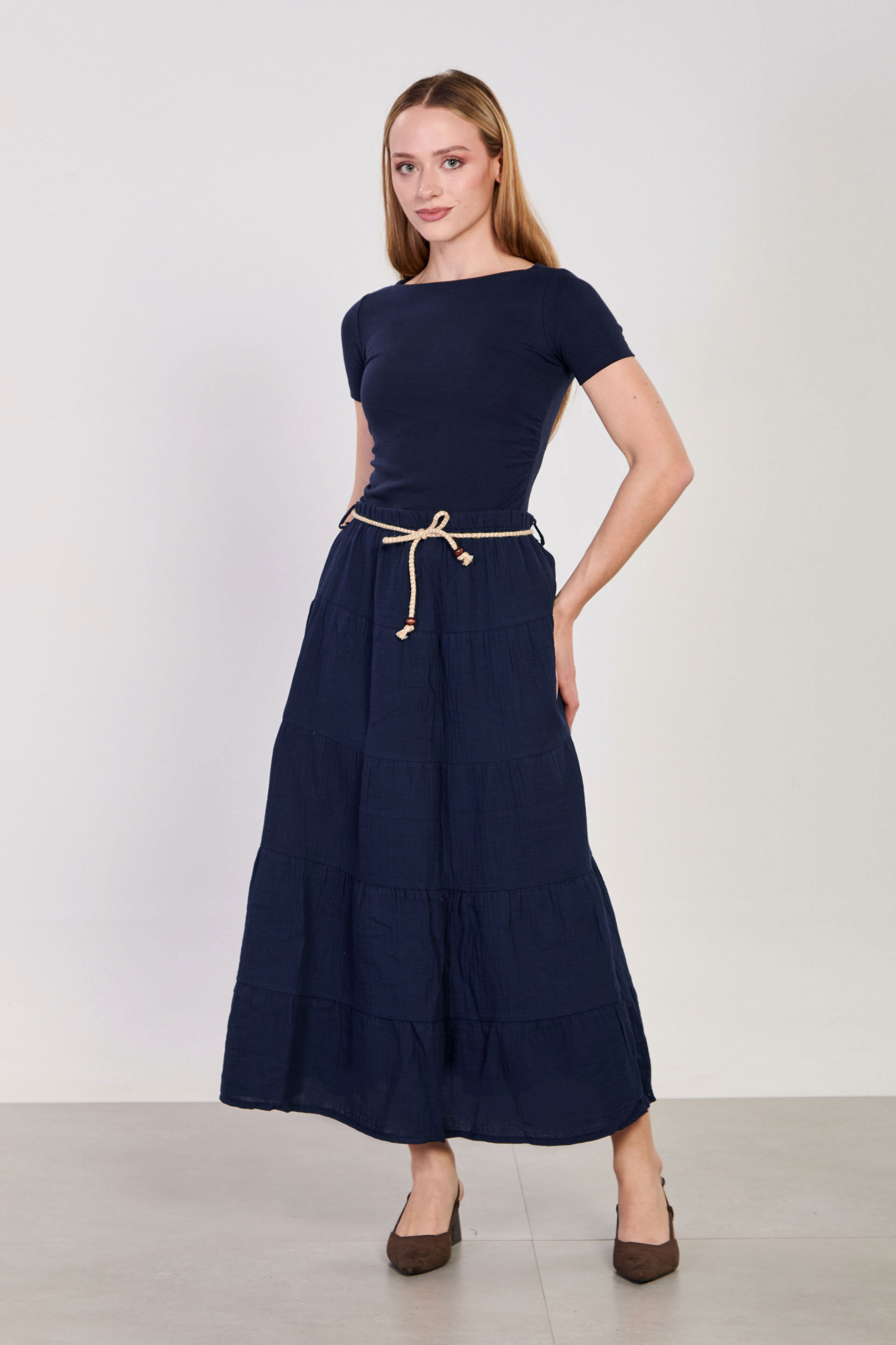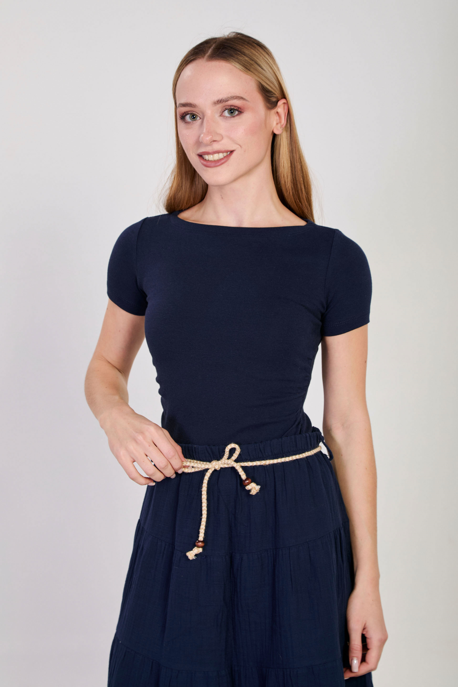 Kadın Kayık Yaka Yanı Büzgülü Kısa Kol Body - Lacivert