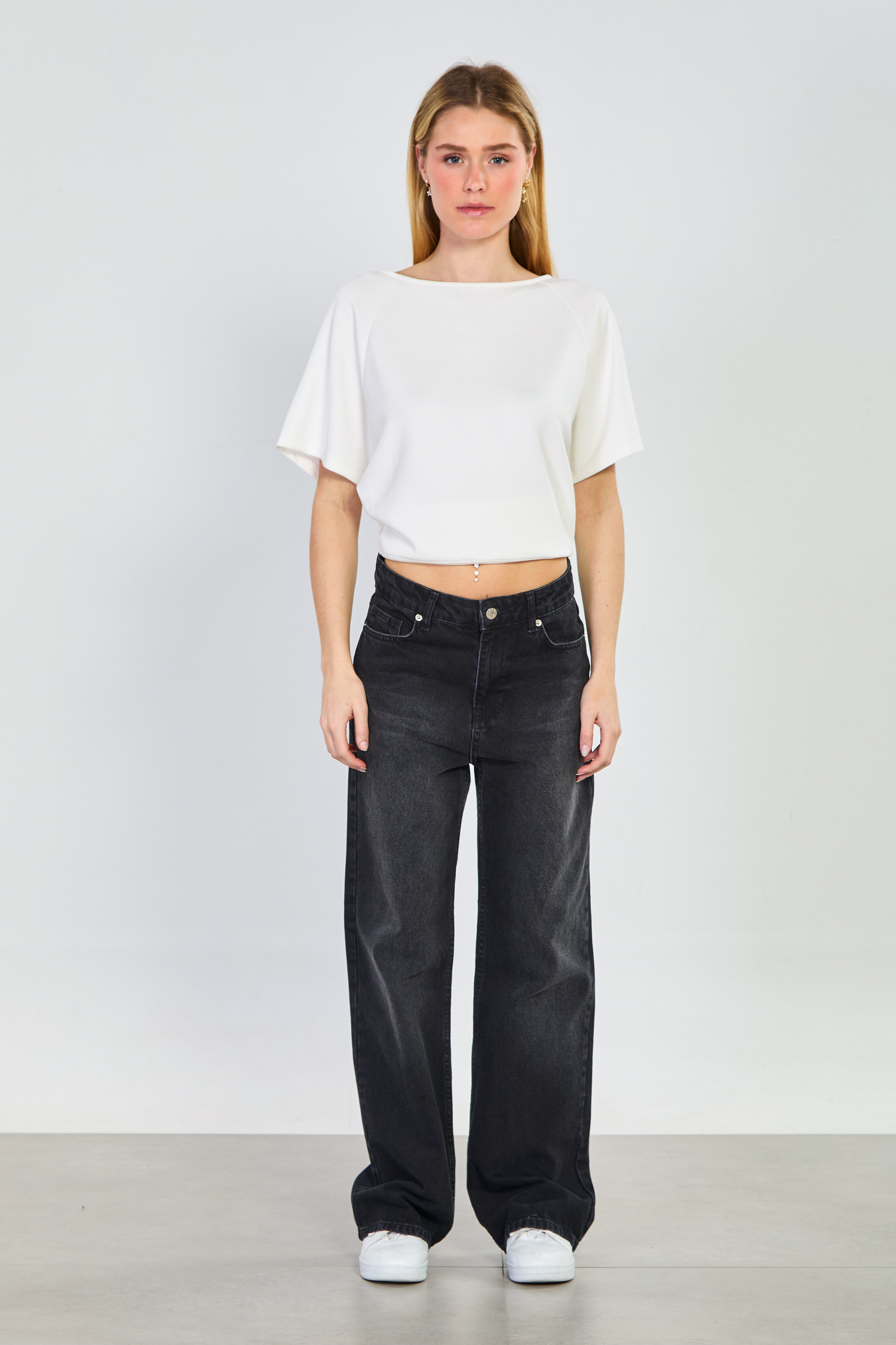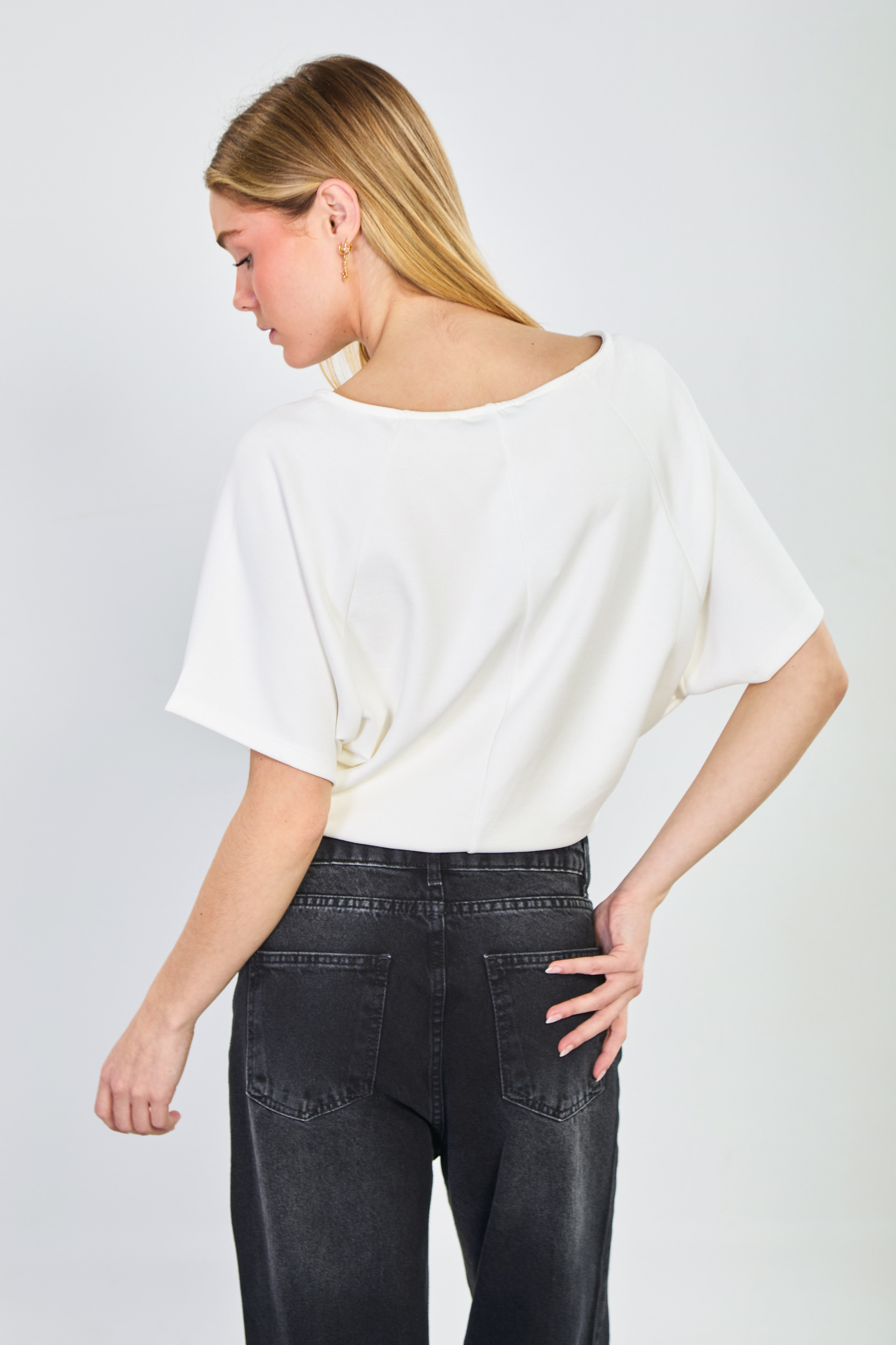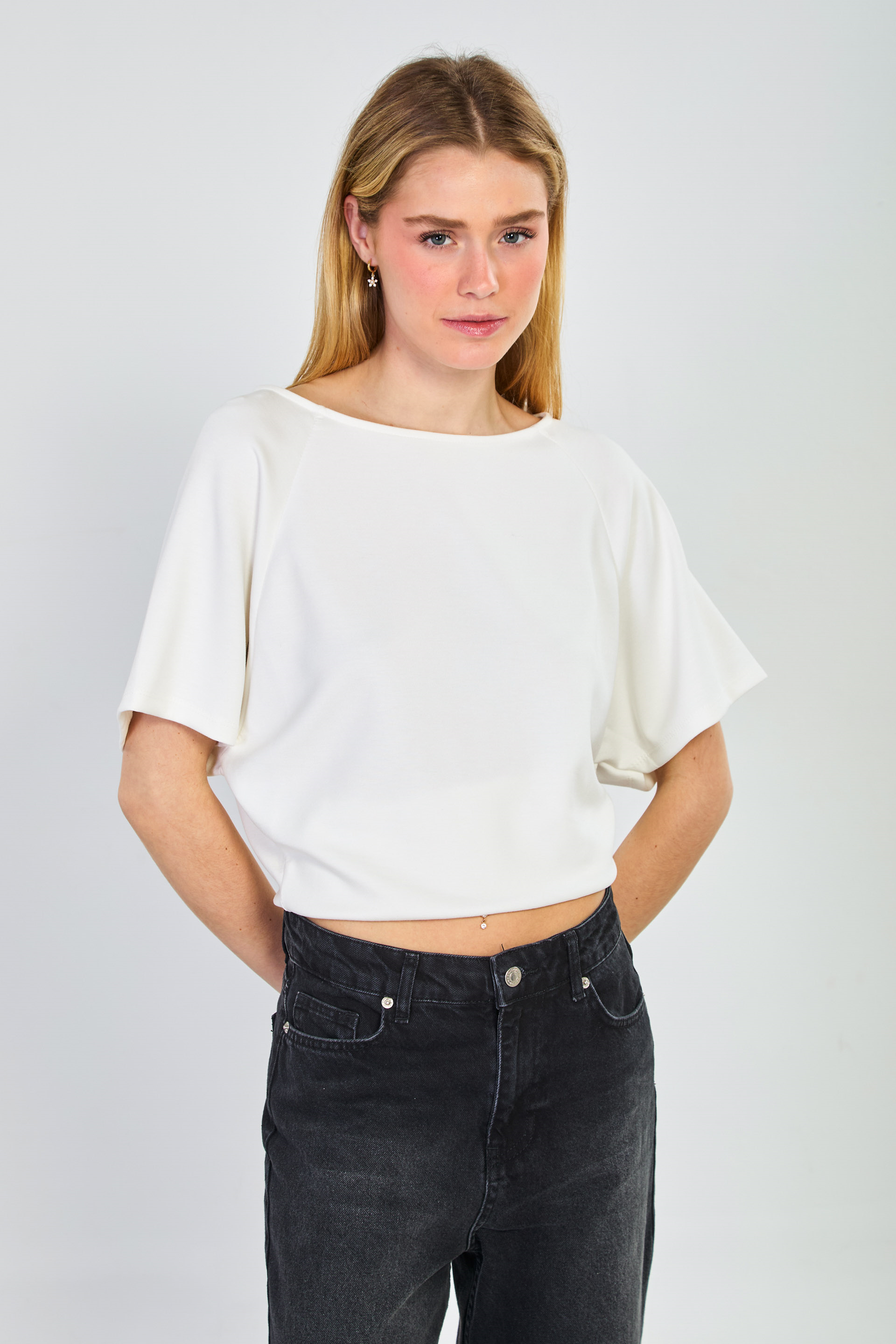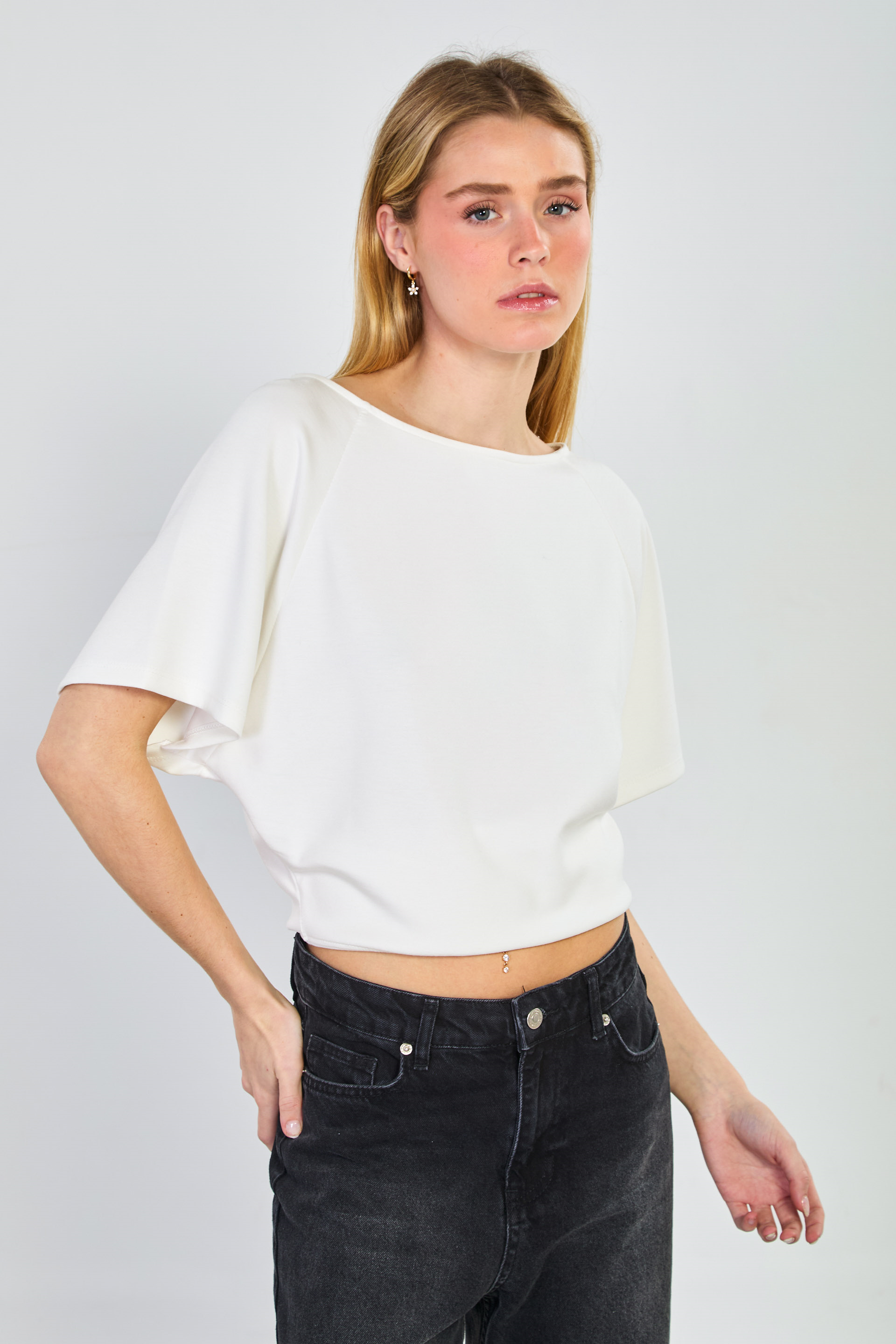 Kadın Kayık Yaka Yarasa Kol T-Shirt - Ekru