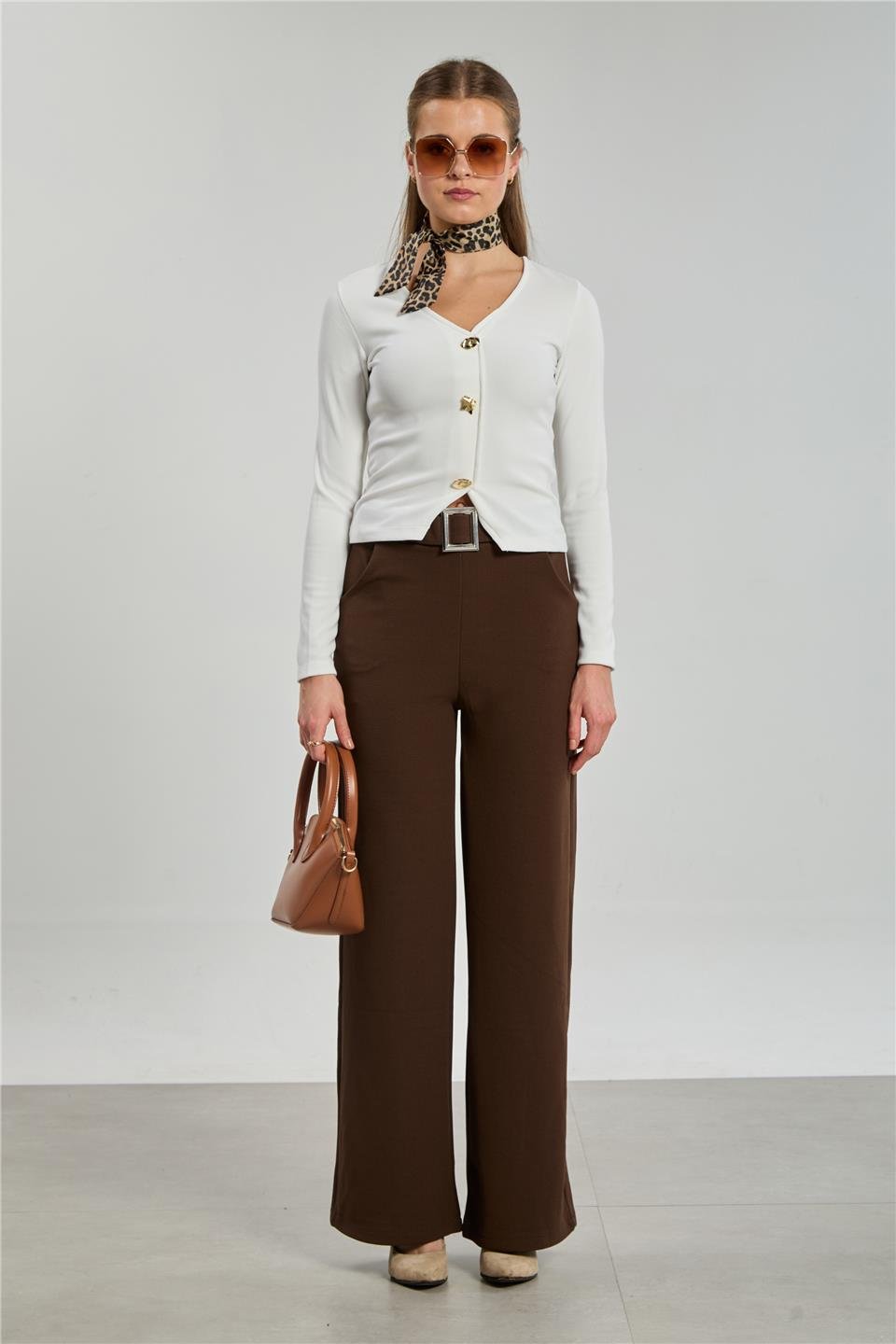 Kadın Kemer Detaylı Bol Pantolon - Kahve