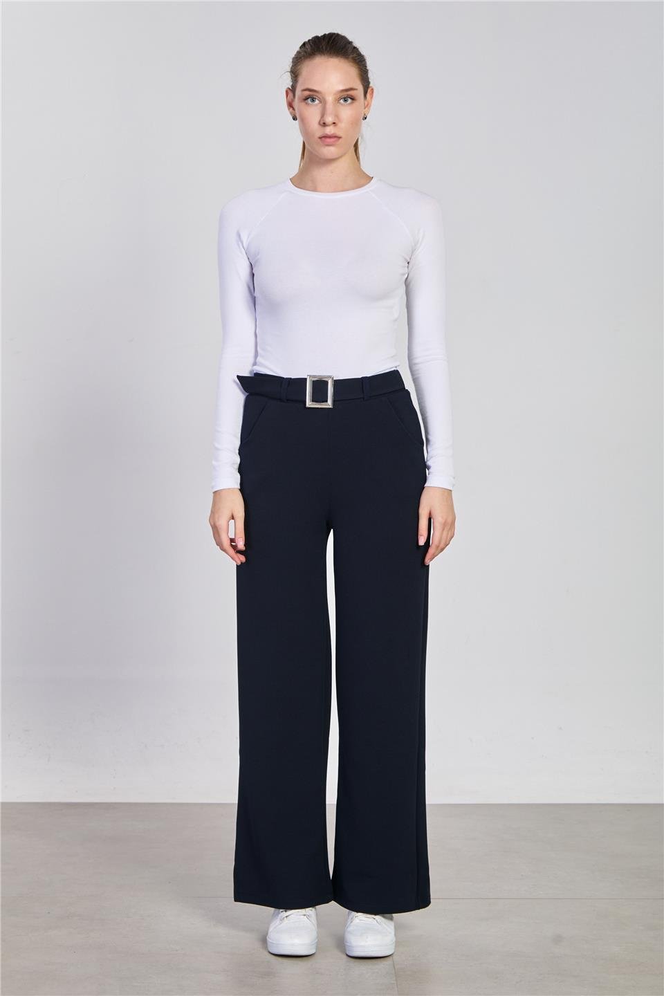 Kadın Kemer Detaylı Bol Pantolon - Lacivert
