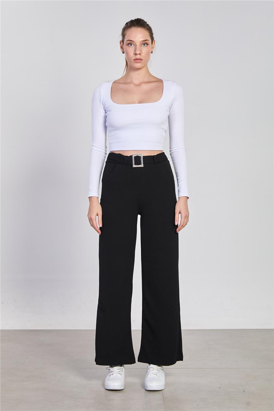 Kadın Kemer Detaylı Bol Pantolon - Kahve