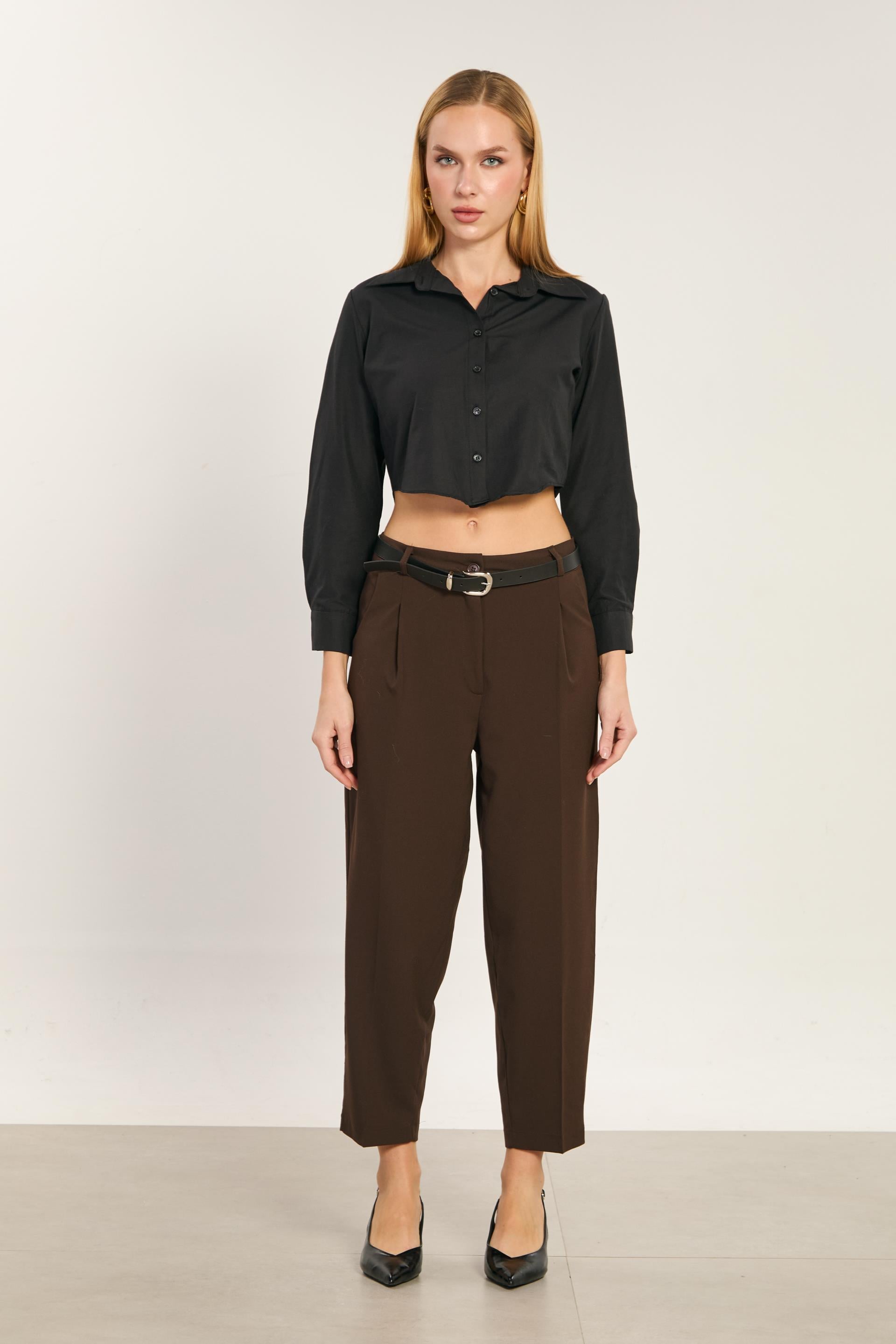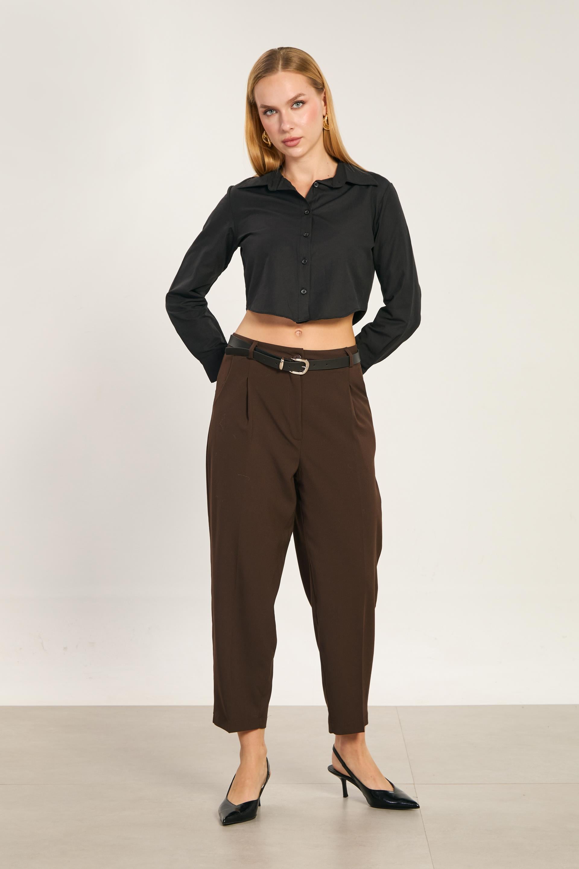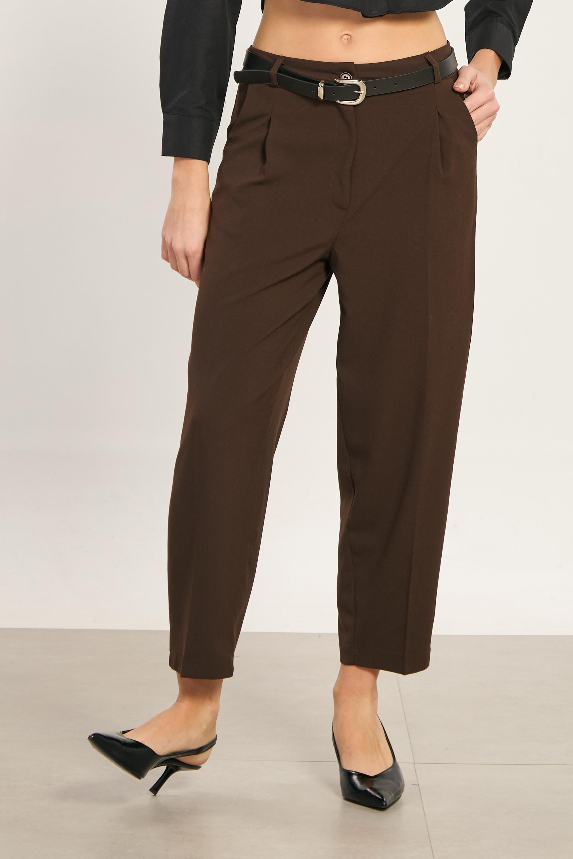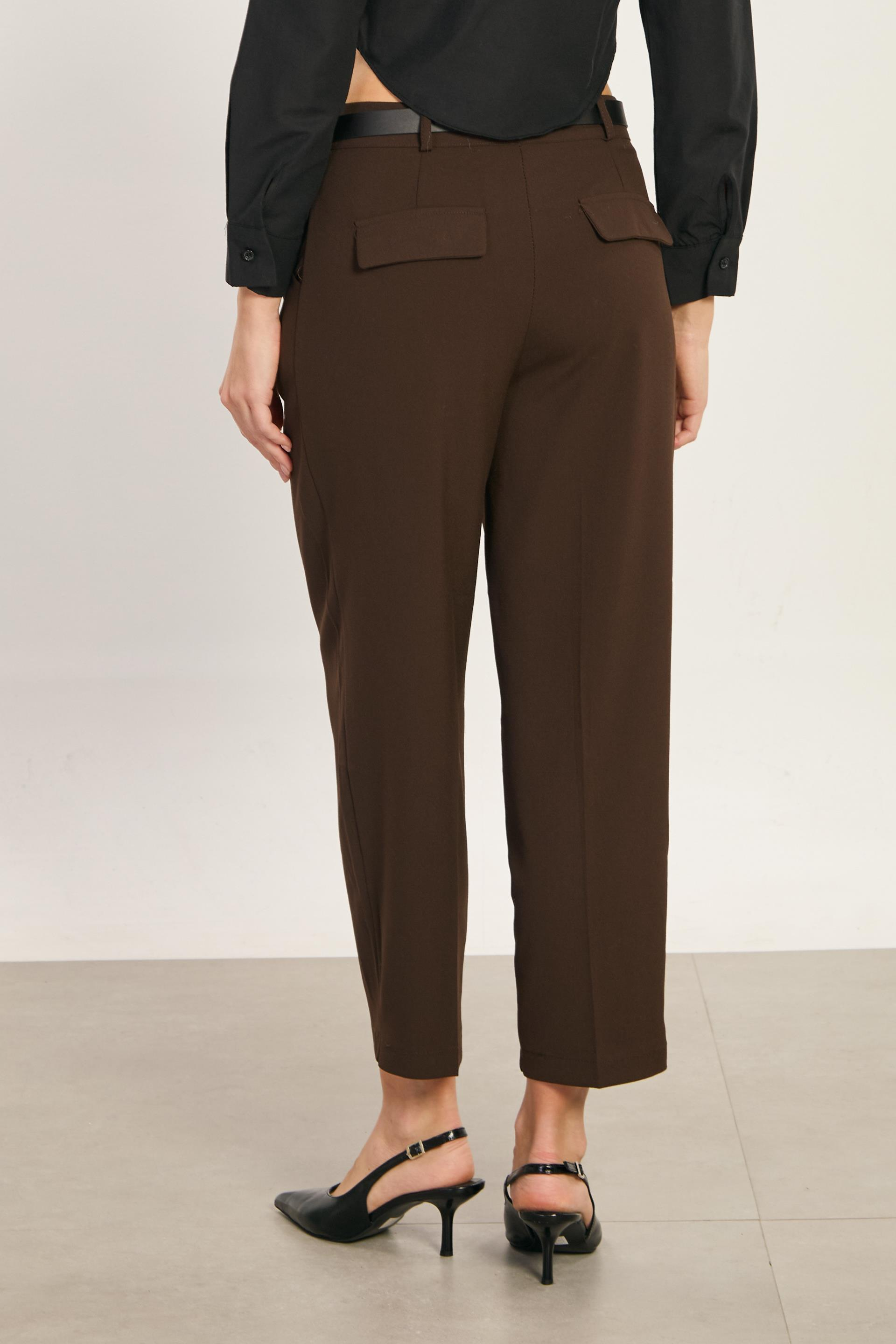 Kadın Kemerli Havuç Pantolon - Acı Kahve
