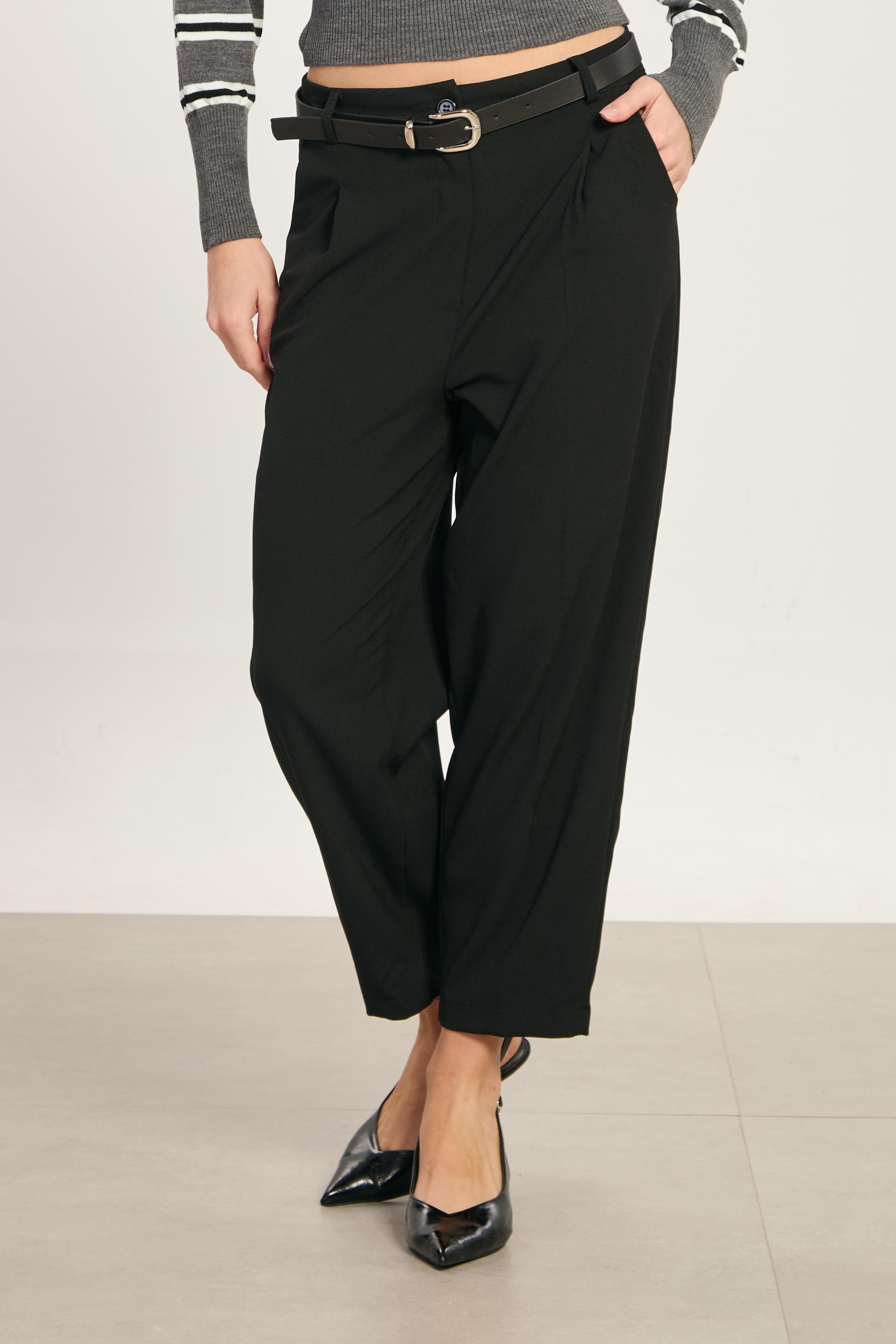 Kadın Kemerli Havuç Pantolon - Siyah