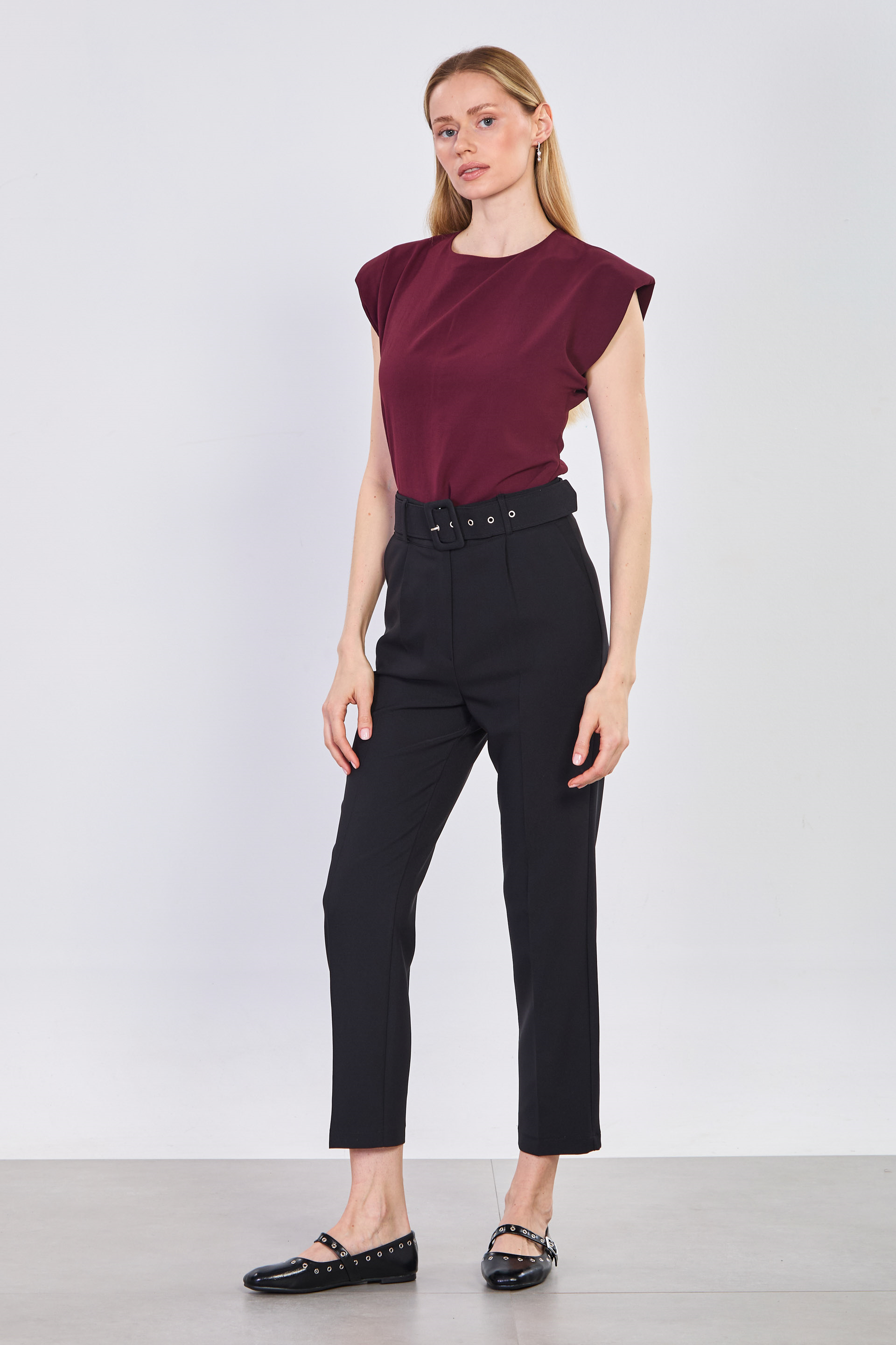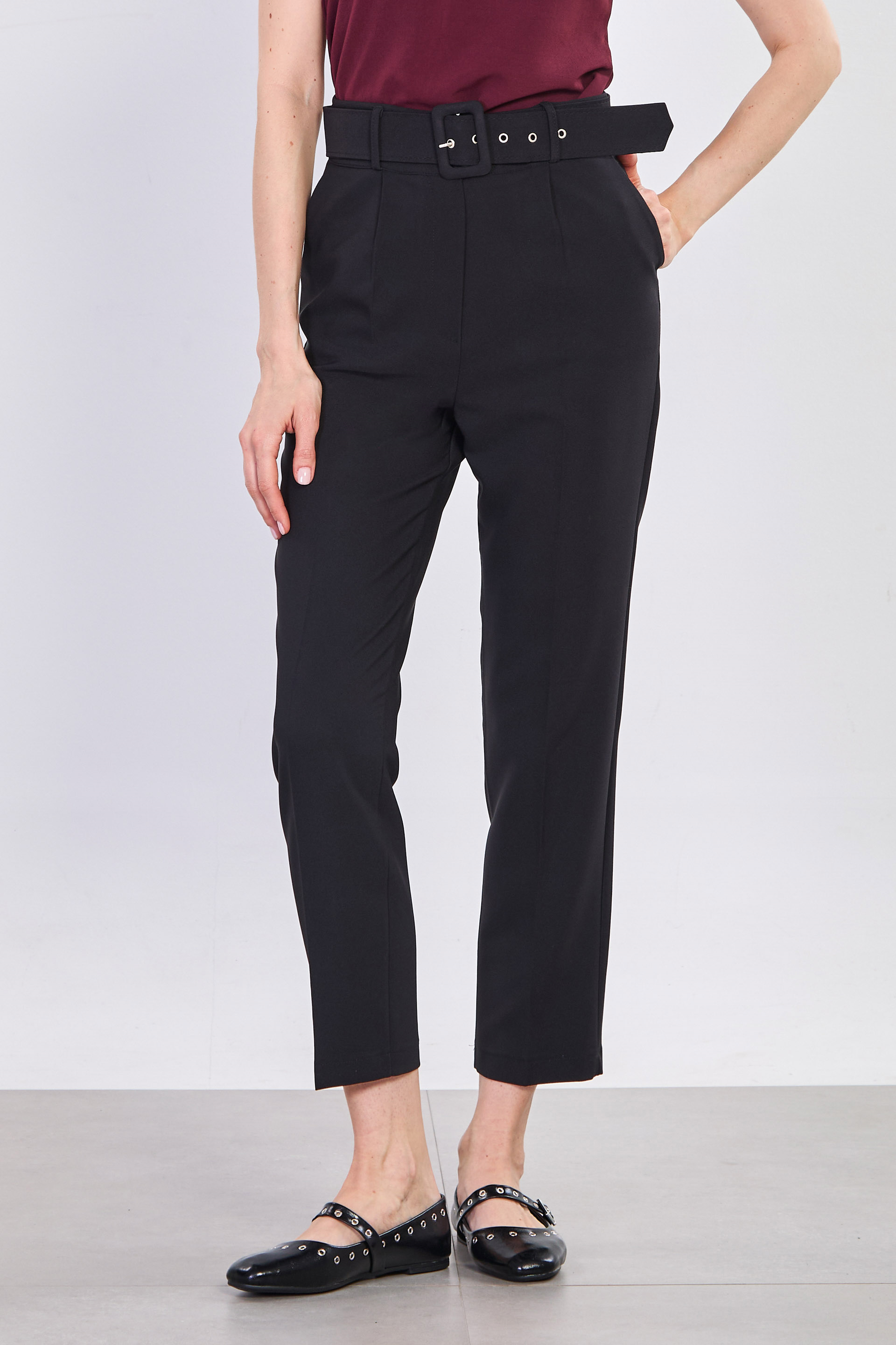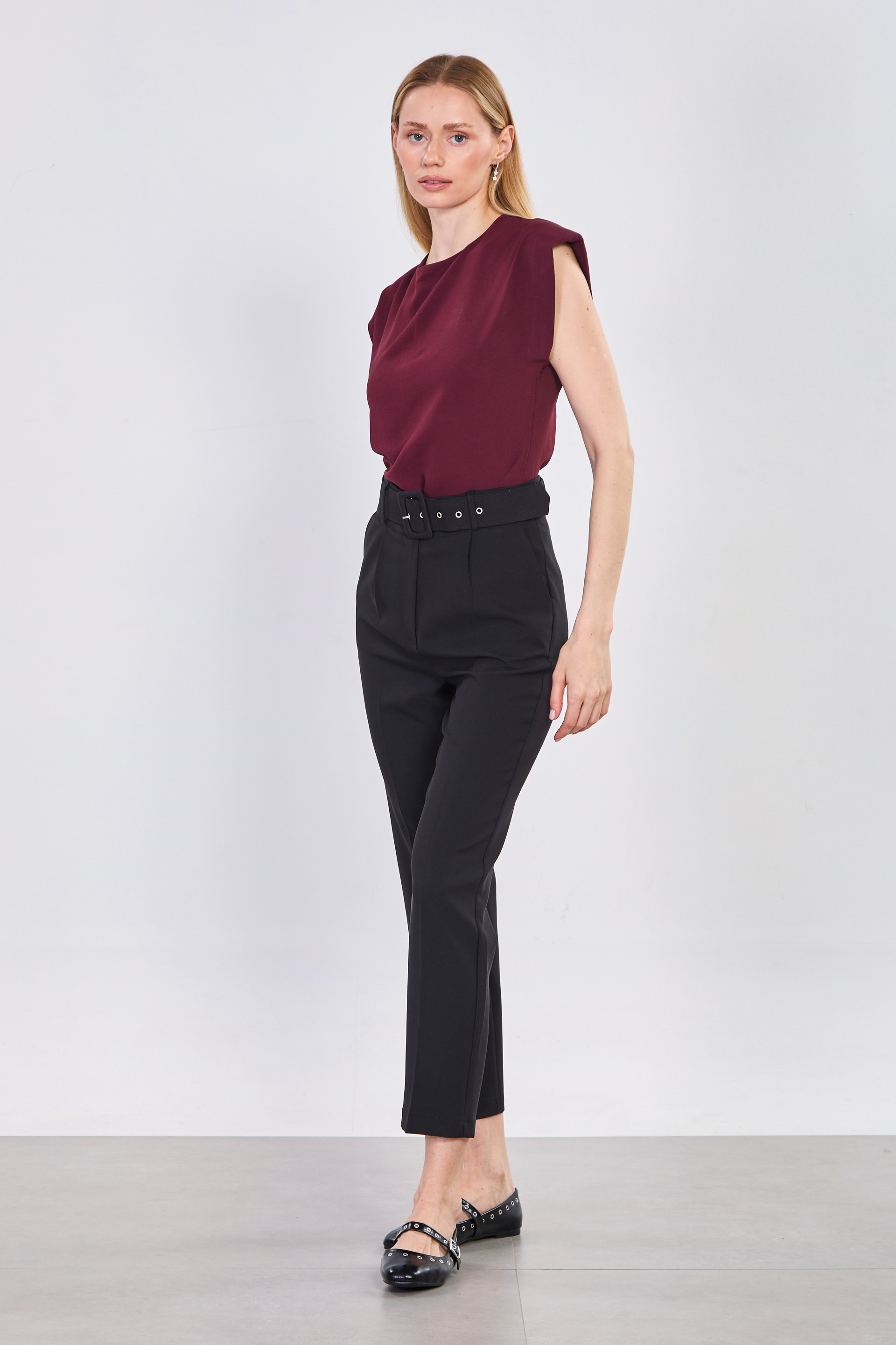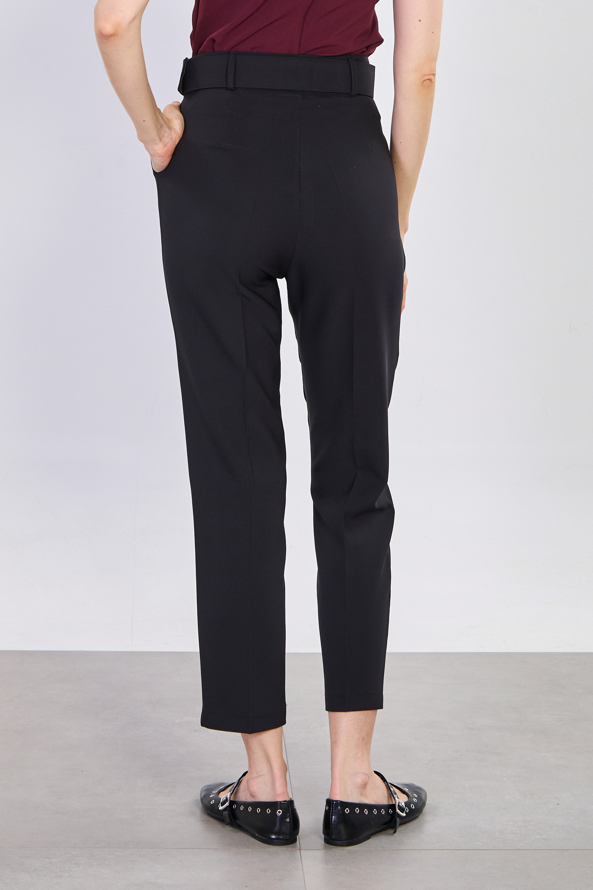 Kadın Kemerli Kumaş Pantolon - Siyah