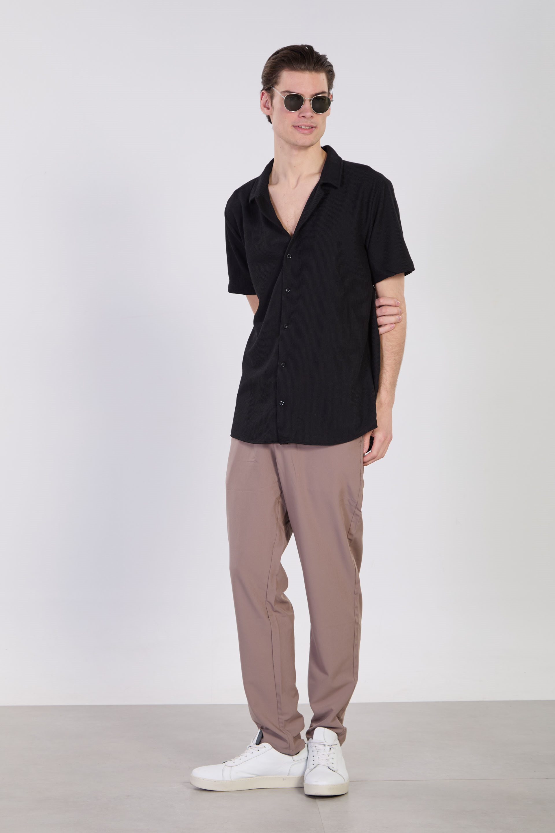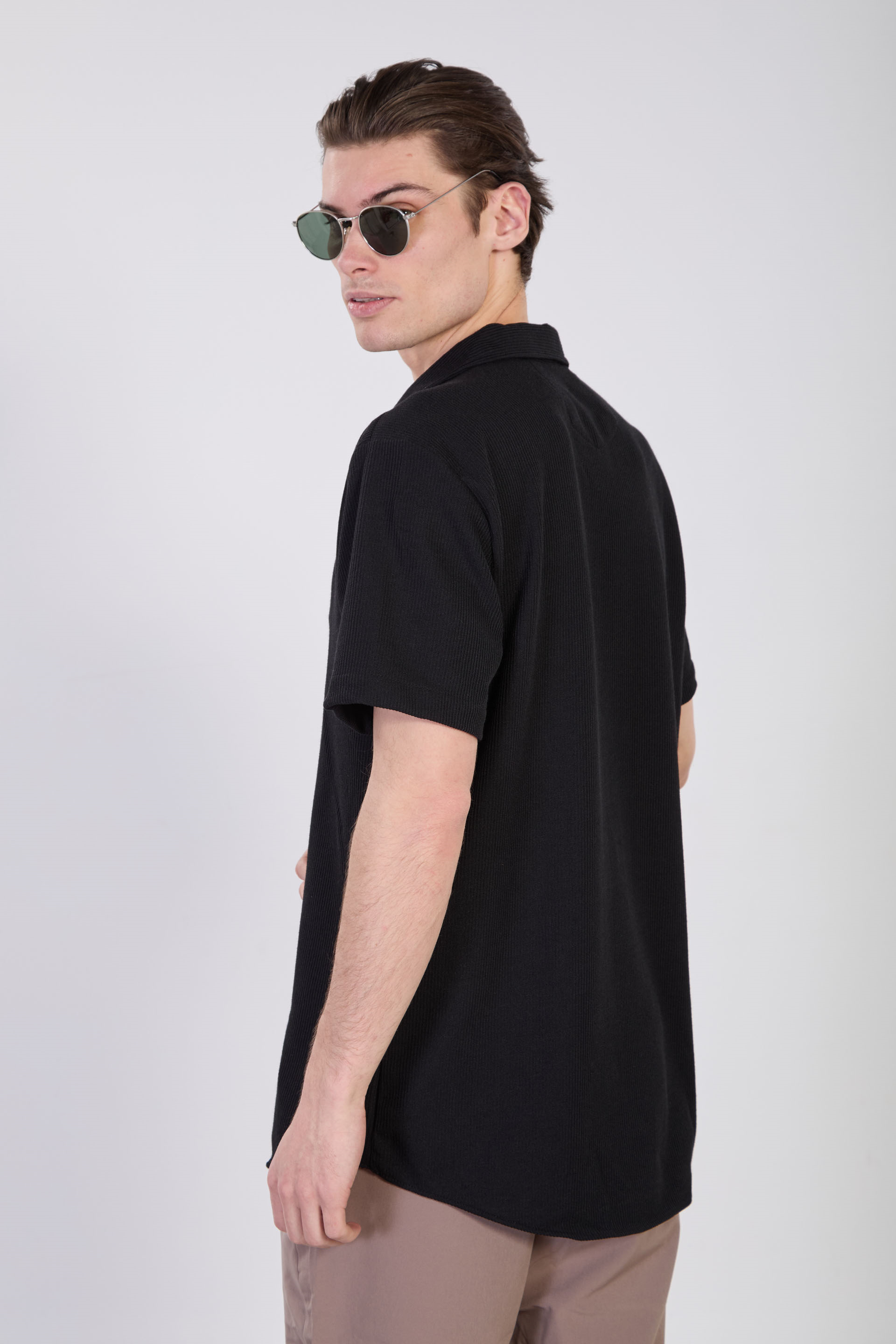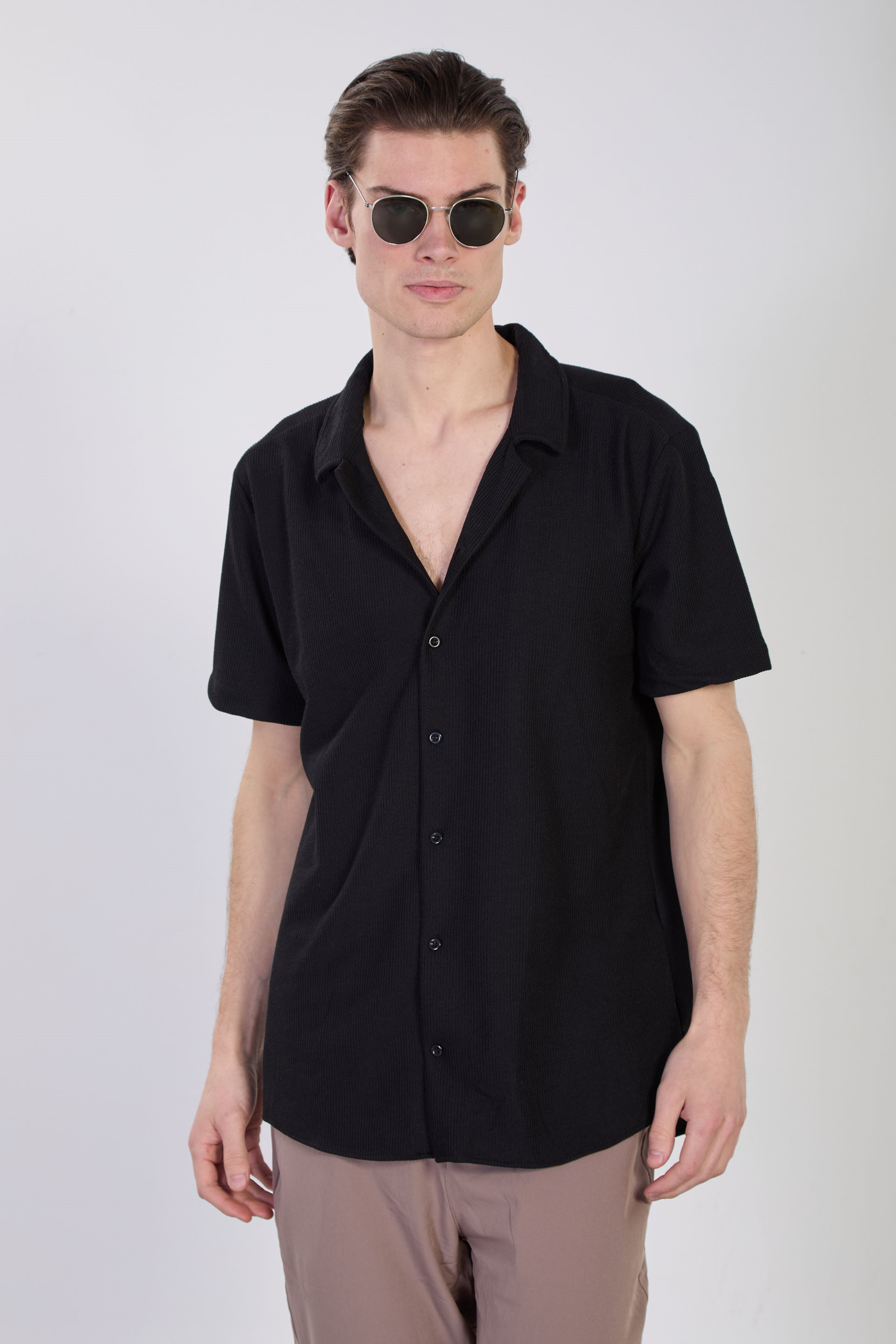 Erkek Kısa Kollu Regular Fit Gömlek - Siyah