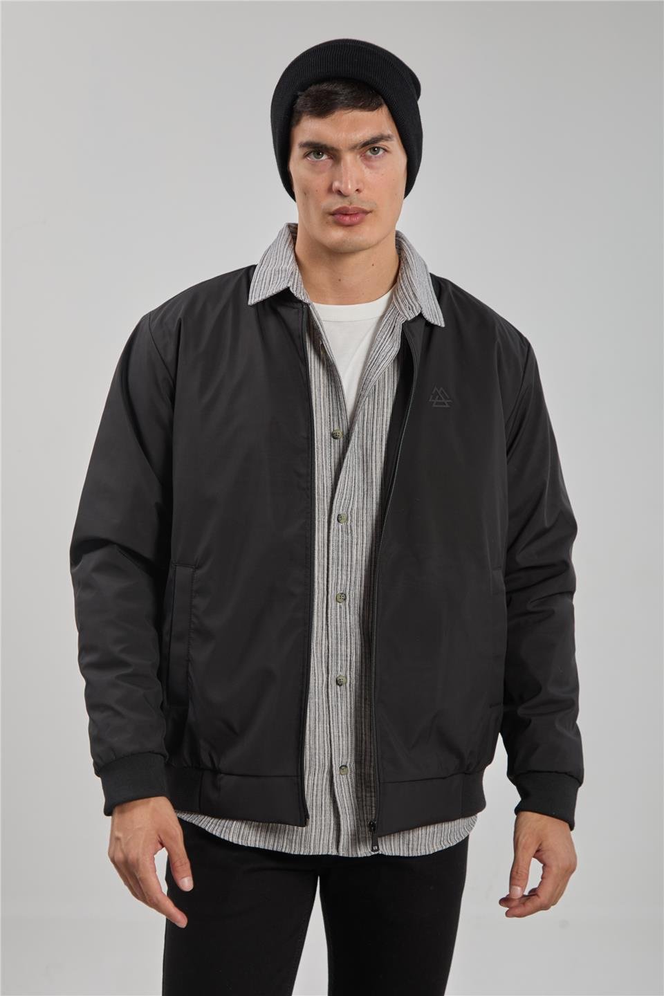 Erkek Kolej Yaka Yandan Cepli Ceket - Siyah