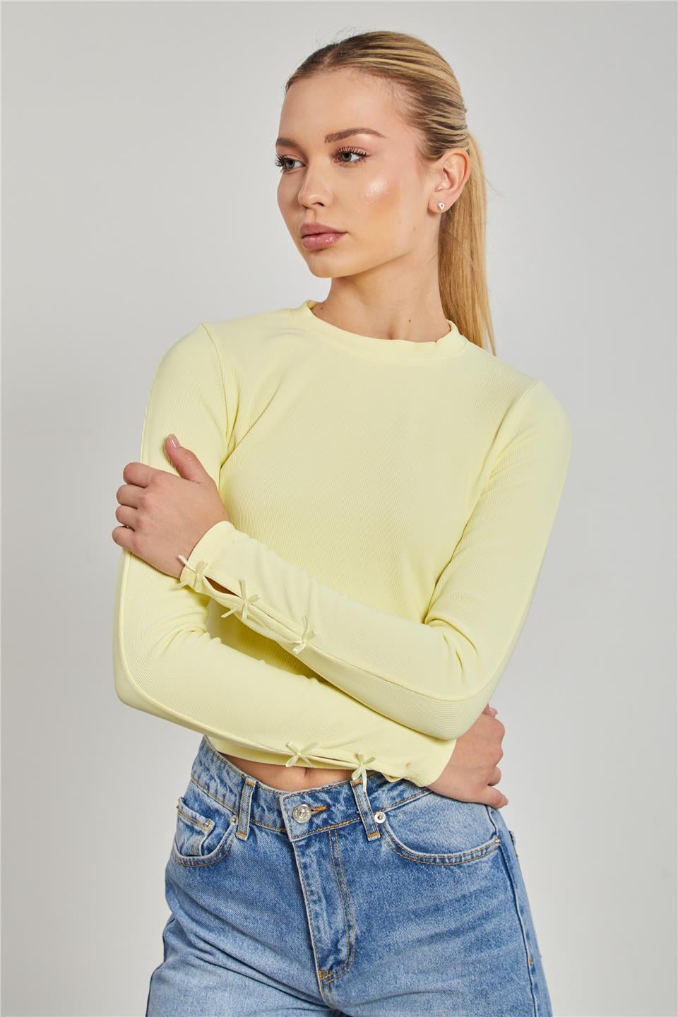 Kadın Kolları Kurdeleli Body - Sarı