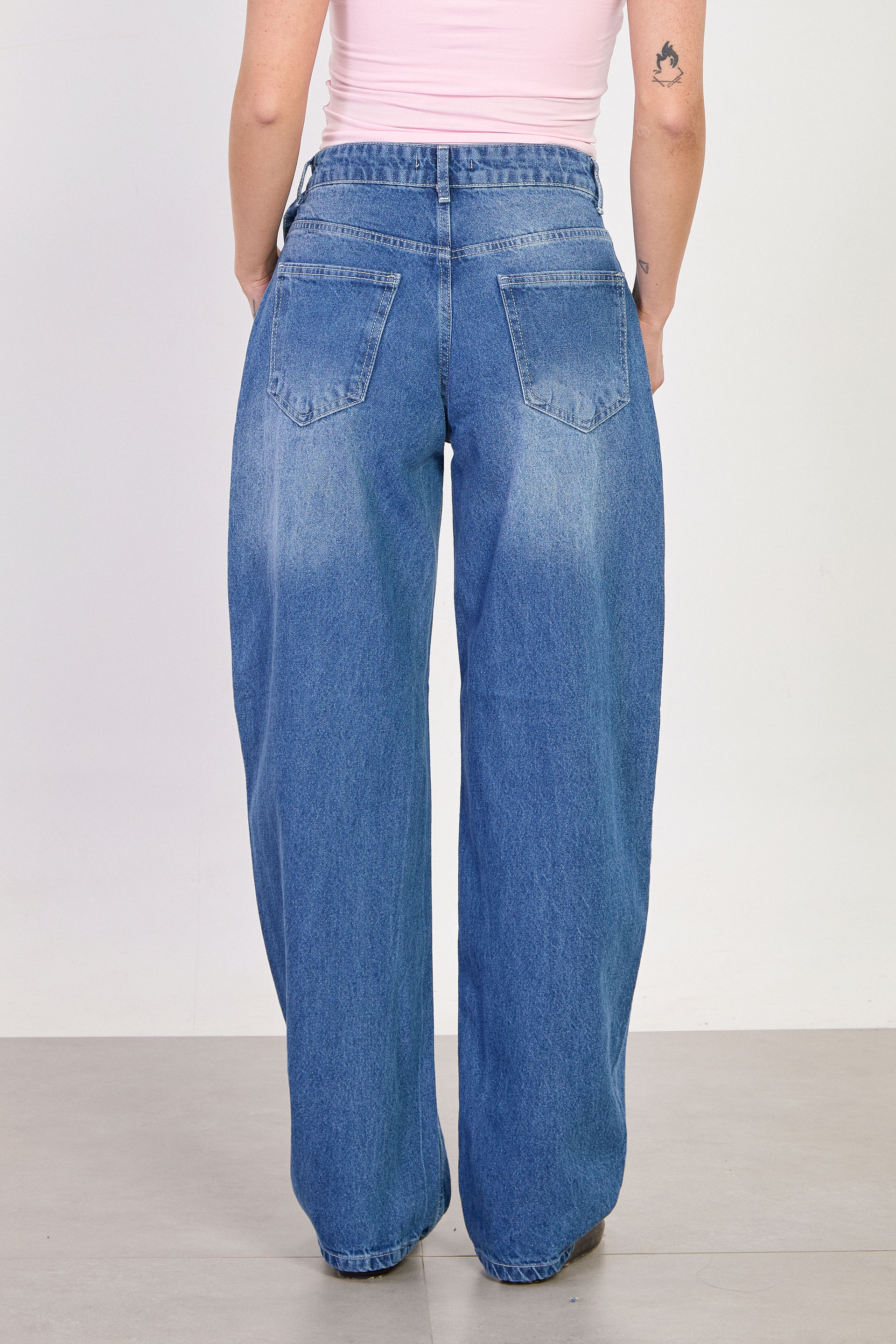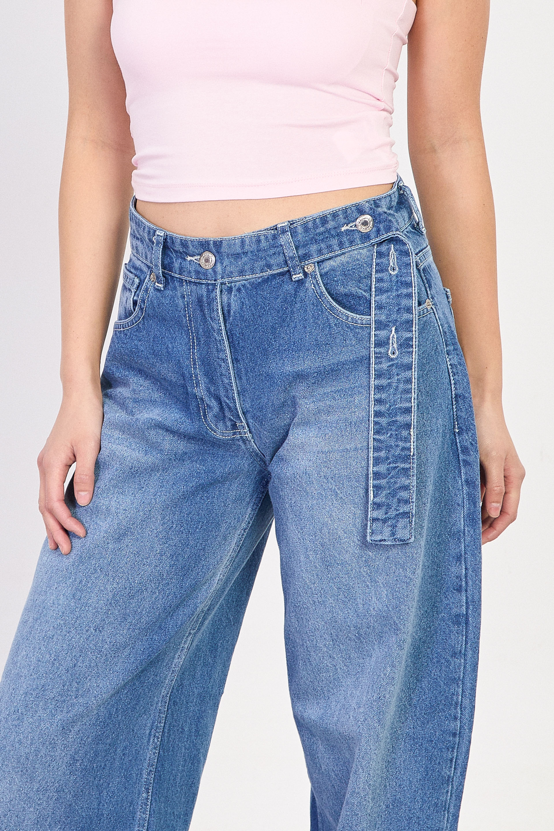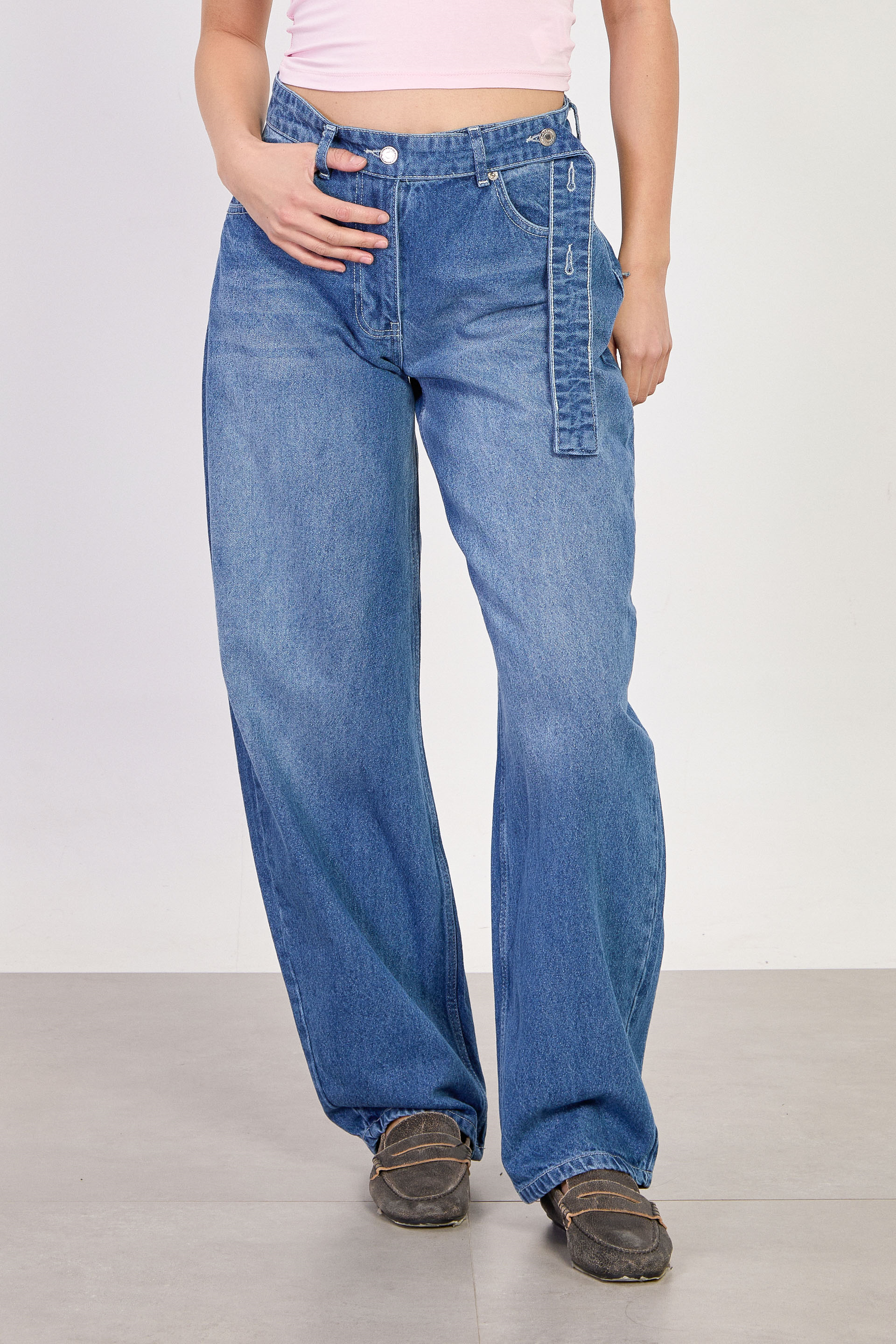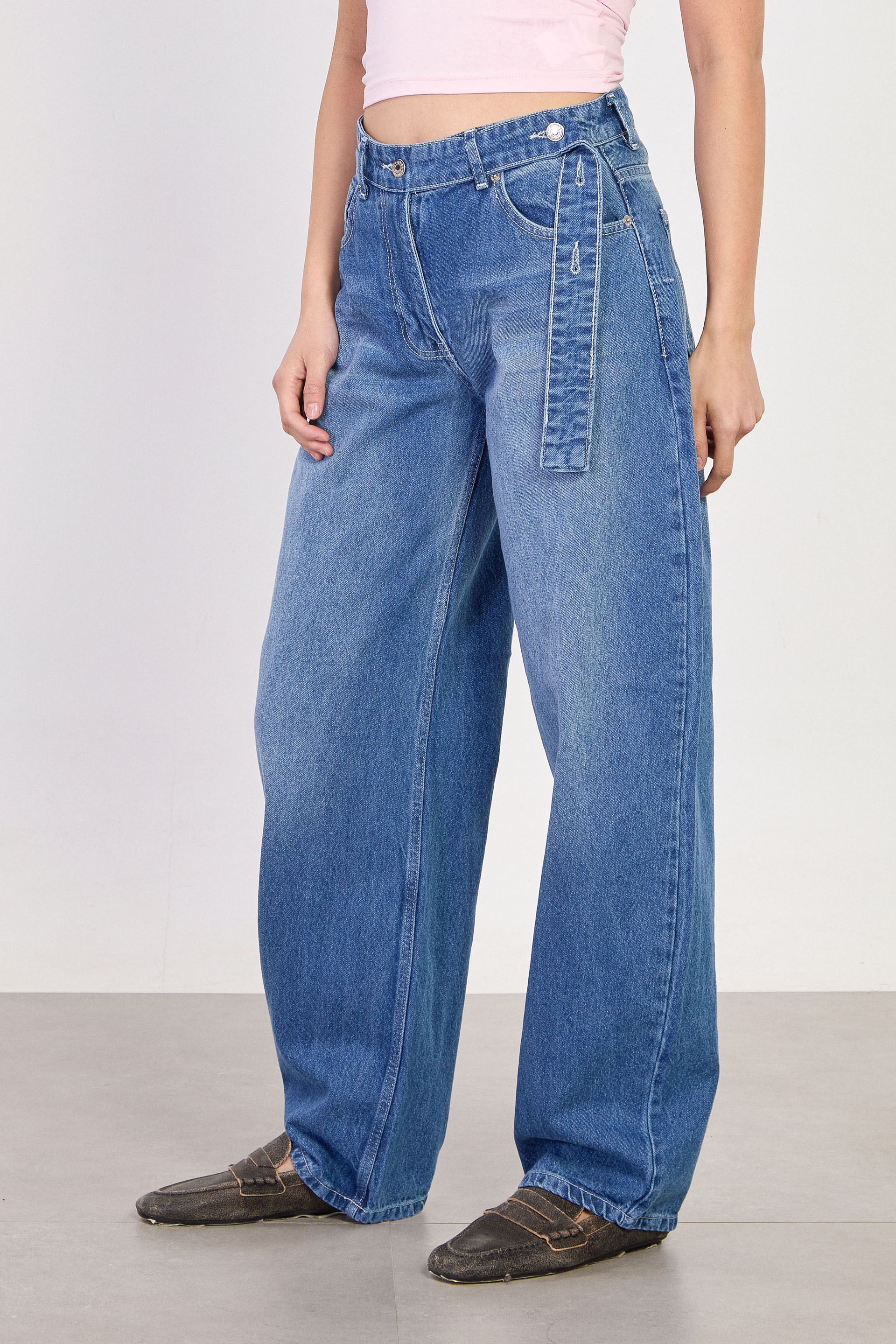 Kadın J91 Kuşaklı Baggy Jean Pantolon - Açık Mavi