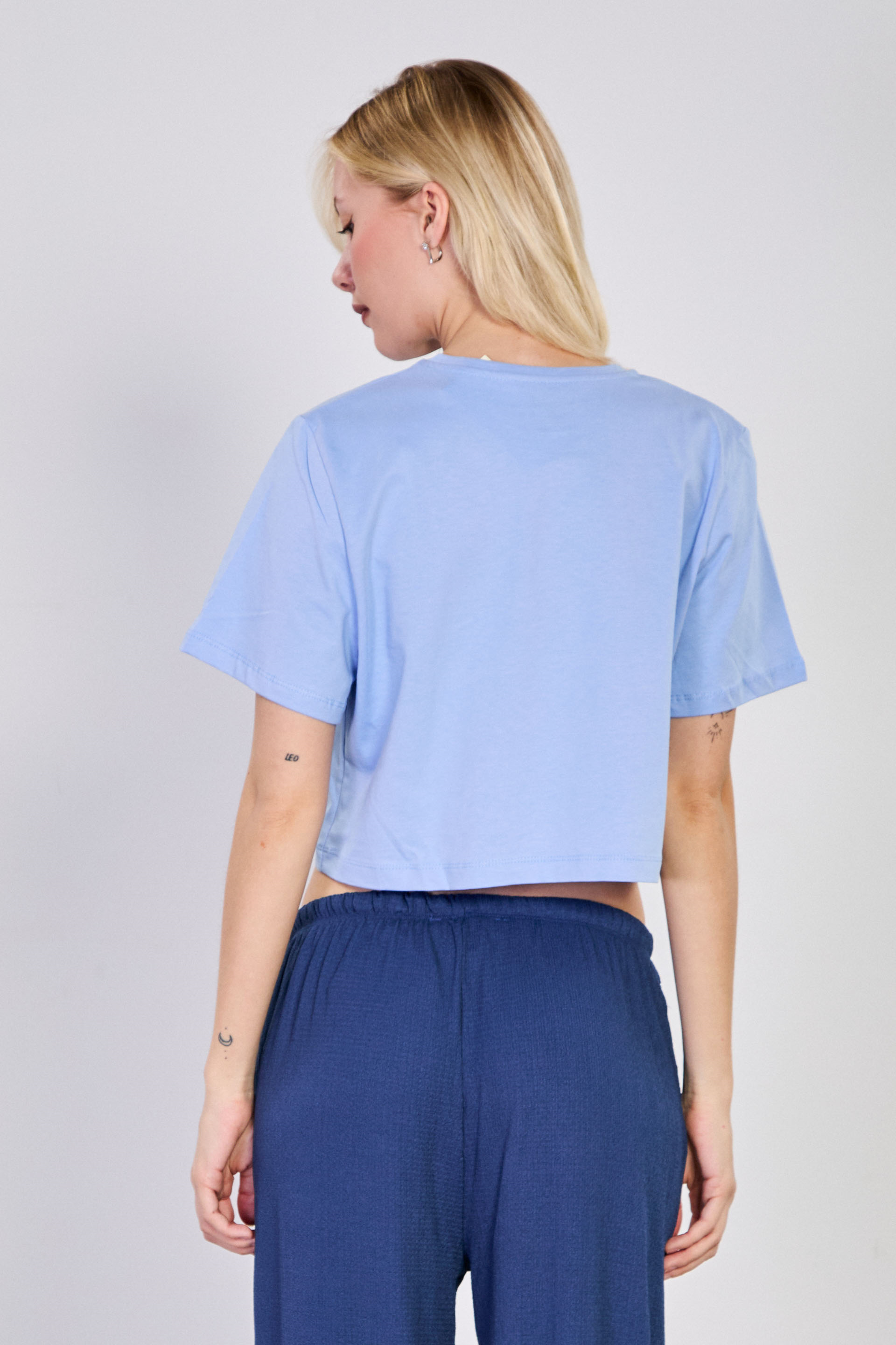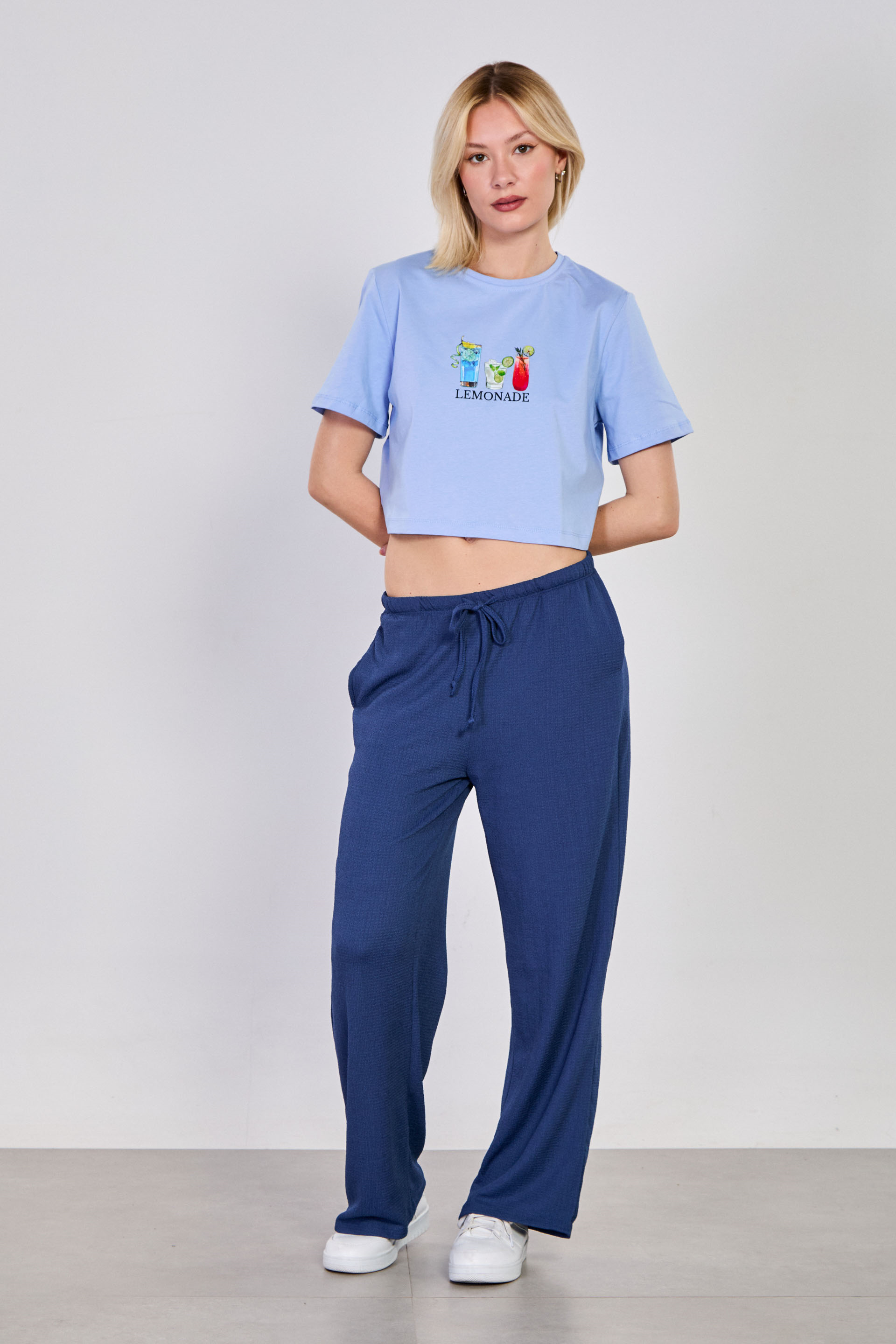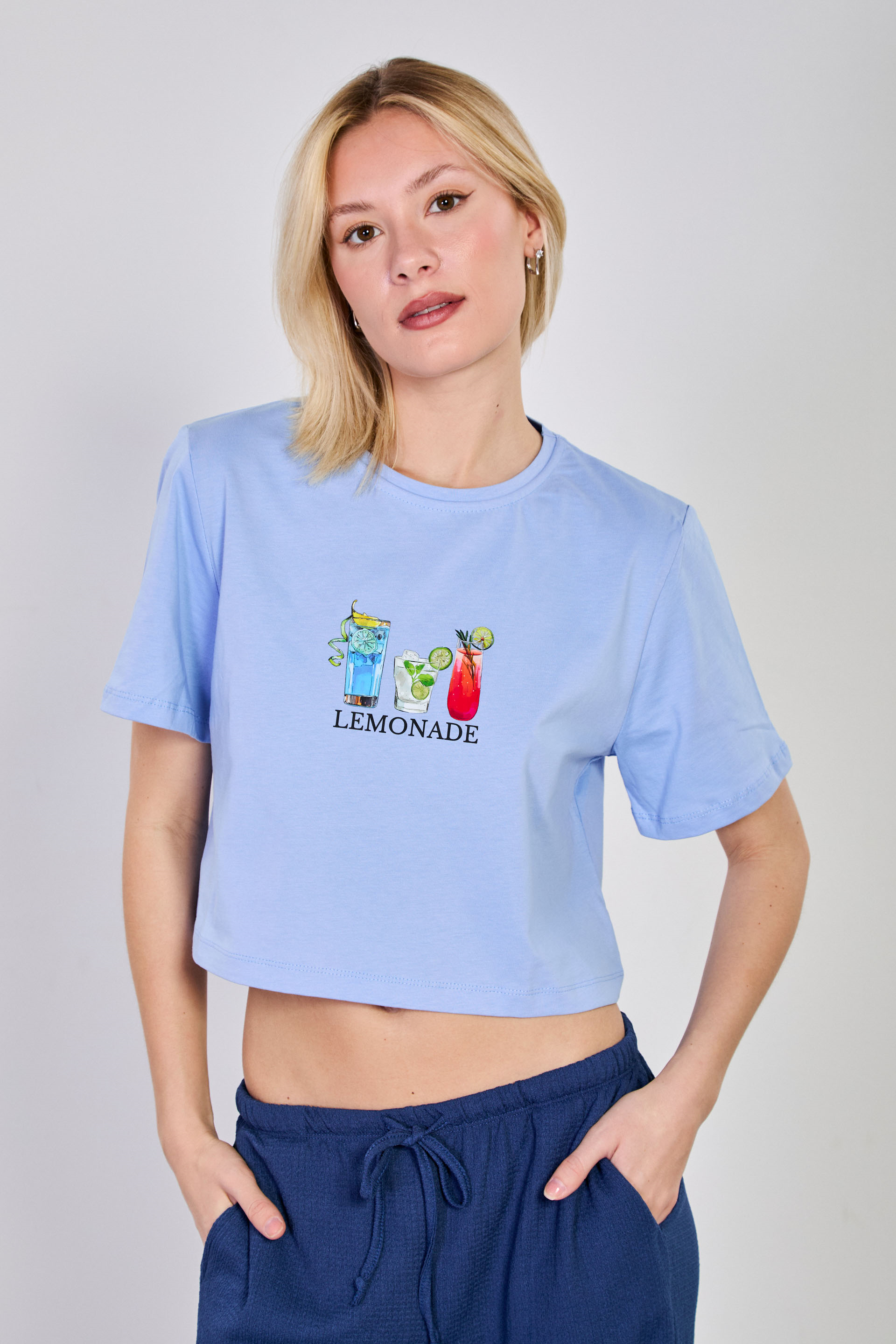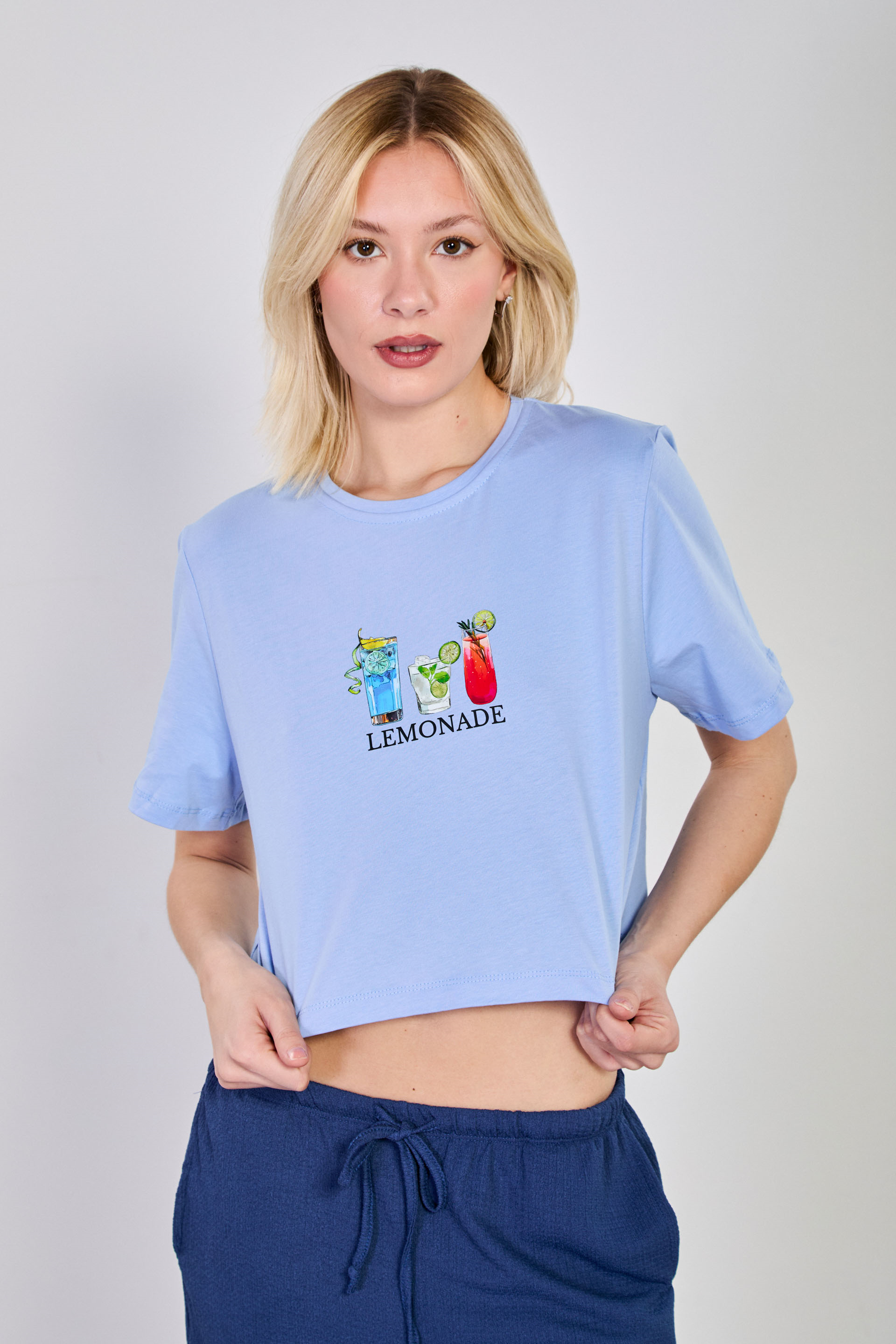 Kadın Lemonade Yazılı Crop T-Shirt - Mavi
