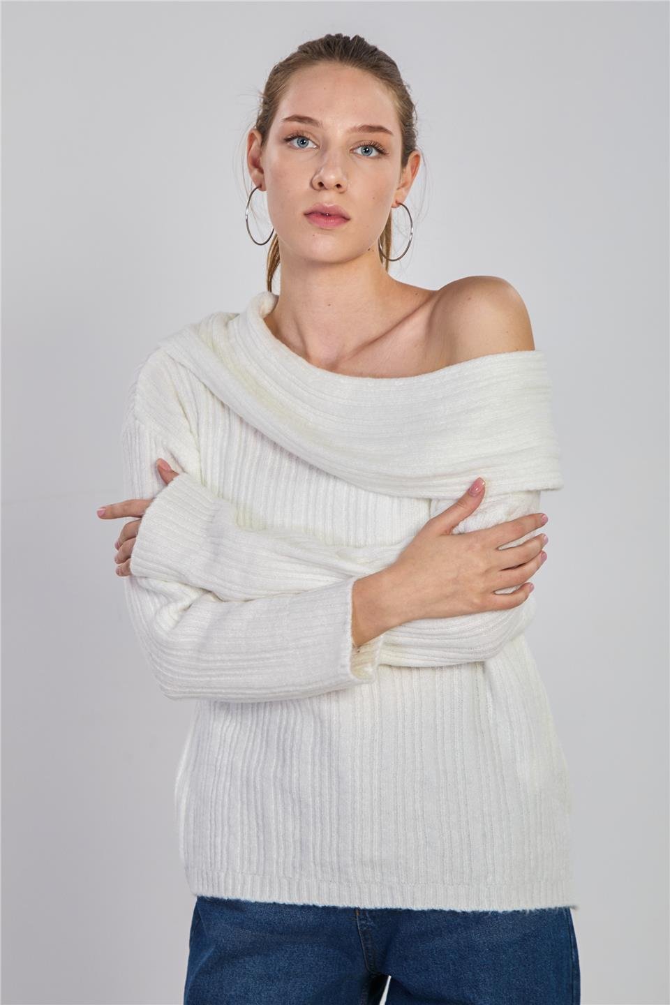 Kadın Madonna Yaka Triko Kazak - Ekru