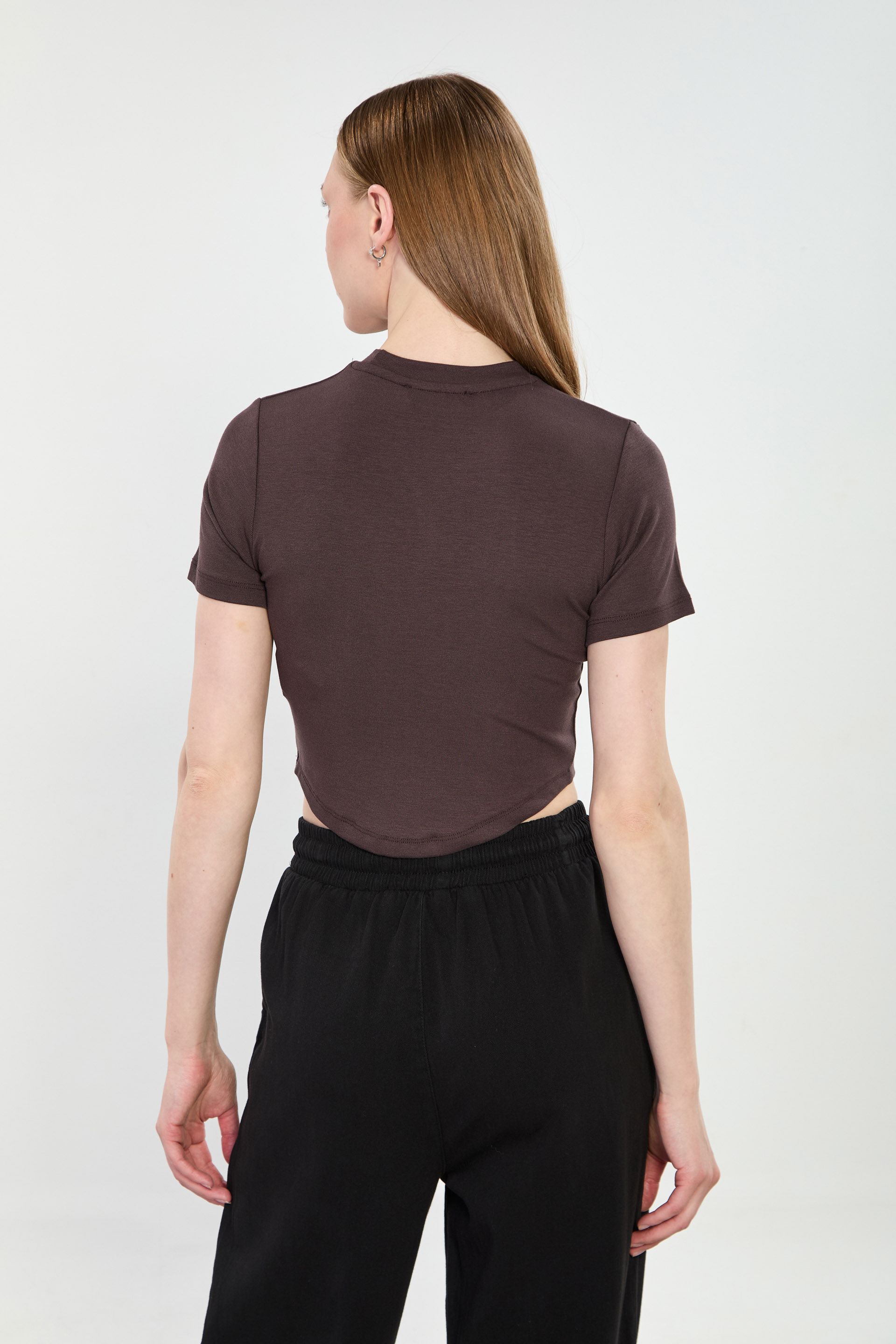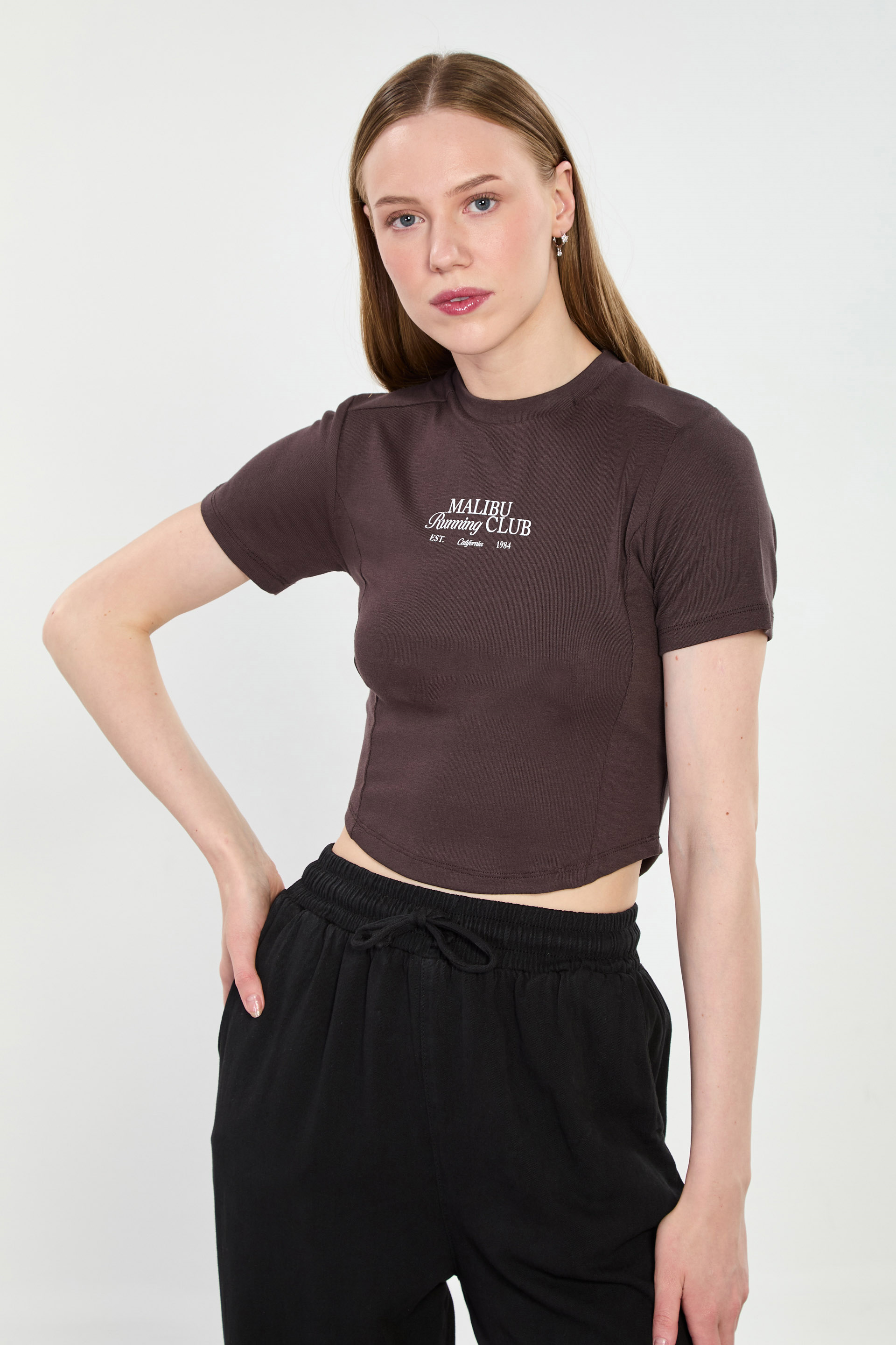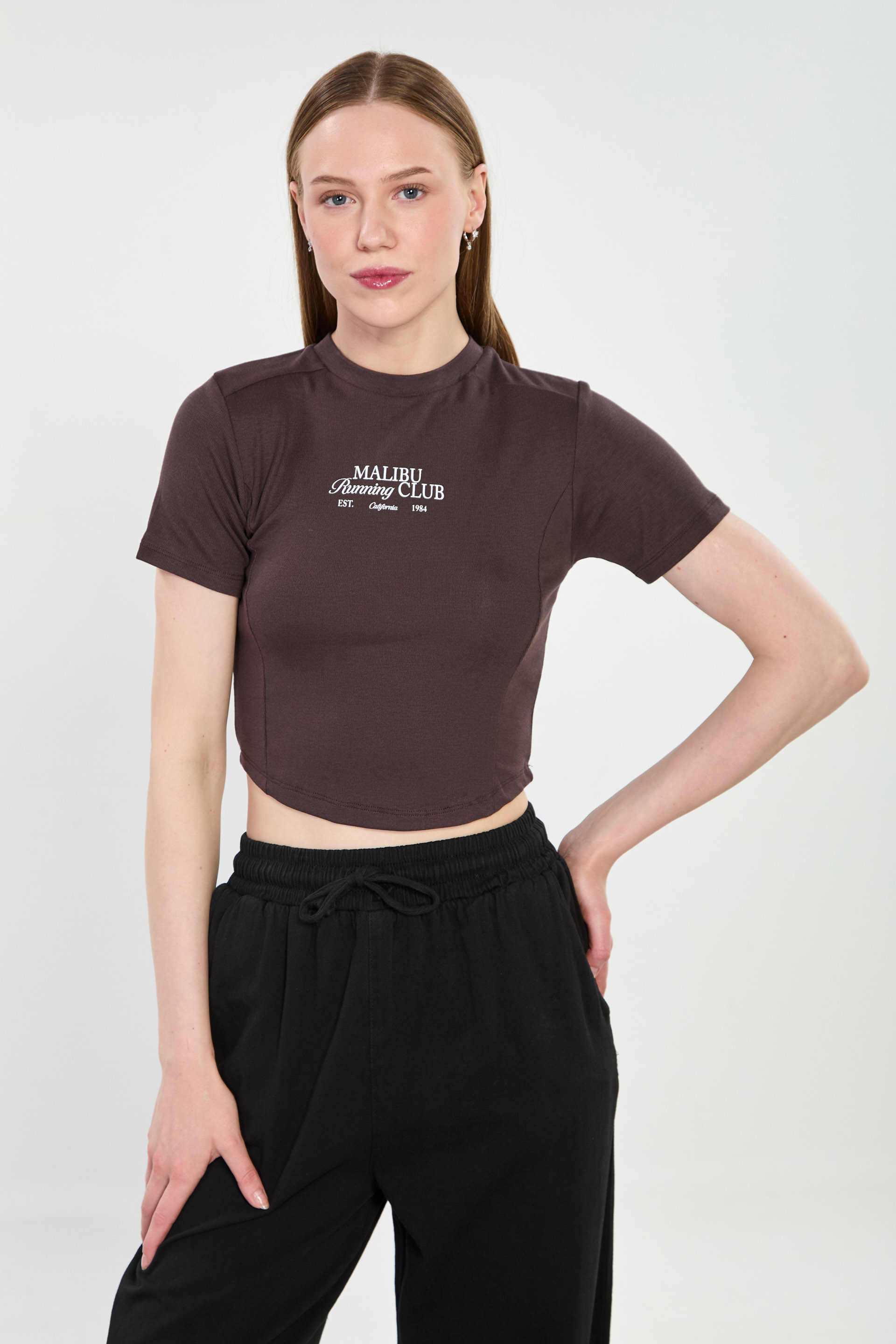 Kadın Malibu Baskılı Crop Body - Acı Kahve