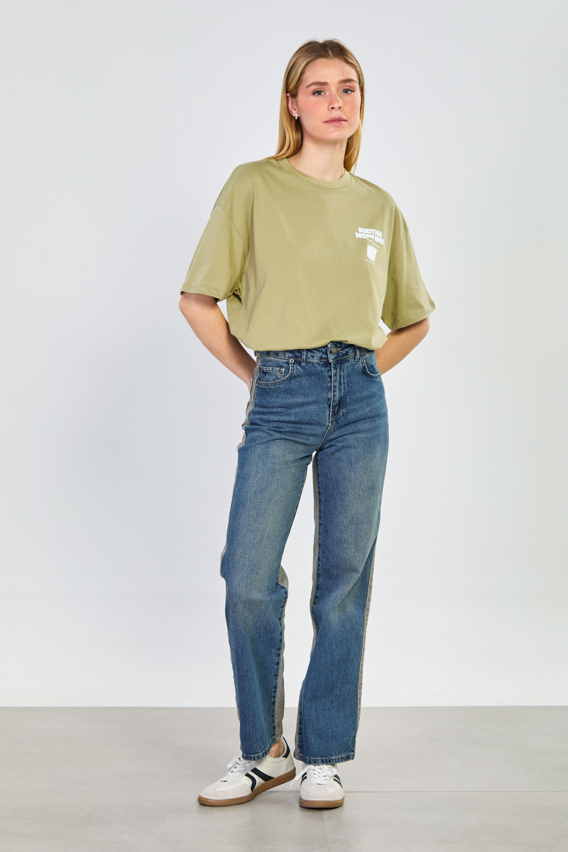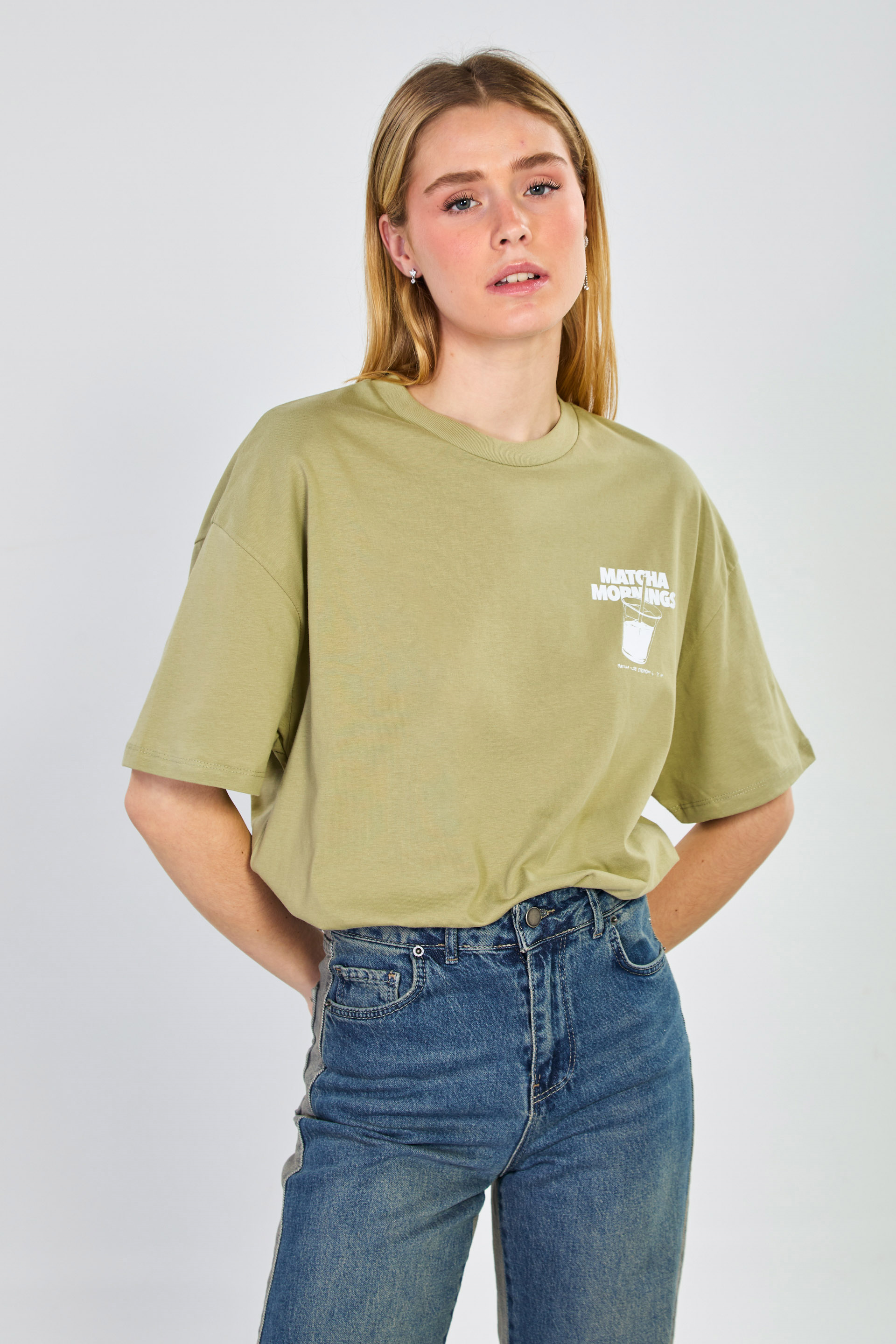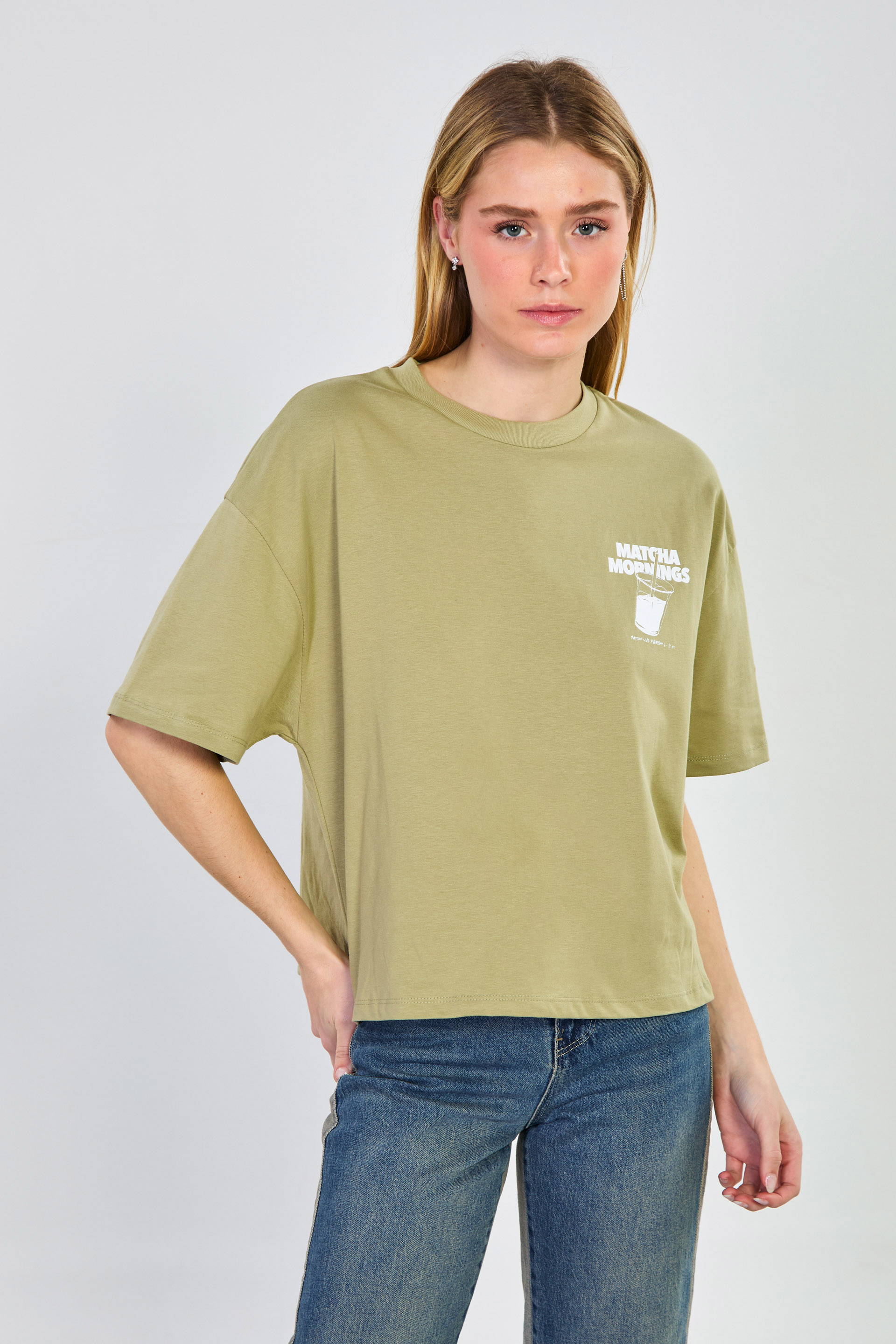 Kadın Matcha Baskılı Oversize T-Shirt - Olive