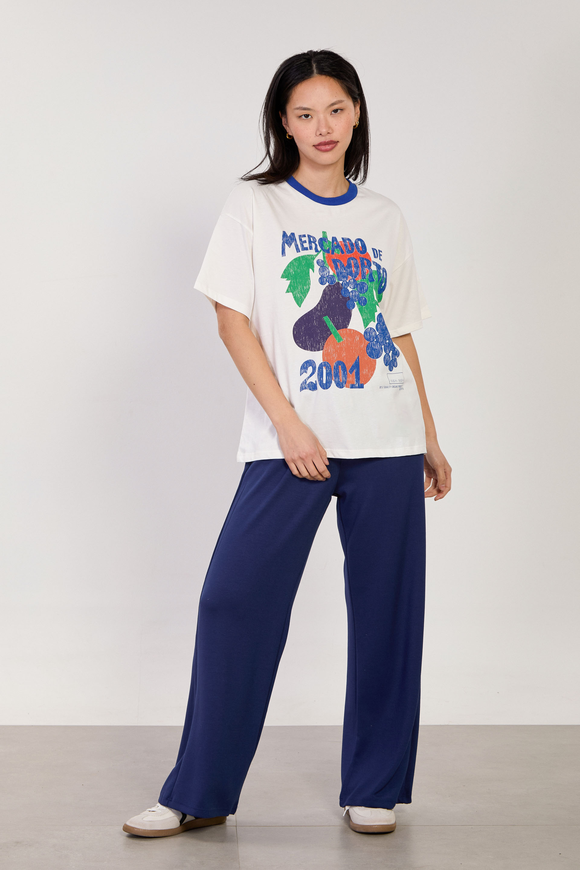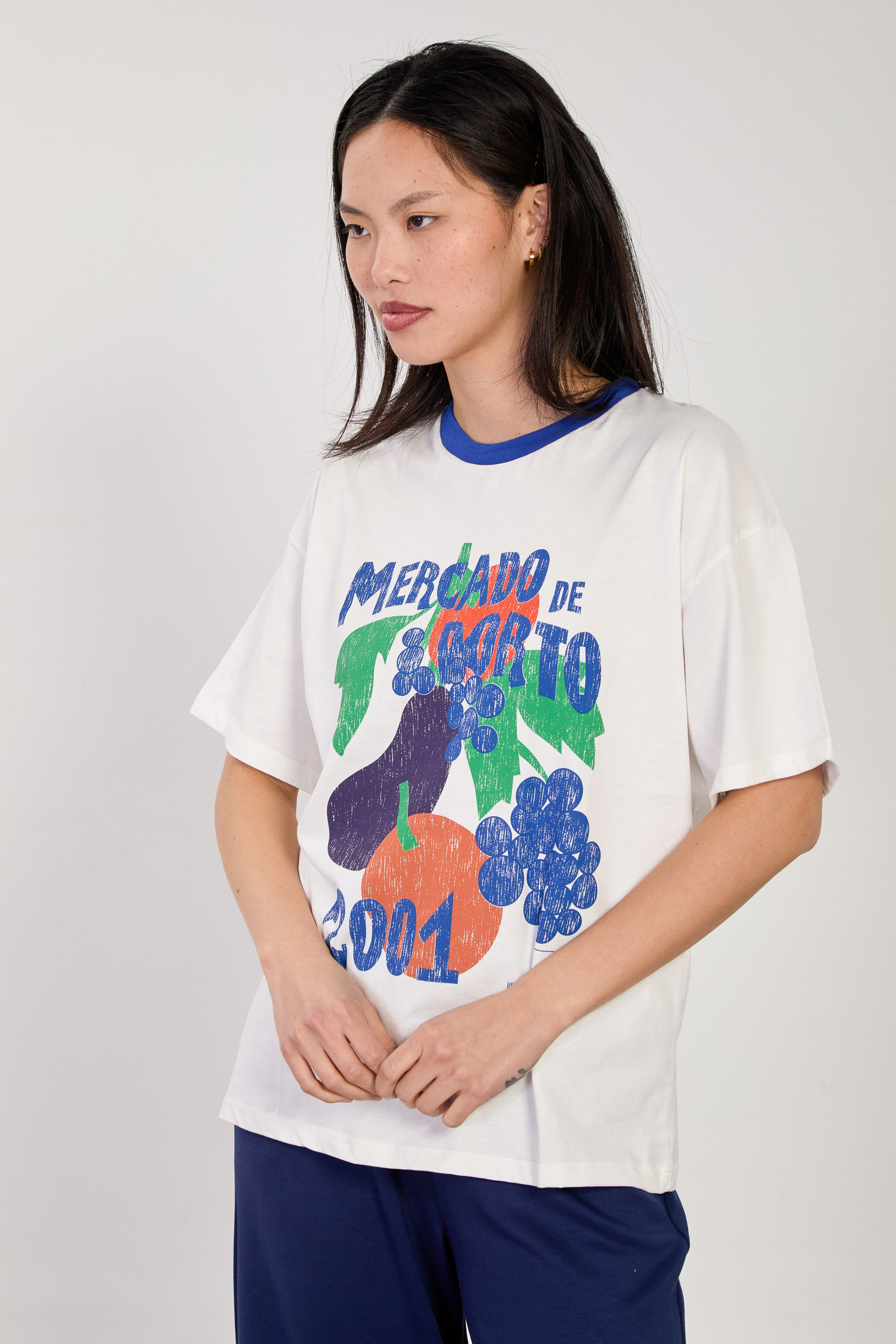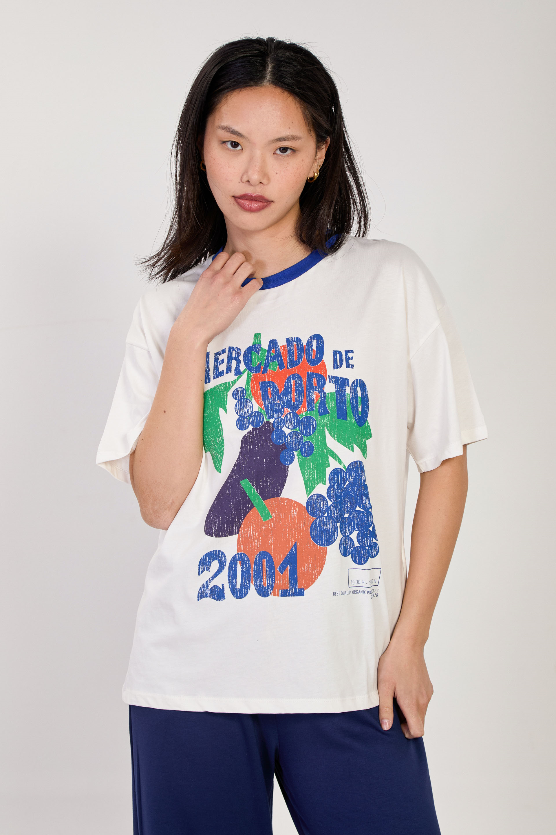 Kadın Mercado de Porta Baskılı T-Shirt - Ekru