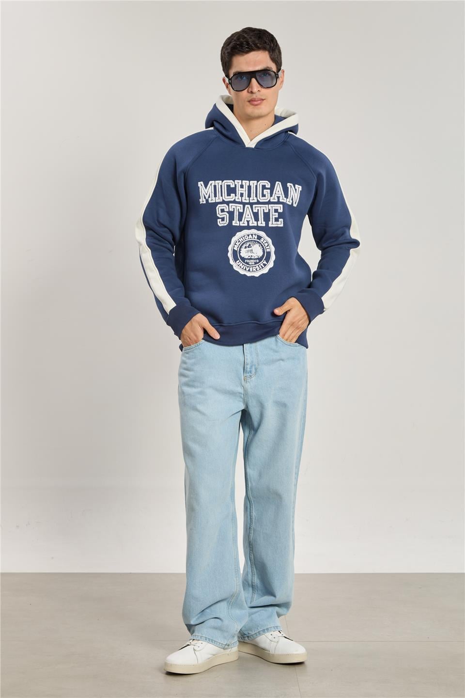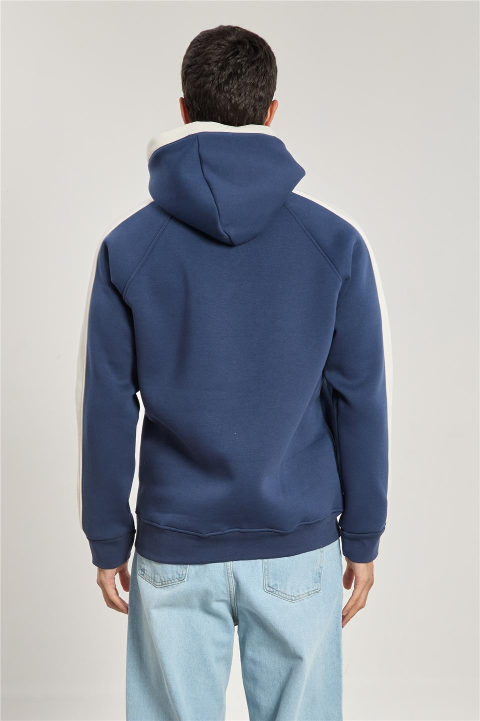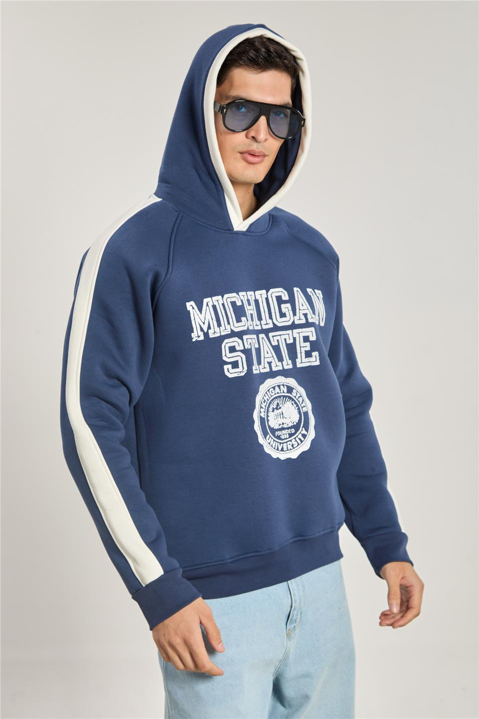 Erkek Michigan Baskılı Kapüşonlu Sweatshirt - Lacivert Ekru