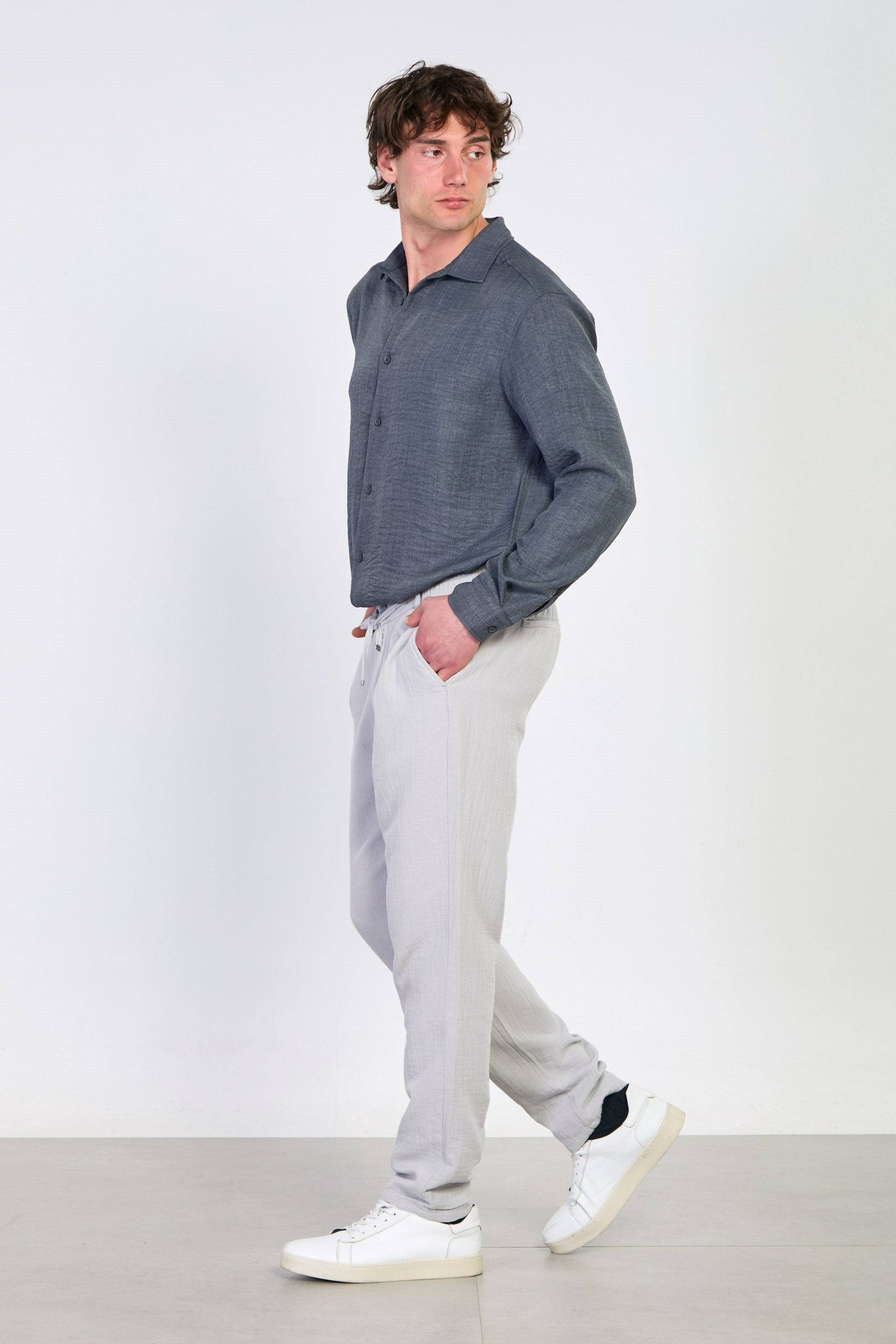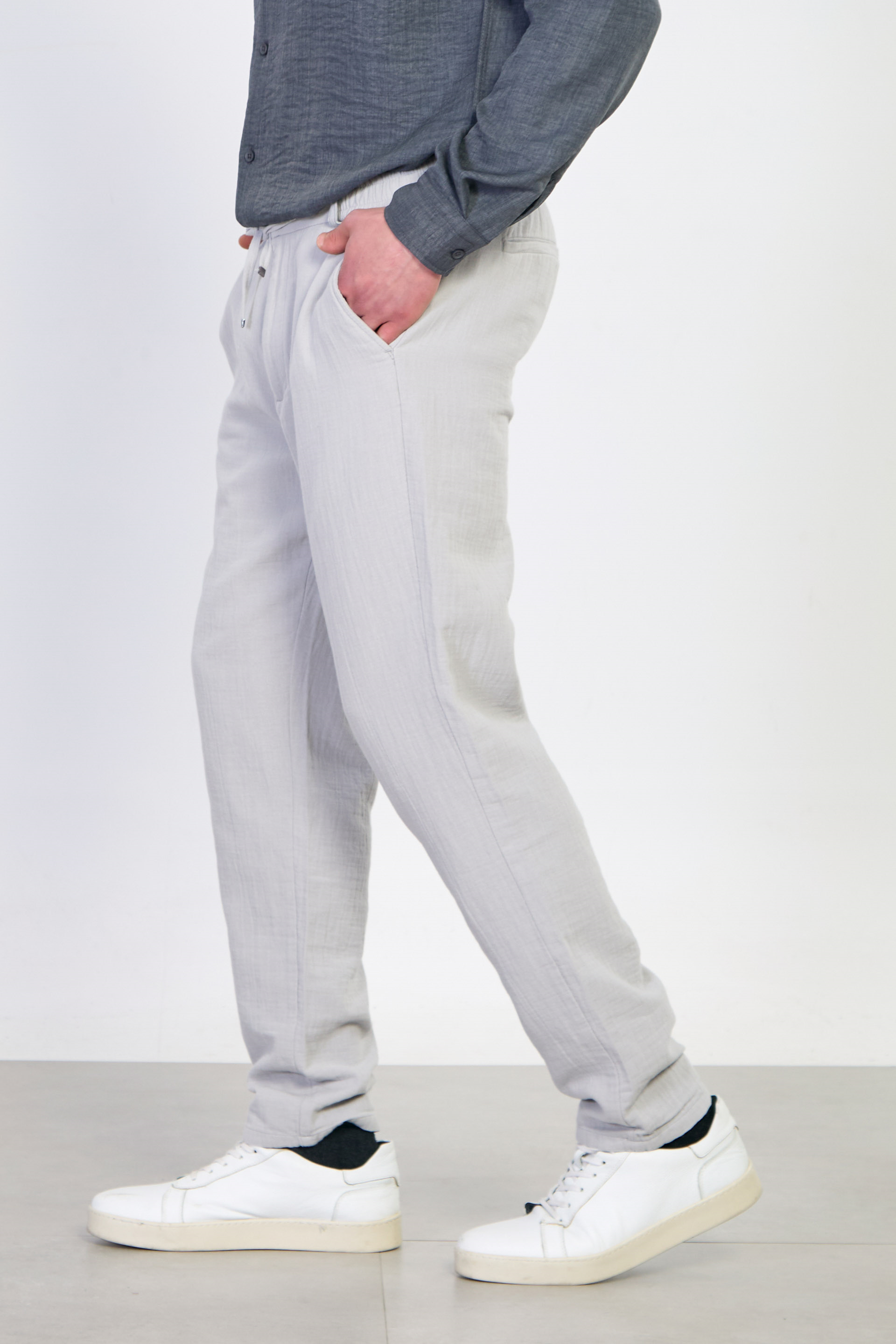 Erkek Müslin Jogger Pantolon - Gri